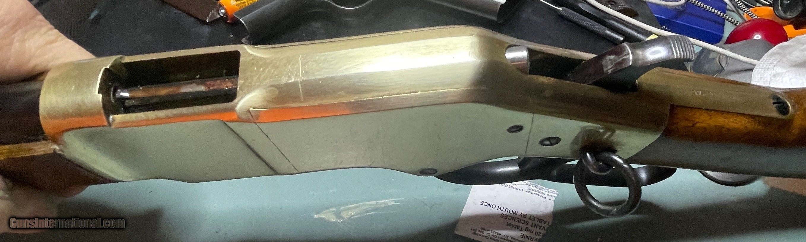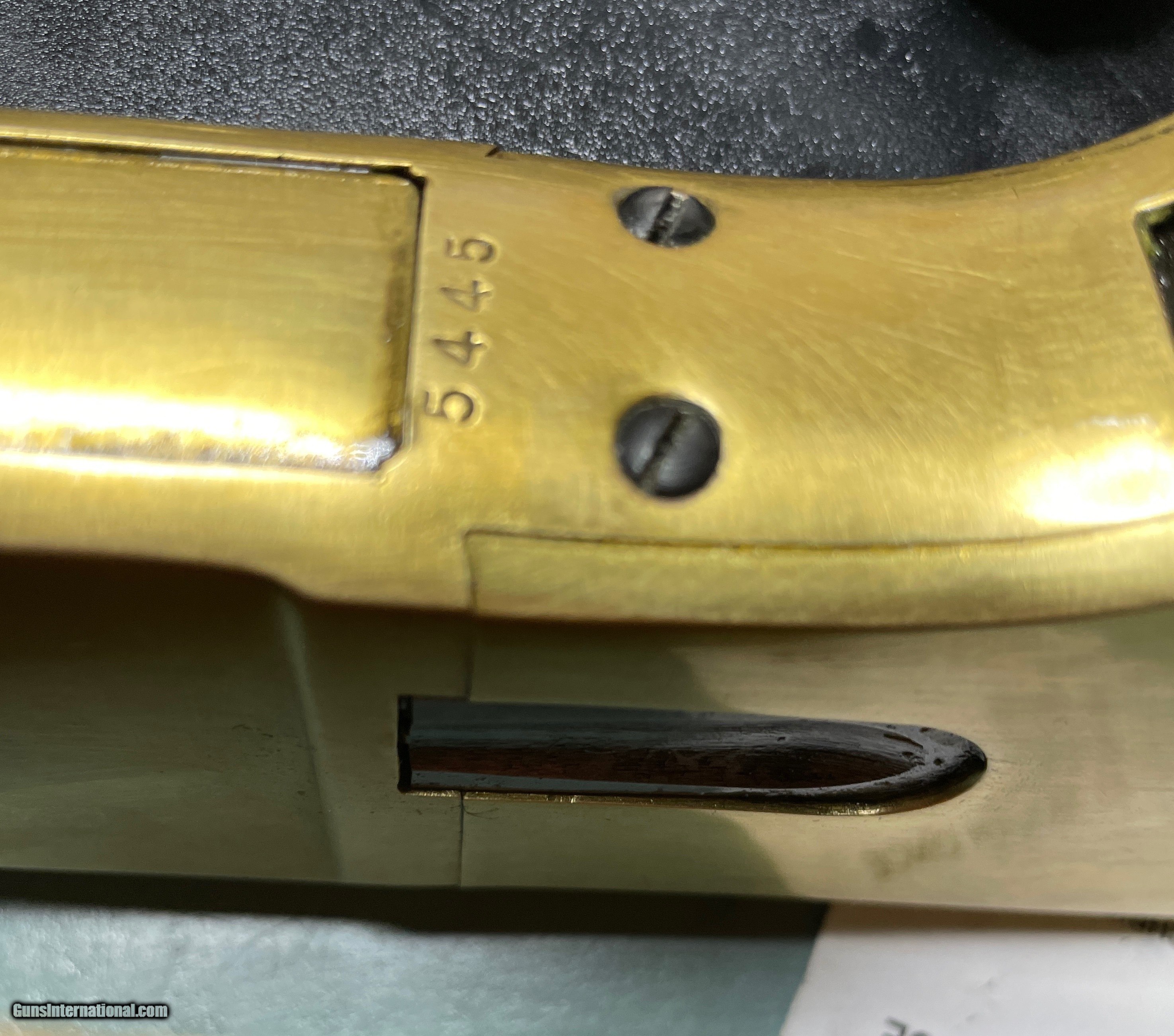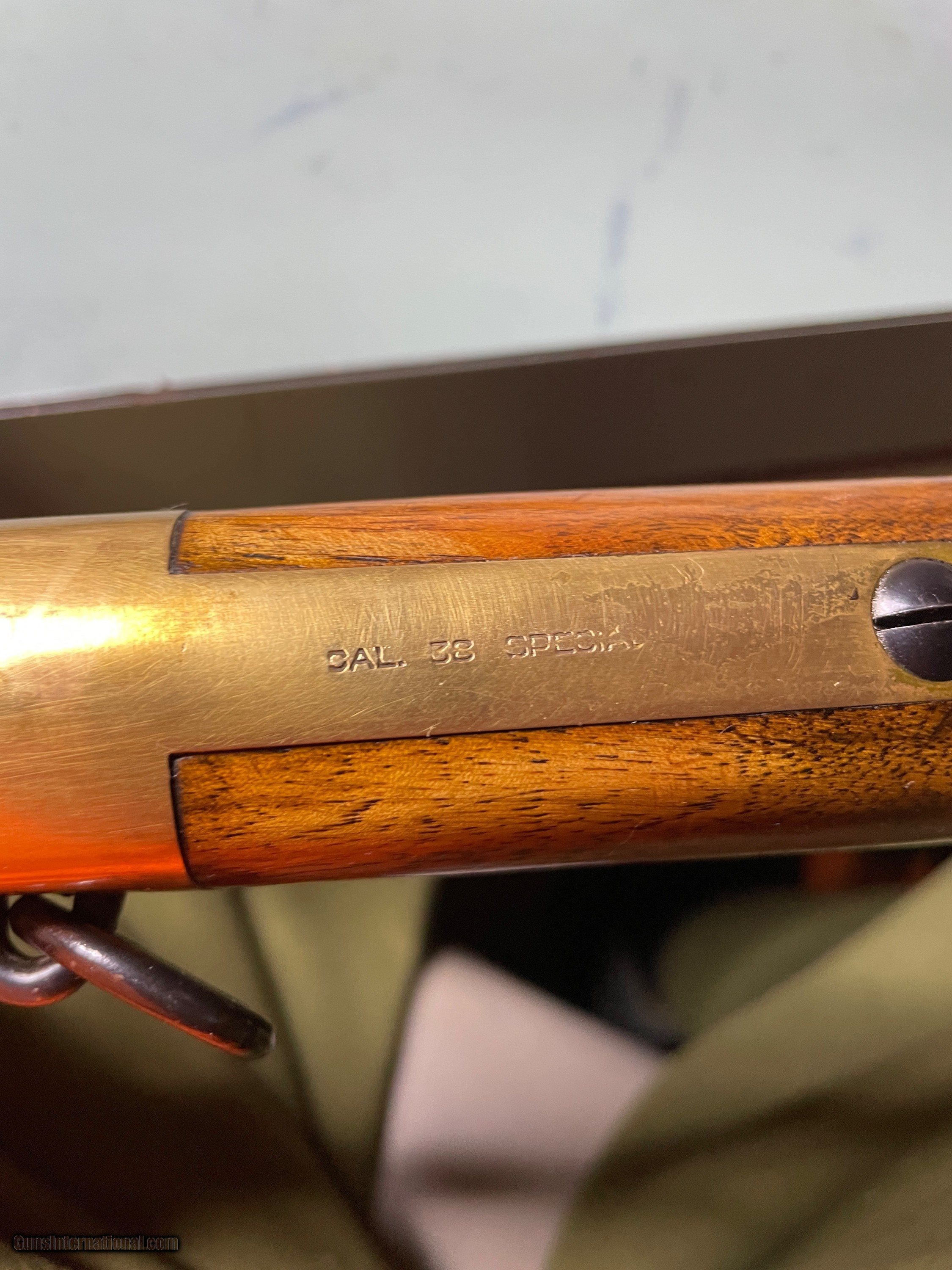 Description: Navy Arms Yellow Boy in 38 special. I bought this rifle when they first came out. Saddle ring carbine with an 18" barrel. Barrel is 18" with 100% blue finish. Brass has a few small nicks and tiny scratches which comes with a soft material like brass. Though I've had the gun over 40 years it's been shot very little. price is $1050 and shipping is &40. I'll need a copy of the dealer's FFL you want it shipped to. There a 3 day inspection period and payment is through GunTag or money order. I will ship after mo clears. Rifle Caliber: .38 Special, .38 Manufacturer: Uberti Model: 1866 yellowbou Serial Number: 5445 Barrel Length: 18” Condition: Very good Metal Condition: Very good Wood Condition: Very good Bore Condition: Very good Barrels: 1 Action: Lever Triggers: 1 Stock: Wood Fore End: Wood Butt Pad: Brass Weight: 7.2 lbs Sights: Open Price: $1,050.00 Shipping: $40.00 Buy Now Pay with