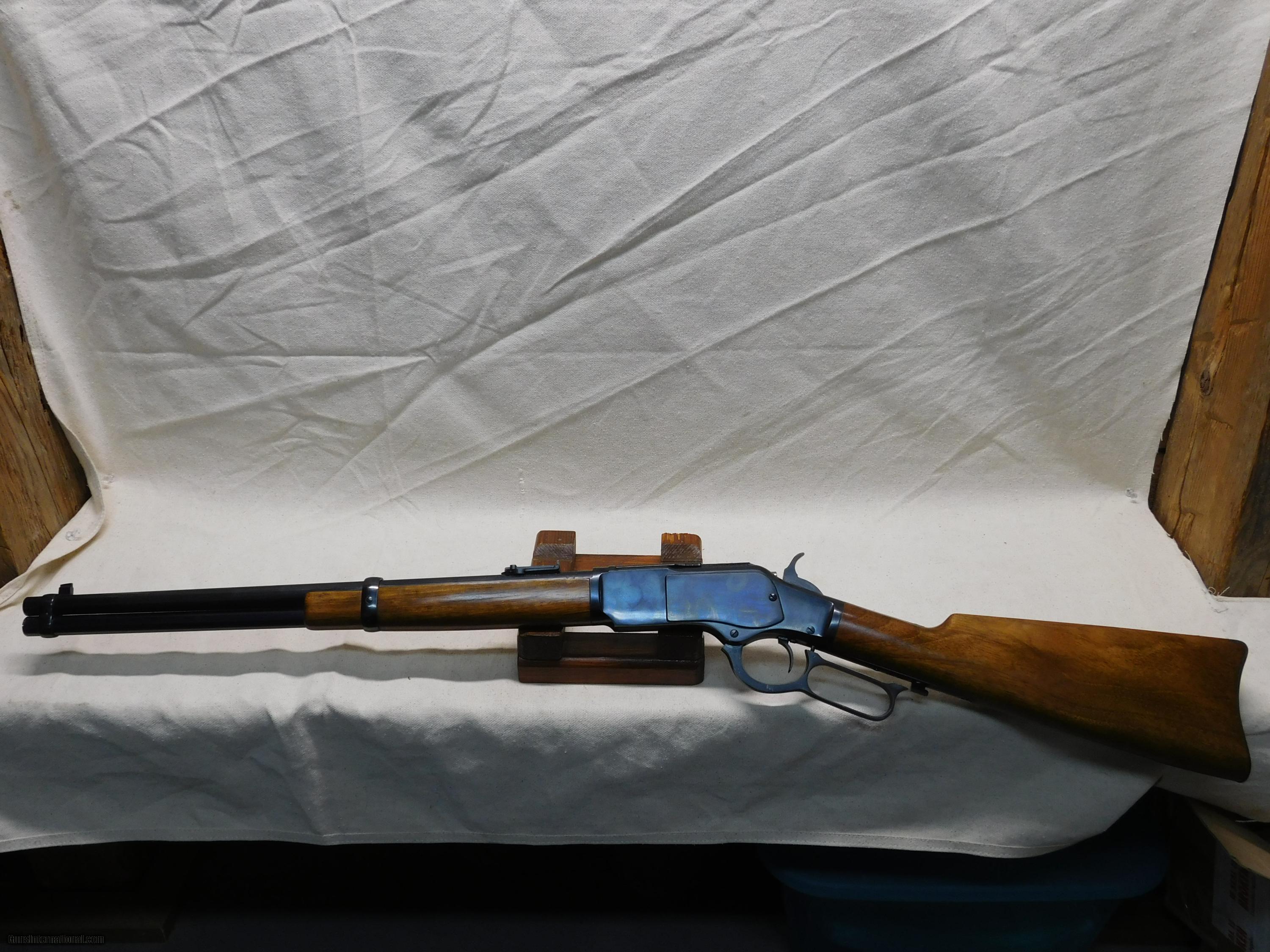 Description: Navy Arms\Uberti,Model 73 Carbine,357 Mag,19"Barrel,Ladder Rear Sight,Full Magazine Tube,Excellent Condition With only a Few minor Handling Marks on Stock, and Minor Scratch on Magazine Tube. Store Hours Thur-Fri-10AM-8PM Sat 9AM-12PM All other times please leave a Message,Thank You!! No California sales Lower 48 State Sales Only Shipping $ 35.00 SOLD Manufacturer: Navy Arms Model: 73 Serial Number: 23226 Caliber Info: 357 Mag |