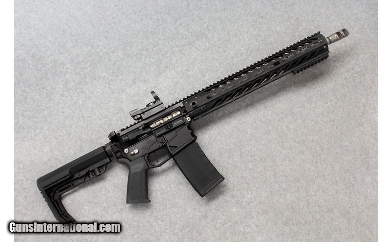 Description: "The Modern Sporting Rifle has come a long way but none as far as the Battle-Light Rifle. The Battle-Light Rifle features ambidextrous controls and Nickel Boron coated bolt carrier group for long term performance. A 1:8 twist barrel means that you can shoot a broader range of projectile weights with confidence. The Battle-Light Rifle has a tuned mid length gas system for a smooth shooting experience no matter what ammo you choose." -NemoArms ...........This rifle's stock has been changed out, and a green laser and reflex sight added on the pic rails. .223 Wylde SOLD Barrels: 16" barrel Triggers: CMC flat bow 3.5 pound pull trigger Stock Dimensions: Mission First Tactical BMSMIL Battlelink AR-15 Polymide Black Fore End: 15" 6061 M-LOK modular rail plus Ozark Armament Green Laser Light System Weight: 8 LBS Sights: OTW Field Sport Red and Green Reflex sight with 4 reticles Item Location: Farmington, UT |