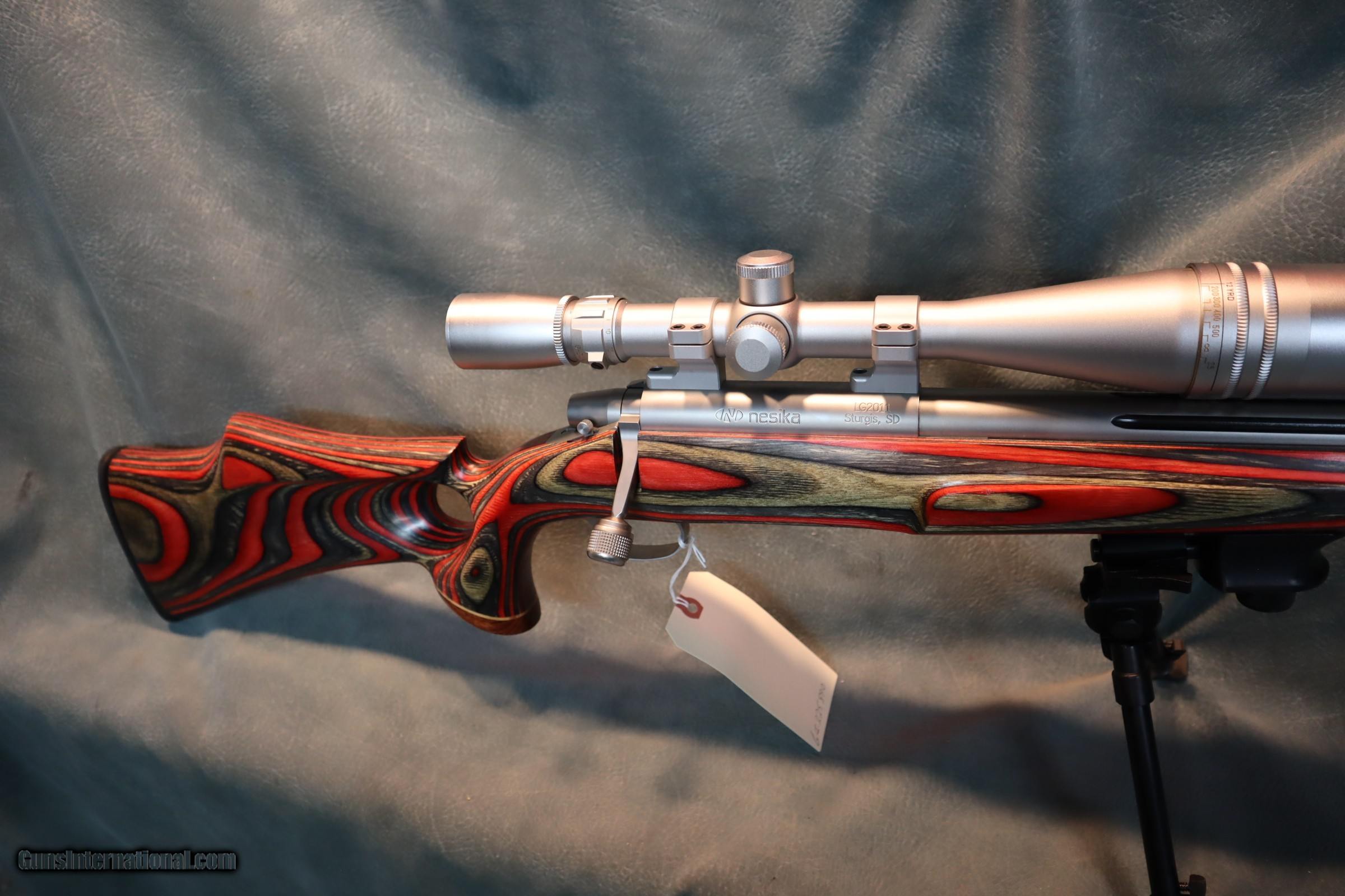 Description: Nesika Model J 6mmBR right bolt,left port,22" Lilja stainless fluted barrel,laminated thumbhole stock,Jewell trigger,excellent condition with Talley 1" lightweight scope mounts $1895,with Sightron 6-24X silver scope with crosshair and dot,A.O.,sunshade,scope box,Versapod bipod,RCBS Gold Medal dies,3 full boxes of bullets,2 partial boxes,Lapua brass,loaded rounds to be used as components $2295. GUN COLLECTIONS WANTED FOR CASH! We buy, sell, consign and trade new and used firearms. This is our 48th year in business. We offer 90 day layaways with 20% down. No return on layaways. Firearms will need to be transferred through a FFL dealer. Prices reflect a cash discount. There will be 3% added to credit card sales. We trade for gold and silver. THANK YOU! SOLD |