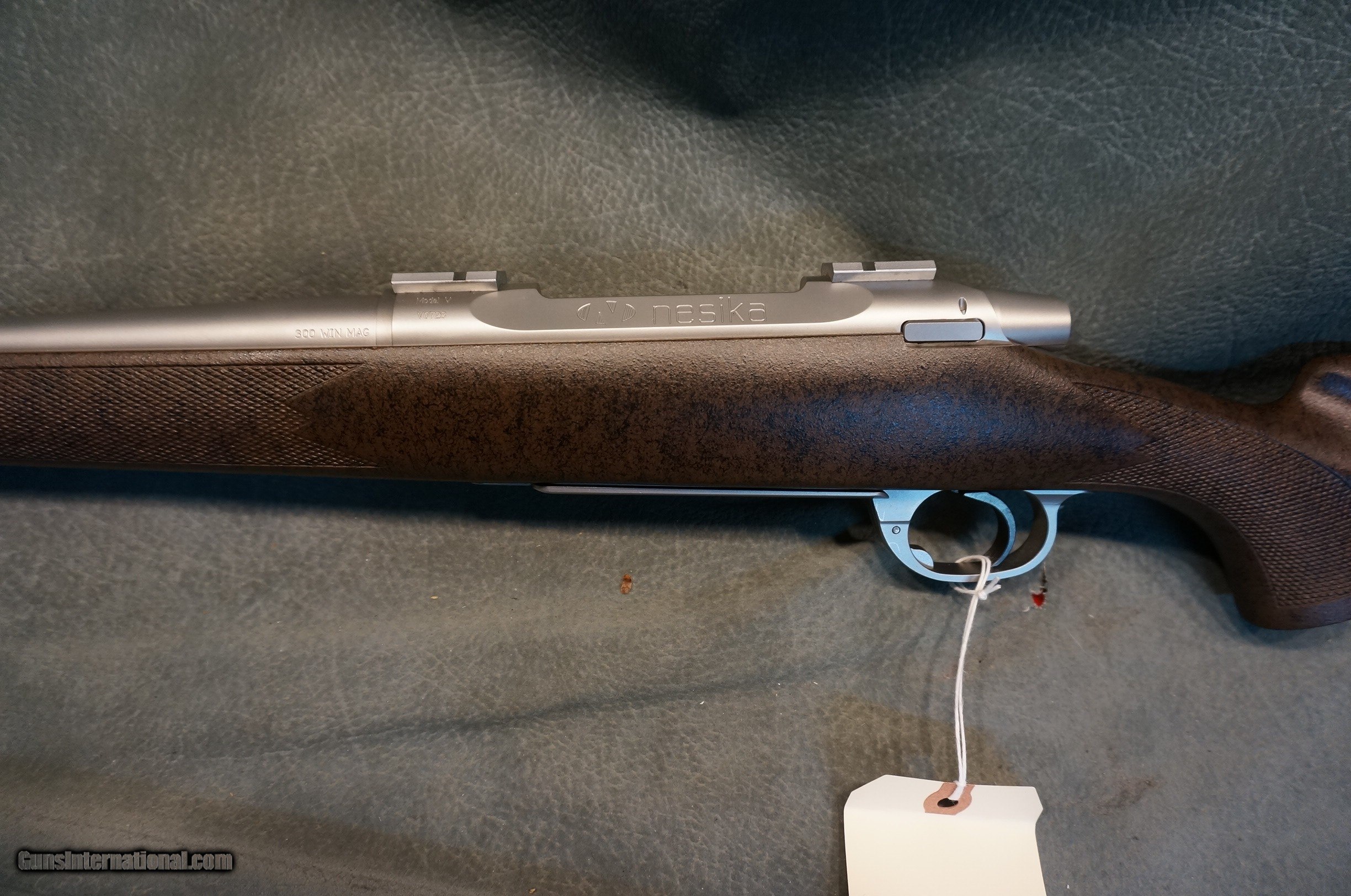 Description: Nesika Hunter Model V,300WinMag,26" Broughton stainless #3 10T sporter contour barrel,with 11 degree recessed crown,Vias slimline stainless muzzlebreak,spiral fluted bolt,black Falcon Coat metal finish,Jewell HVRTS 2 1/2 lb trigger,McMillan Sporter stock gray with black webbing,13 5/8 LOP,new unfired.ON SALE! GUN COLLECTIONS WANTED FOR CASH! We buy, sell, consign and trade new and used firearms. This is our 44th year in business. We offer 90 day layaways with 20% down. No return on layaways. Firearms will need to be transferred through a FFL dealer. Prices reflect a cash discount. There will be 3% added to credit card sales. We trade for gold and silver. THANK YOU! SOLD |