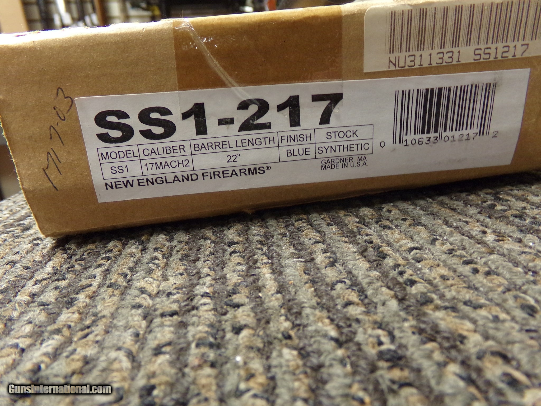 Description: Guns Listing ID: 659499 NEF Sportster single shot rifle in 17 Mach2...this gun is as new in original box with manual and hammer extension...heavy 22\" barrel...weaver base....hard to find! SOLD Manufacturer: NEW ENGLAND FIREARMS CO. Model: SPORTSTER 17 MACH 2 Caliber Info: 17 HM2 Condition: Used - Non-Certified Barrels: 22 BARREL Finish: BLACK |