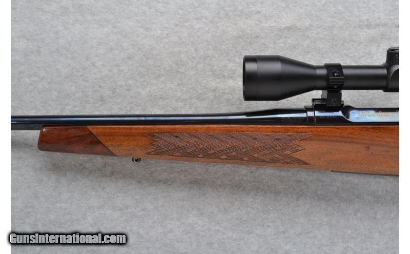 Description: Made in Japan by NIKKO. SOLD Caliber Info: 7mm Rem. Mag. Chambers: Hinged floorplate. Metal Condition: Good with light handling marks and barrel freckling. Wood Condition: Good with multiple handling marks. A little light finish wear. Bore Condition: Excellent. Barrels: 26 inches. Triggers: Gold tone. Stock: Diamond checkered walnut pistol grip with a raised cheekpiece and black Golden Eagle cap. Stock Dimensions: LOP 13 1/8 inches. Fore End: Diamond checkered walnut with a rosewood tip. Butt Pad: Smooth black flat plate. Weight: 8 lbs. 12 oz. with scope mounted. Sights: Bushnell 3x-9x 40 Scope. No iron sights. Item Location: Richfield, WI |