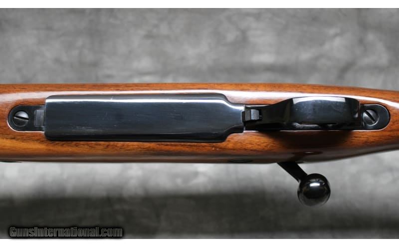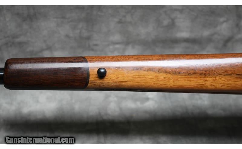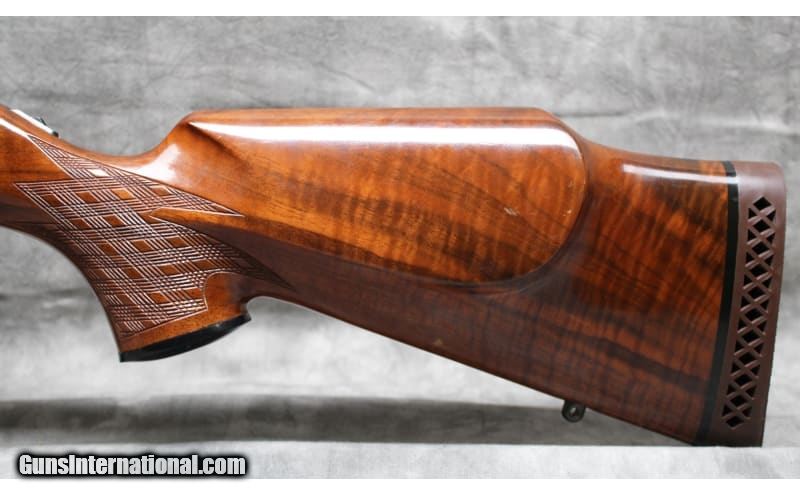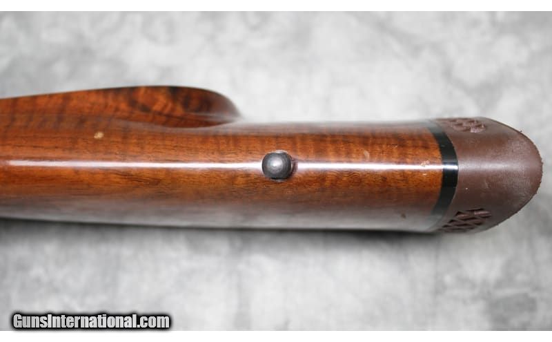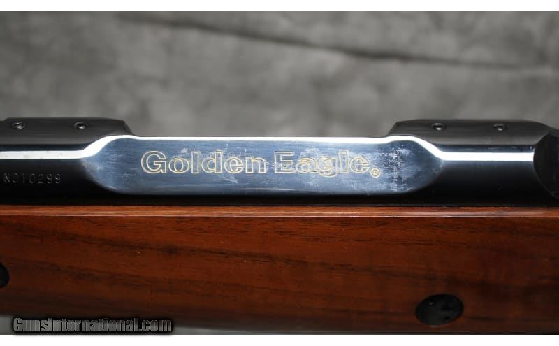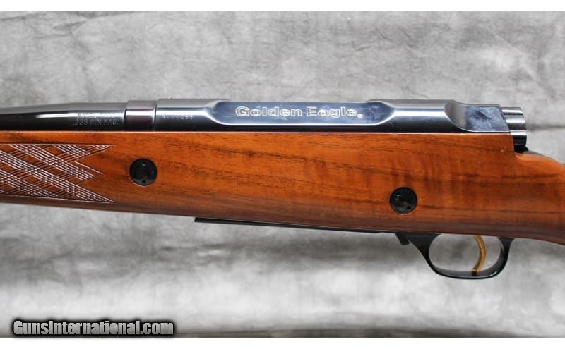 Description: This Golden Eagle M7000 was manufactured in Japan by Nikko Firearms Co. and is chambered in .338 Winchester Magnum. It has a 26-inch barrel. The buttstock is a diamond checkered grip walnut pistol grip with a raised cheekpiece and cap. The forearm is a diamond checkered walnut with a rosewood tip. The bolt is jeweled, and the trigger is checkered. .338 Winchester Magnum. .338 Winchester Magnum SOLD Chambers: .338 Winchester Magnum Metal Condition: Very Good with Minor Handling Marks Wood Condition: Very Good with Minor Handling Marks Bore Condition: Bright And Clear with No Pitting Barrels: 26 Triggers: Factory Gold Trigger Stock Dimensions: 14" Length of Pull Fore End: Diamond Checkered Walnut with Rosewood tip Butt Pad: Golden Eagle Rubber Butt Pad Weight: 8 lbs 10 oz Sights: Drilled and Tapped for Scope Mounts Item Location: Garland, TX |