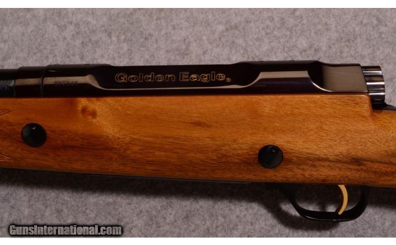 Description: Nikko 7000 Golden Eagle .375 H&H. 26" blued barrel with a Monte Carlo walnut stock. Big game cartridge. SOLD Caliber Info: .375 H&H Metal Condition: Very nice, receiver and bolt starting to plum Wood Condition: Very nice, minor dings throughout Bore Condition: Excellent, bright and shiny, strong rifling Barrels: 26 Triggers: Factory Stock: Monte Carlo lacquered walnut Stock Dimensions: LOP 14 Fore End: Checkered walnut with rosewood cap Butt Pad: Thick rubber Golden Eagle butt pad Weight: 9 lbs. Sights: Post front, fully adjustable rear Item Location: Wichita, KS |