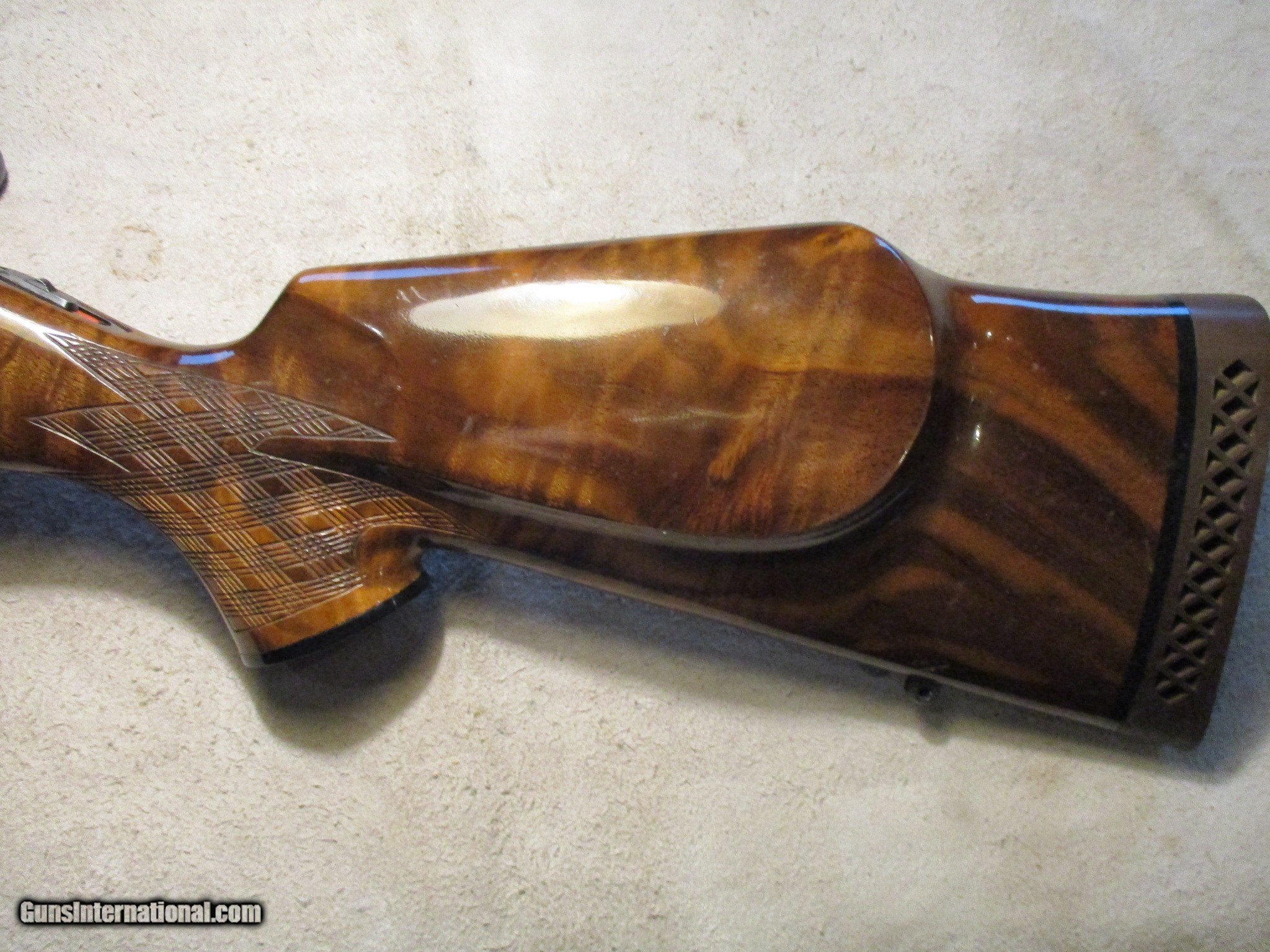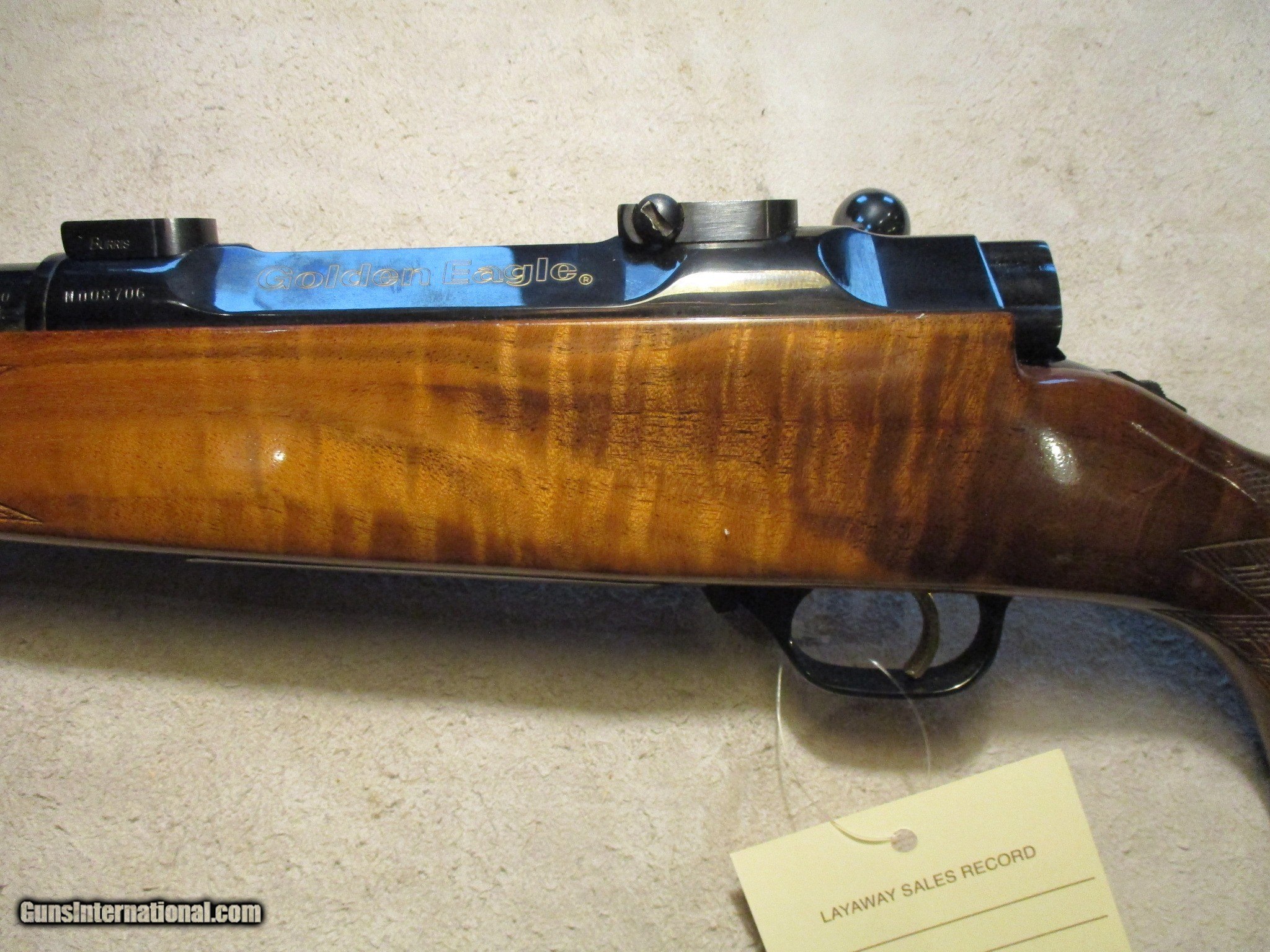 Description: Nikko Golden Eagle Deluxe, Personal gun to Robbie Robinson, Who was the owner/president of Nikko Rifle and shotgun company. This gun is a Model 7000 Deluxe in a 270 Winchester. Gun looks to have been shot only minimally, still very clean. Stunning gun! SN is N0087xx. We will trade for silver and gold. has now started collecting tax for states that mandate it, if applicable they will add it to your total. Email me if you would like these pictures sent to you, they will come through bigger and better than on the listing page here. We do offer Layaway. Our standard terms are 25% down, 90 days. Initial deposit is not refundable. Email me with any questions. Please check your local laws to confirm it is legal to own in your state! Buyer pays $25 shipping and insurance to your FFL in the lower 48. AK, HI or PR is extra. I will ship to California, NO PROBLEM! All my guns come with a non-firing, 3 day unconditional return privilege, from the day UPS delivers to your dealer. Buyer pays shipping both ways if the gun comes back. I can add a new hard case by PLANO for secure shipping for $25 if the buyer wishes (highly recommended, cheap insurance, really helps keep the UPS monster from eating my guns!). Guns sold in Kansas are subject to Kansas sales tax. I am a licensed FFL, and will include a copy of my FFL with the gun for your dealer’s records. I will ship to a C&R if the gun is eligible. I will ship to California, but you need to confirm the gun is legal where you are, California or other. WE BUY AND CONSIGN GUNS AND GUN COLLECTIONS! We will travel to pick up collections! I am always looking for good clean, old original Winchesters to buy, consign, or trade, especially Pre '64's model 70's and model 54's. WE ALSO TRADE FOR CLASSIC CARS AND TRUCKS! We also trade for gold and silver. SOLD Rifle Caliber: .14-222, .270 Winchester Manufacturer: Nikko Model: 7000 Barrel Length: 24 Condition: Used |