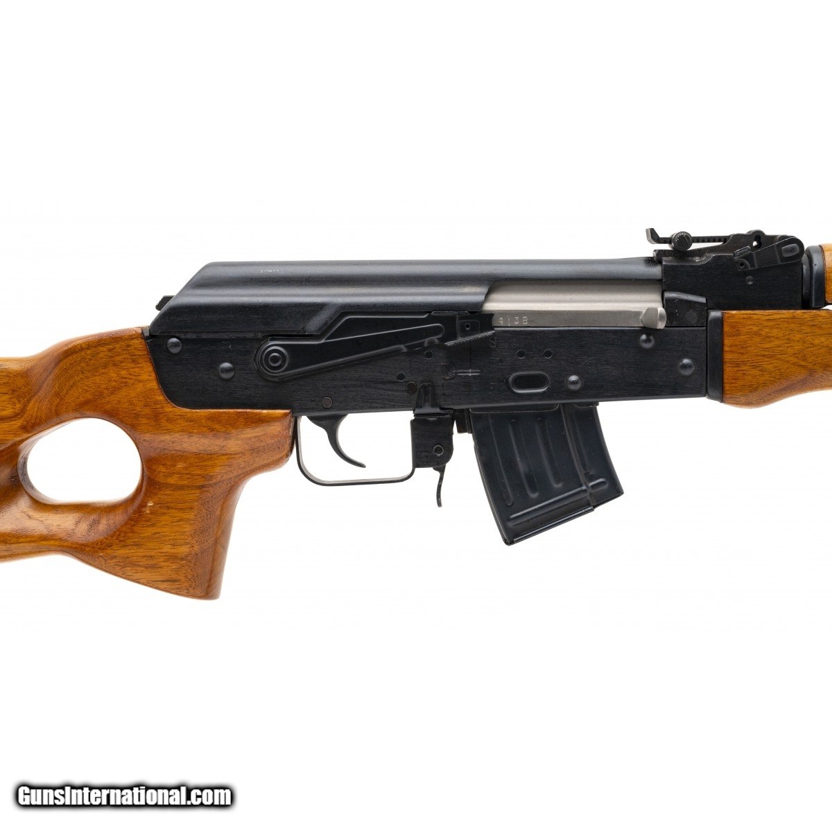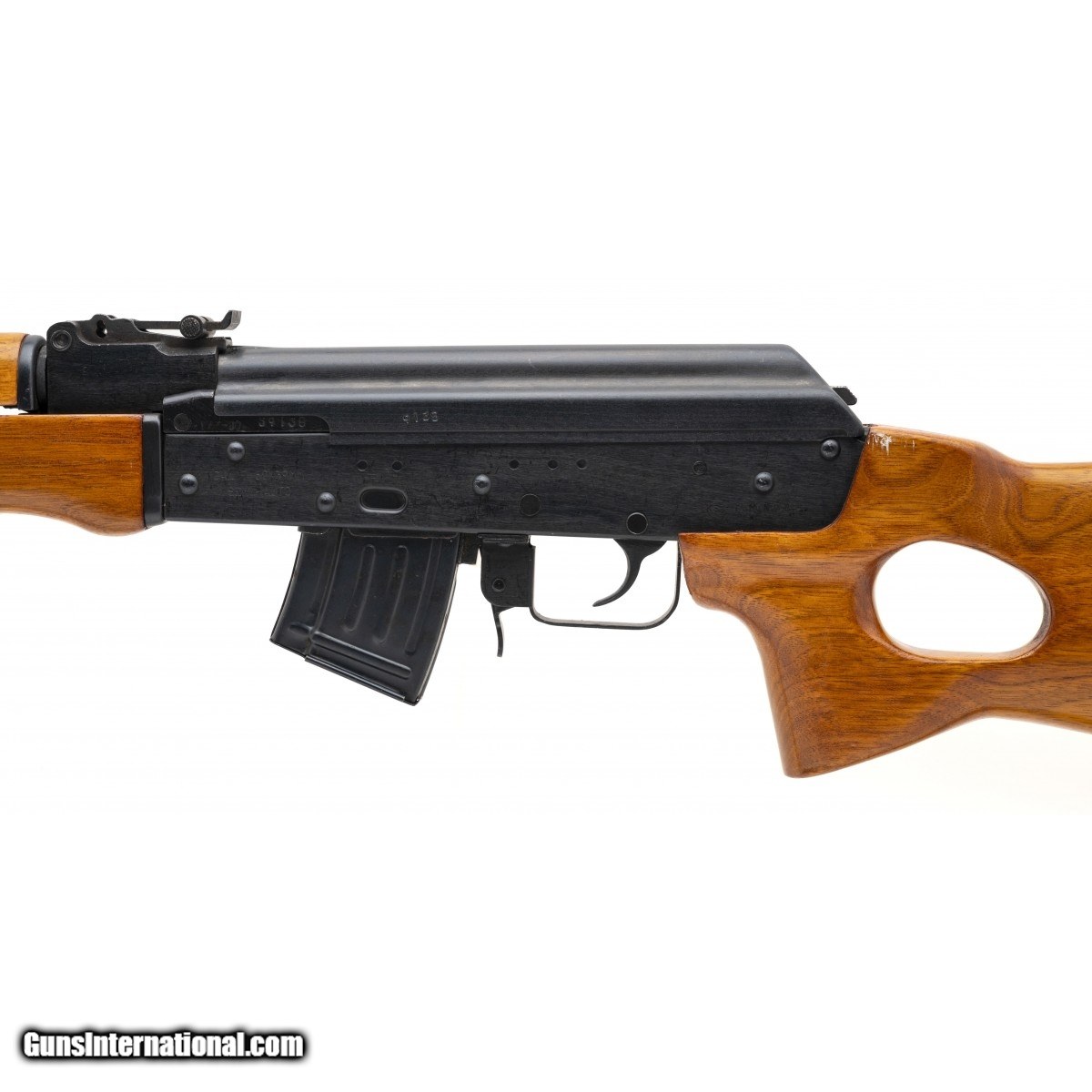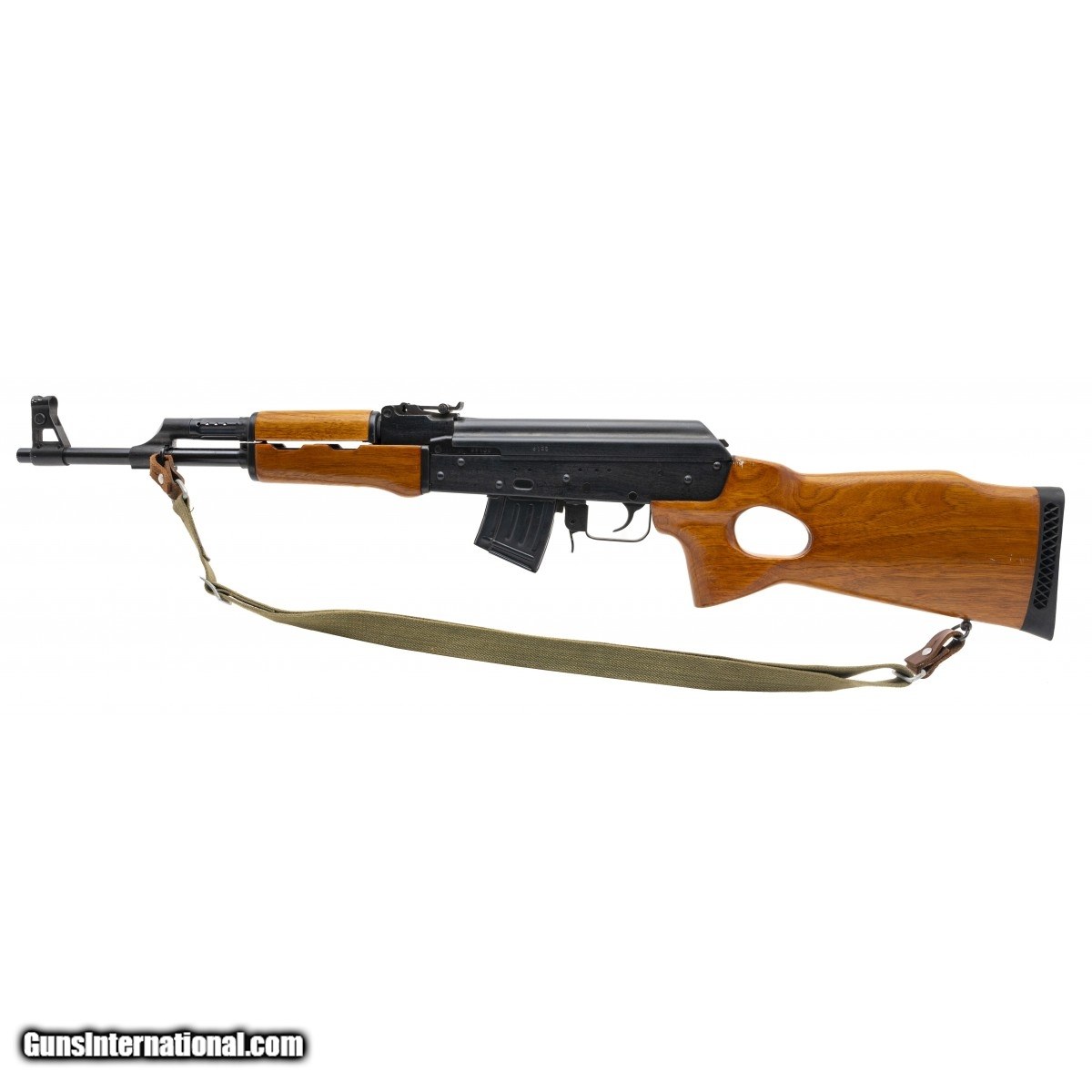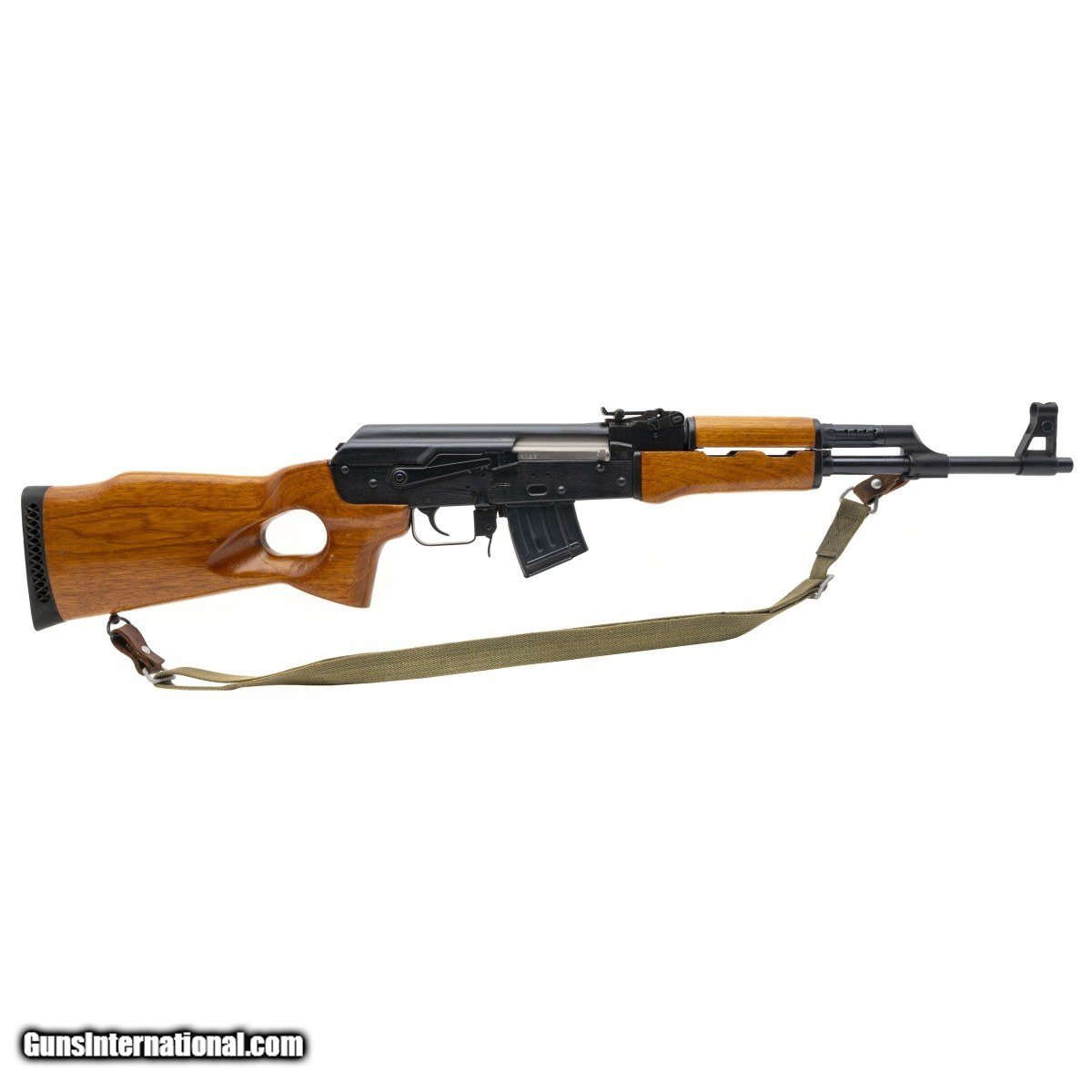 Description: "SN: 39138. Made in 1993 with a 16-inch barrel chambered for the 7.62x39mm cartridge. Chrome bore is bright with strong visible rifling. This is a post-ban Norinco AKM with a neutered front sight base, a neutered gas bloc & a thumbhole stock. Finish is in very good condition with light wear noted. Stock shows minimal handling wear. Comes with an original Norinco 10-round detachable box magazine. SOLD |