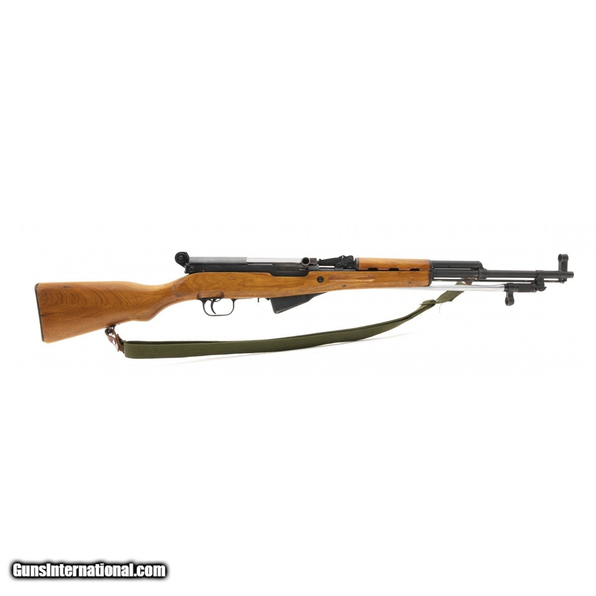 Chinese SKS variant. Bore is excellent with strong rifling. Rear receiver has a flip up rear sight added. Stock condition is very good. Rifle comes with sling and bayonet. Overall condition is very good plus.