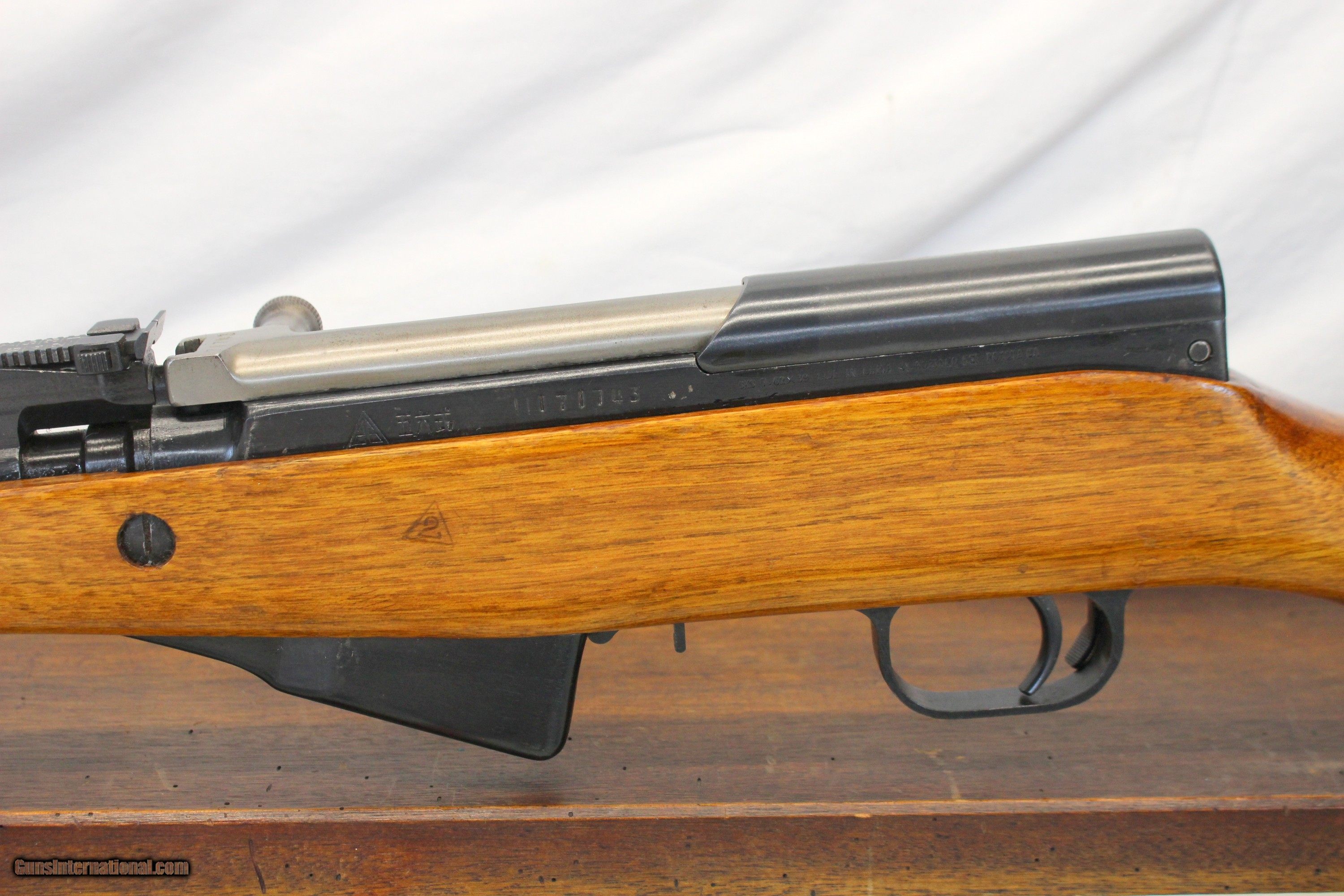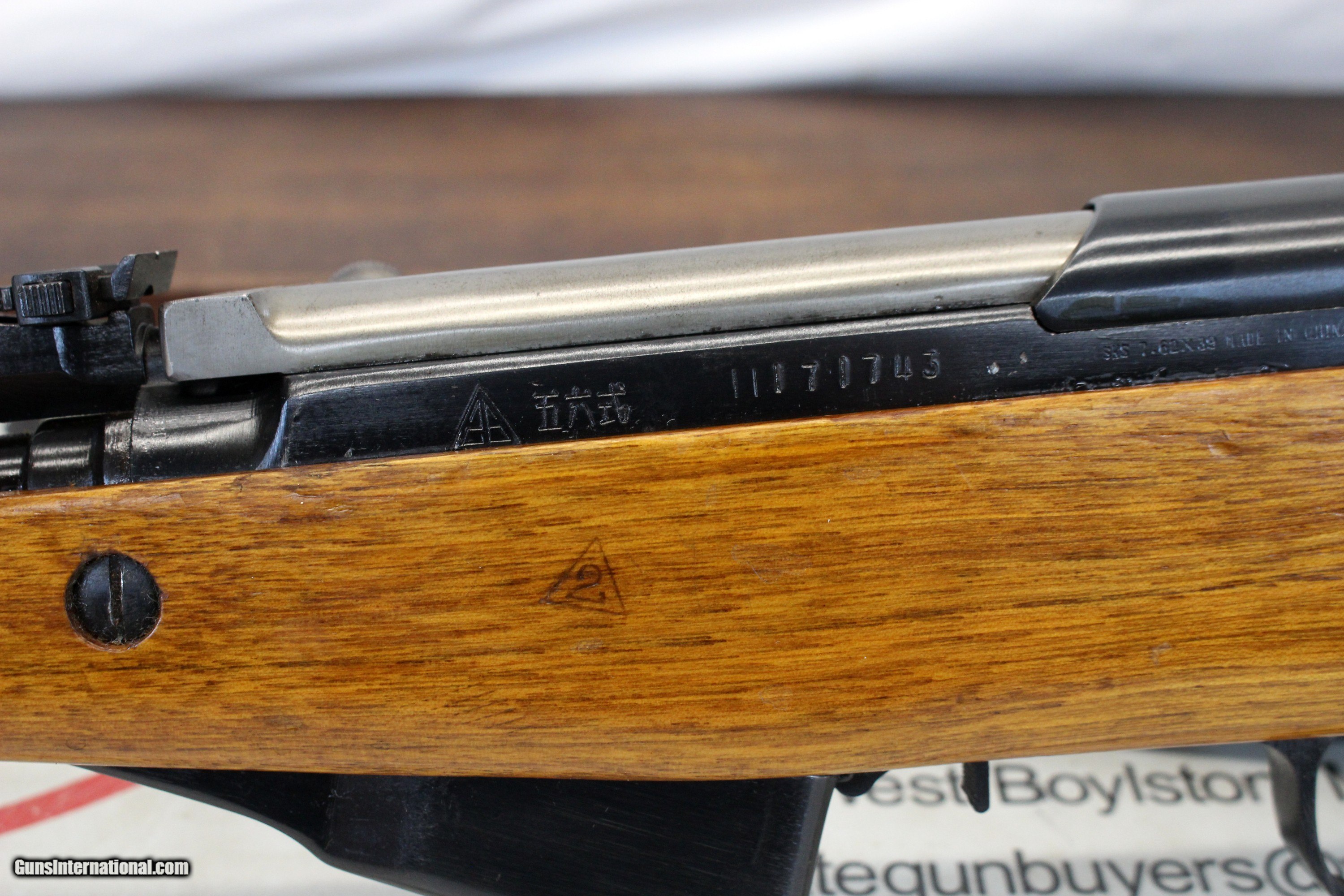 Description: We are offering for sale a vintage Chinese NORINCO SKS semi-automatic rifle chambered in 7.62x39mm. This gun remains in very good, functioning condition. This gun was manufactered at the Jianshe Arsenal (Triangle 26). 20" barrel is very good with clean bore showing crisp rifling. No bayonet. The receiver remains very good with light scattered wear. Gun functions flawlessly. The wood stock and top hand guard are very good with light field wear; Nice gloss finish remaining. The factory buttplate is damaged and does not have the cleaning kid hole cover. Numbers match on receiver, stock, bolt handle, bolt cover and trigger guard. Magazine numbers do not match. GREAT SHOOTER! SHIPPING IS $39.95 USPS GROUND WITH INSURANCE **** PLEASE NOTE: WE ONLY ACCEPT MASTERCARD AND VISA AS PAYMENT OPTIONS (please note we charge a non-negotiable 3% CC fee) **** **** WE TAKE CREDIT CARD PAYMENT OVER THE PHONE. WE DO NOT TAKE PAYMENT THROUGH THIS **** PLEASE LOOK AT ALL PHOTOGRAPHS FOR CONDITION Please know the legality of any weapon in your state before . If a gun can’t be transferred to you we will charge a 15% re-stocking fee. We are in the shop MODAY, WEDNESDAY, THURSDAY, FRIDAY and SATURDAY 8am-4pm EST. We will be in touch within 24 hours of your purchase. Please be ready to provide CC information. Please have your FFL email a copy of their license to: . No Face To Face Transfers! Please note: Clicking "buy" does not guarantee that this gun is yours, However clicking “Buy” will reserve this gun for you, if it hasn’t been sold in store. We will try to do our best to remove the posts as efficiently as possible, but sometimes delays may ensue. “Buy” is your safest bet to reserve a gun. Also please add 6.25% MA state sales tax (if from MA) and 3% credit card shop courtesy fee for all out of state buyers Before calling with concerns read these conditions and meet them accordingly. SOLD Curio/Relic: Yes |