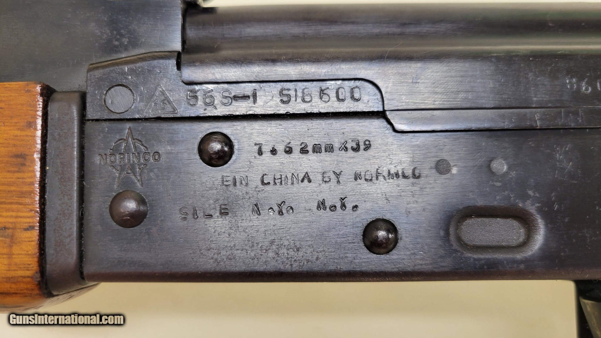 Description: Guns Listing ID: 1442958 Used Norinco Type 56S-1 rifle, imported by SILE. Matching, wood furniture. In used condition with finish wear through out and some light spots of pitting/rust, good bore. Please refer to pictures. Includes 1 magazine. SOLD Manufacturer: NORINCO Model: 56S-1 Caliber Info: 7.62X39MM Condition: Used - Non-Certified Barrels: 16.5 BARREL Finish: BLUED |