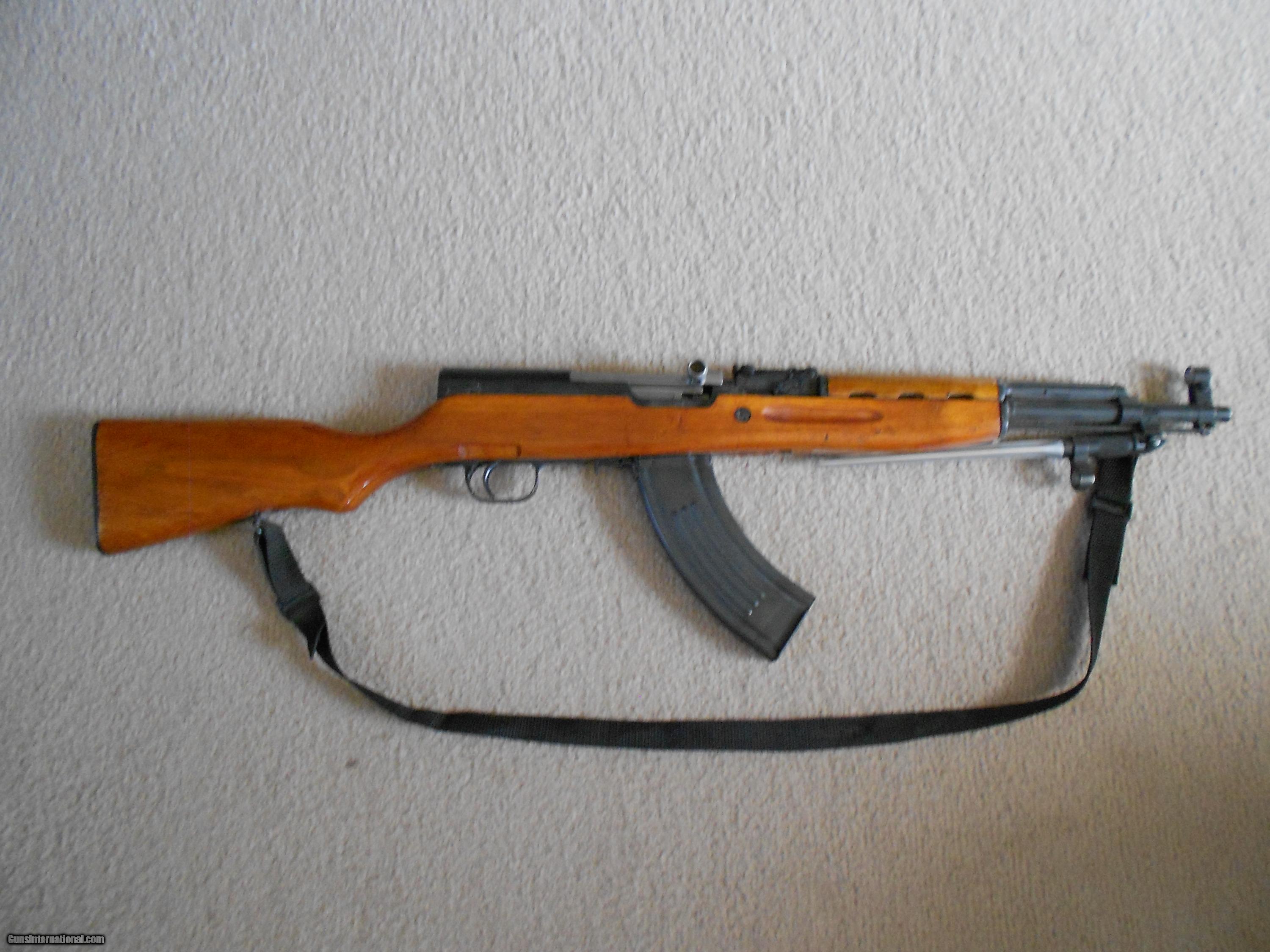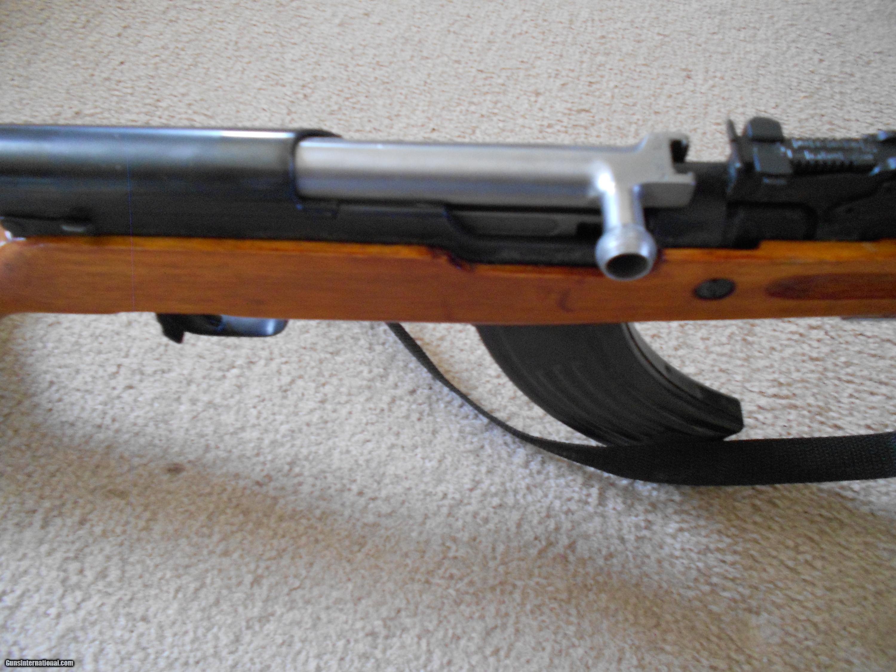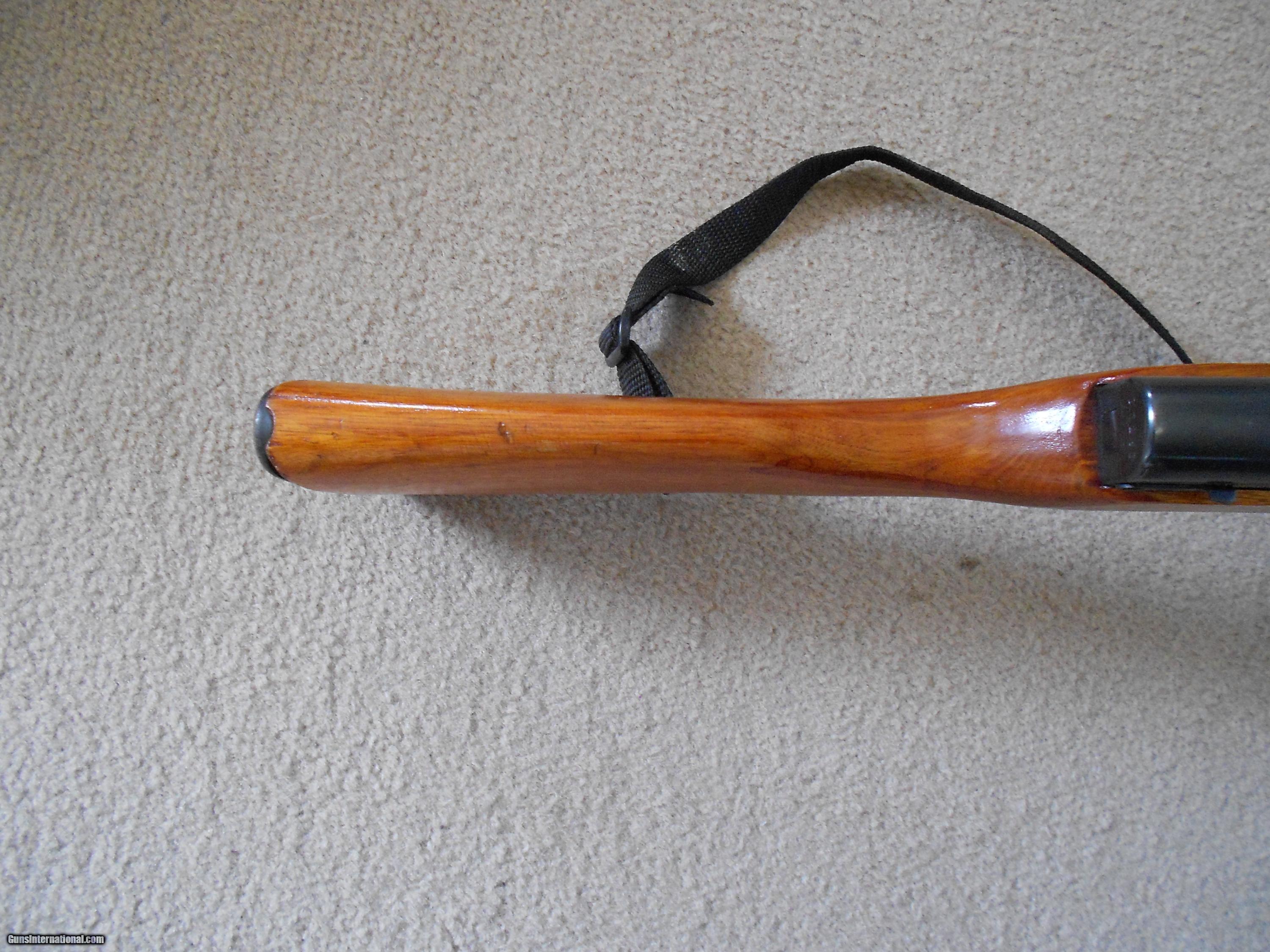 Description: THIS GUN IS IN EXCELLENT CONDITION. I BOUGHT IT BRAND NEW AND THE GUN HAS BEEN FIRED LESS THAN 100 RNDS. IT HAS A 16"-16.5" BARREL AND COMES WITH A 30 RND. CLIP, HAS 1000 METER ADJUSTABLE REAR SIGHT, CLEANING KIT IN BUT AND A BLADE STYLE BAYONET THAT SWINGS UP AND OVER END OF BARREL. NICE WOOD GRAIN WITH ALL MATCHING NUMBERS S/N 37283 SOLD Manufacturer: NORINCO Serial Number: 37283 Caliber Info: 7.62X39 Condition: VERY GOOD |