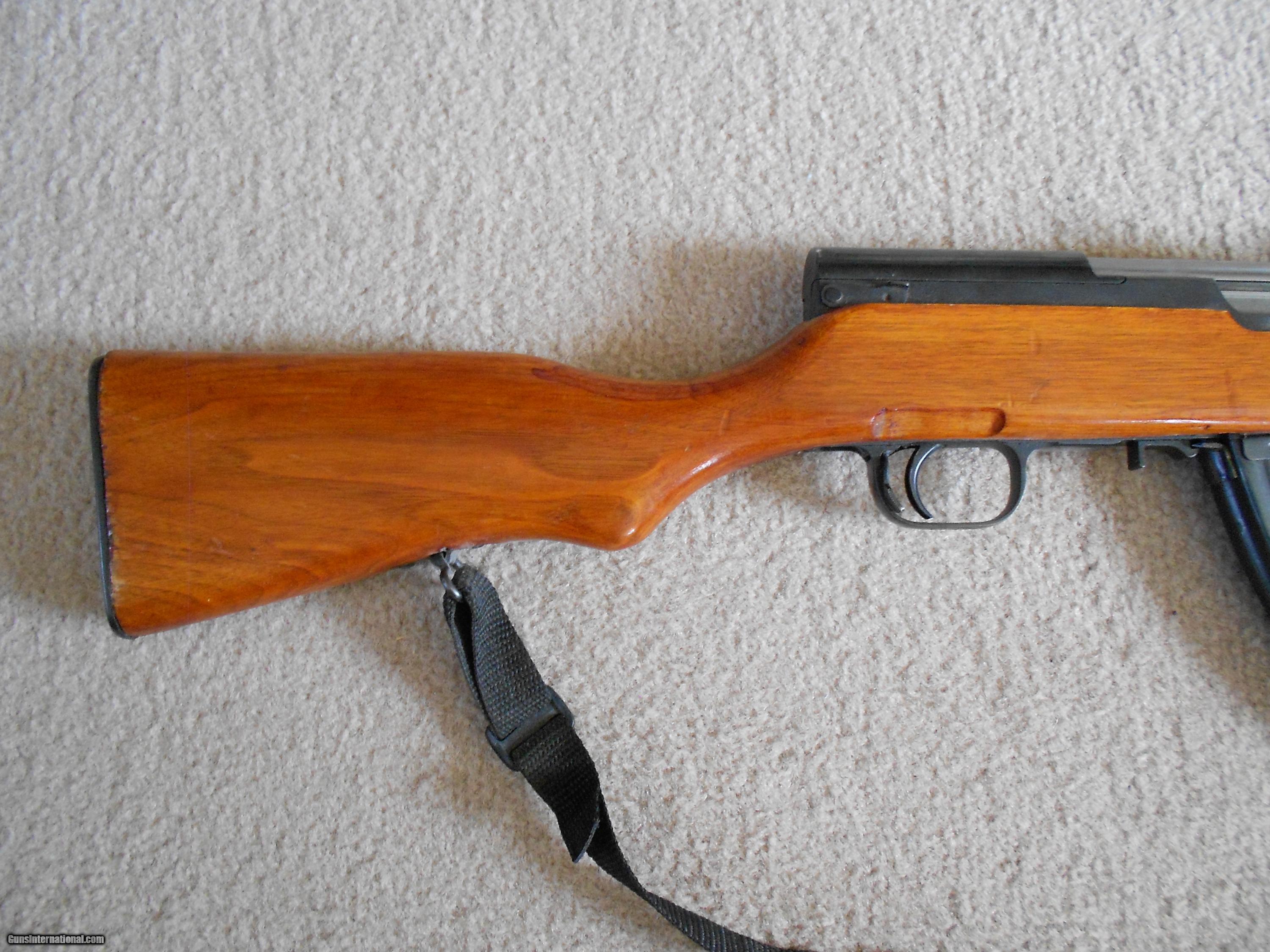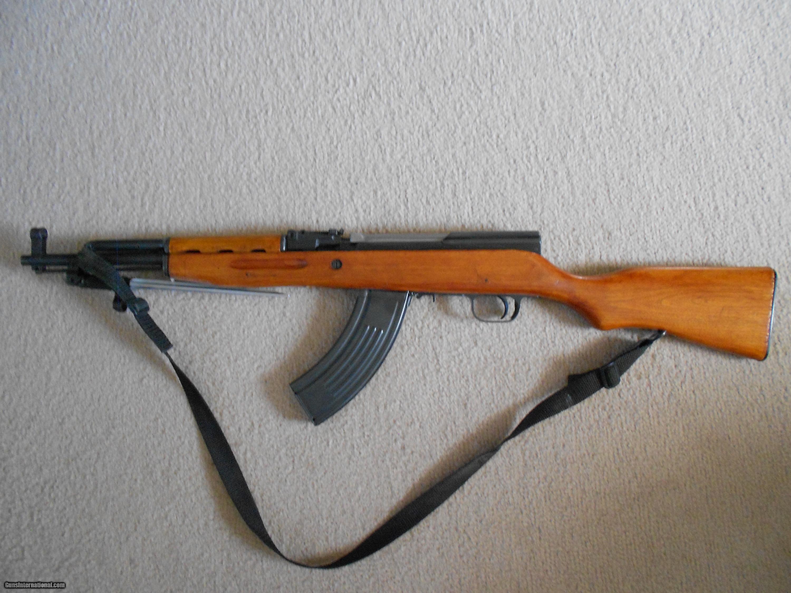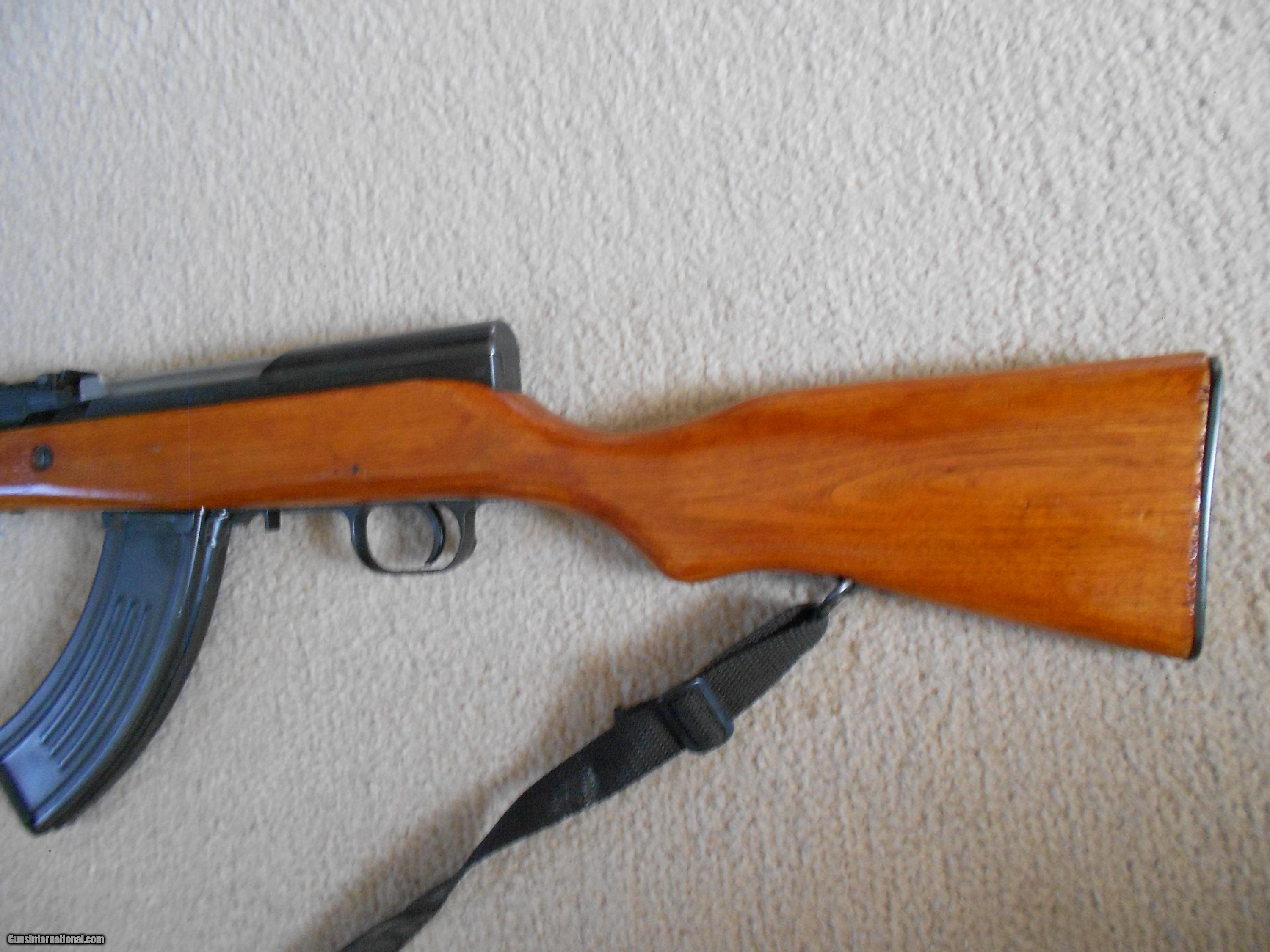 Description: THIS GUN IS IN EXCELLENT CONDITION. I BOUGHT IT BRAND NEW AND THE GUN HAS BEEN FIRED LESS THAN 100 RNDS. IT HAS A 16"-16.5" BARREL AND COMES WITH A 30 RND. CLIP, HAS 1000 METER ADJUSTABLE REAR SIGHT, CLEANING KIT IN BUT AND A BLADE STYLE BAYONET THAT SWINGS UP AND OVER END OF BARREL. NICE WOOD GRAIN WITH ALL MATCHING NUMBERS S/N 37283 SOLD Manufacturer: NORINCO Serial Number: 37283 Caliber Info: 7.62X39 Condition: VERY GOOD |