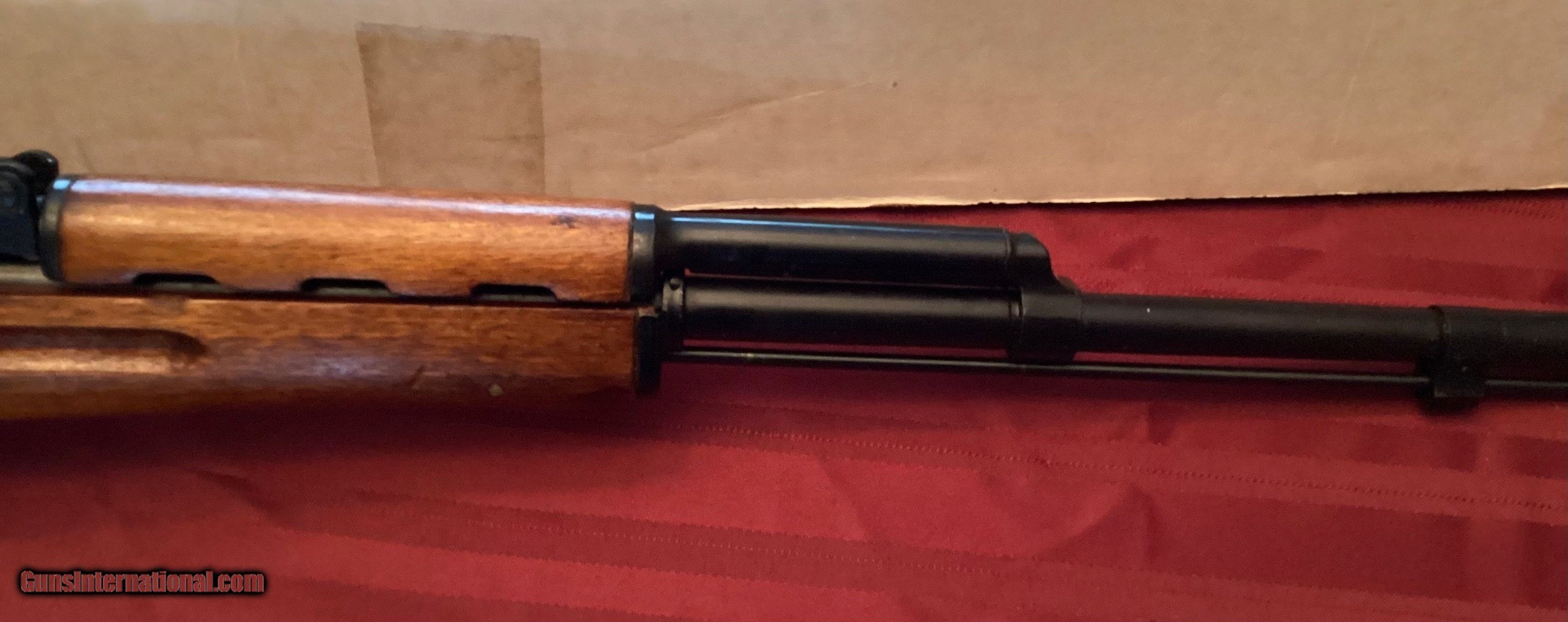 Description: Classic SKS 20 inch barrel Hunter model. Imported by K-Sports, Pomona CA. Circa 1994. All numbers matching with original owner manual and box. Includes factory supplied sling. Has the usual Chinese imported handling marks with packing grease. Unfired or modified since importation. Retains the following features: Has a Triangle “5” factory code on receiver. Mid production-short barrel lug 1967-1979 not pinned Spike cut inletted stock. Milled off bayonet lug. Retains cleaning rod. Mid to late production-stamped trigger group. Has charging clip in bolt. One piece long gas tube. Rail to nowhere or “Westcoast” rail left side of stock. Re-arsenaled In China for commercial sales. Underside stock sling attachment IF UTILIZING THE BUY NOW FEATURE, PURCHASER MUST CONTACT US WITHIN 24 HOURS FOR PURCHASE SETTLEMENT AND PAYMENT. WE DO NOT CHARGE CREDIT CARD FEES!! PURCHASER MUST OBTAIN FFL INFO AND HAVE IT SENT TO US PRIOR TO SHIPPING. EMAIL IS PREFFERRED METHOD OF COMMUNICATION. SOLD Rifle Caliber: 7.62x39mm |