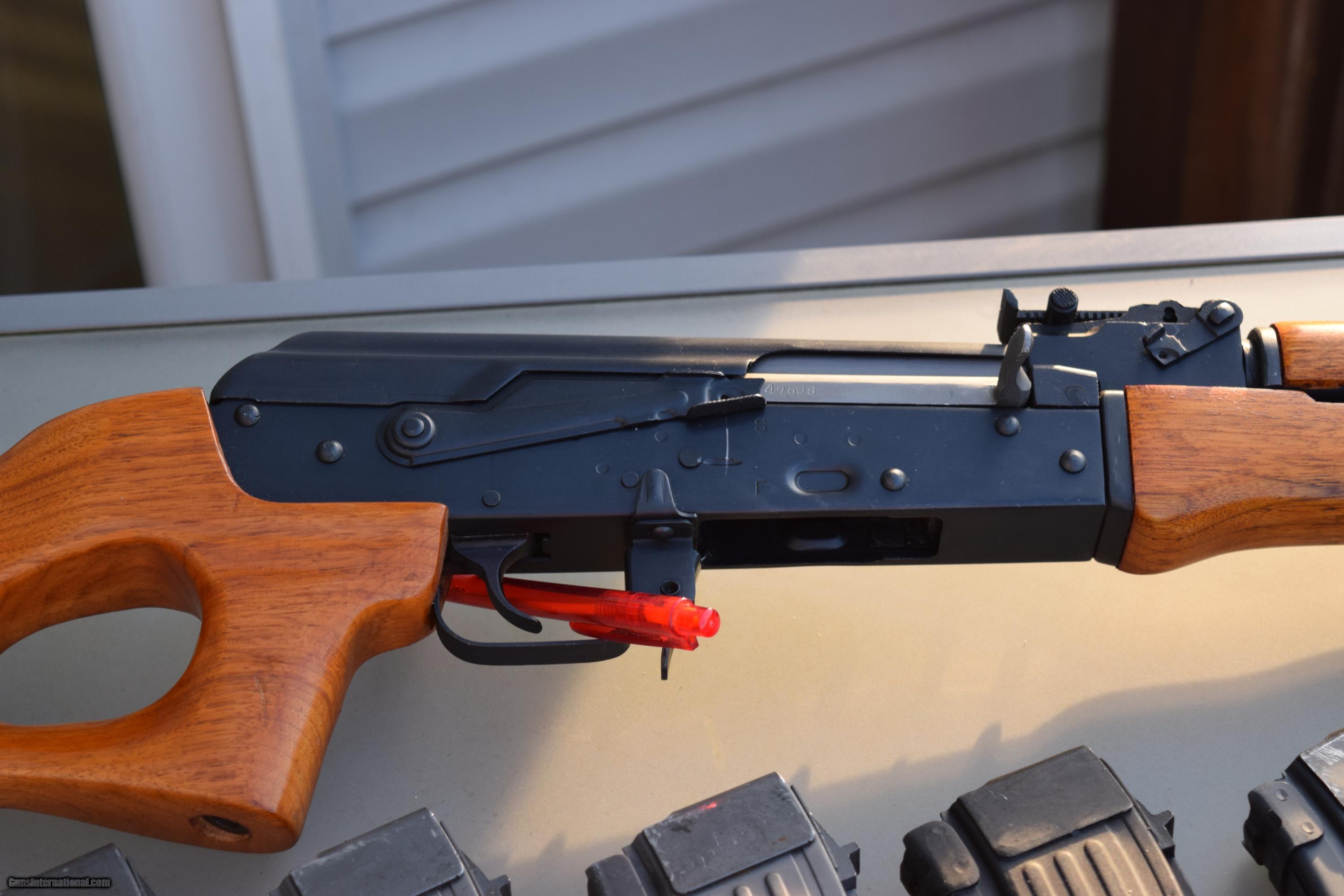 Description: Like new, less than 100 rounds fired through it! Metal finish unmarred , Wood has one small indention on front pistol grip, otherwise looks new. Thumbhole stock is easily replaced with traditional AK stock. Of course chamber and barrel chromed. Comes with nine, 30 rd mags,in excellent condition. Also comes with four, 5 rd mags. I have no box or papers .Buyer pays actual cost of shipping Standard 3-day no-fire inspection and return policy Payment methods: Postal money order, bank cashier's check, or personal check With Postal money order, gun ships immediately, with bank cashier's check or personal check gun ships when check clears. I believe the MAK 90 is the equal to preban Poly Tech Chinese AK's with stamped receivers. Transfer through FFL only Sales Tax only applicable in Tennessee SOLD Manufacturer: Norinco Model: MAK 90 Sporter Caliber Info: 7.62x39 Condition: Near New Metal Condition: Near New Wood Condition: Near New Bore Condition: Perfect |