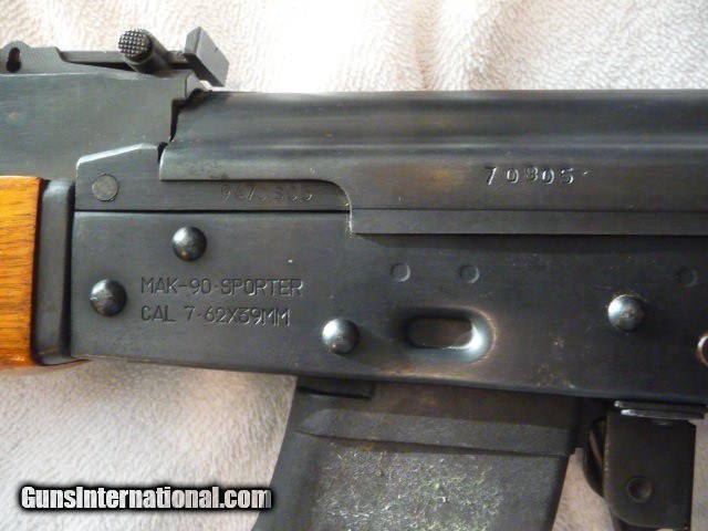 Description: NORINCO MAK 90 SPORTER 7.62 X 39MM. CHINESE ORIGINAL PLUS STRAP AND 30RD CLIP IN LIKE NEW CONDITION. BUTT PLATE, WOOD STOCK & FORE-ARM, WOOD GRIP. 16 INCH BARREL, 30 ROUND CLIP. SEE PICTURES FOR TECHNICAL SPECIFICATIONS. SOLD Rifle Caliber: 7.62x39mm Manufacturer: NORINCO Model: MAK -90 SPORTER Serial Number: 9470805 Barrel Length: 16 INCH Condition: very good Metal Condition: very good Wood Condition: very good Bore Condition: very good |