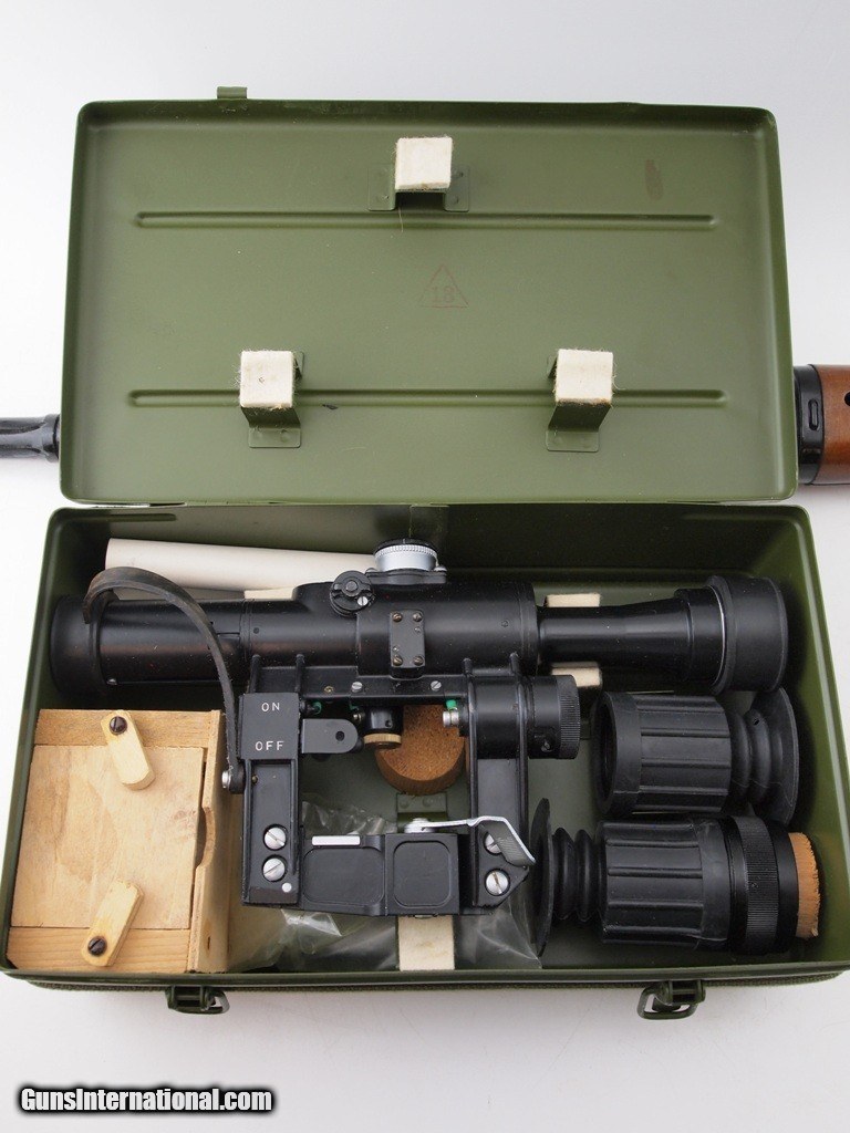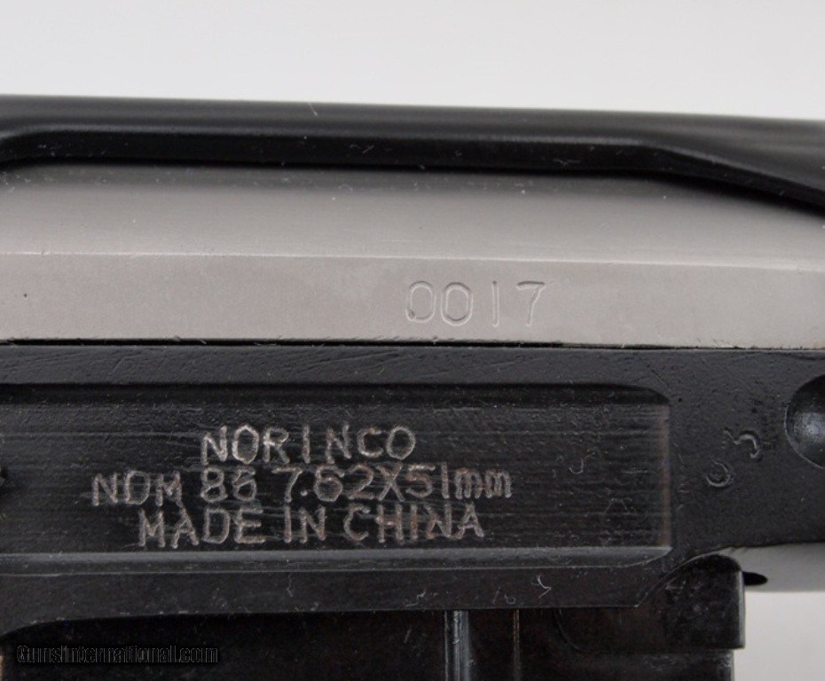 Description: Excellent Norinco NDM 86 7.62X51 (.308) WScope, 24" bbl, bright shiny bore, good rifling, black finish, flash reducer, bayonet lug, adjustable rear notch sight, post in ghost ring front sight, Telescopic Sight Type 1985 with box, smooth hardwood pistol grip butt stock with removable padded cheek rest, smooth hardwood vented forearm, metal butt plate, and one 10 round magazine. See pictures for an appreciation of this rifle. Great selection for your collection! Add 3% for Credit Card Shipping $50.00 SOLD |