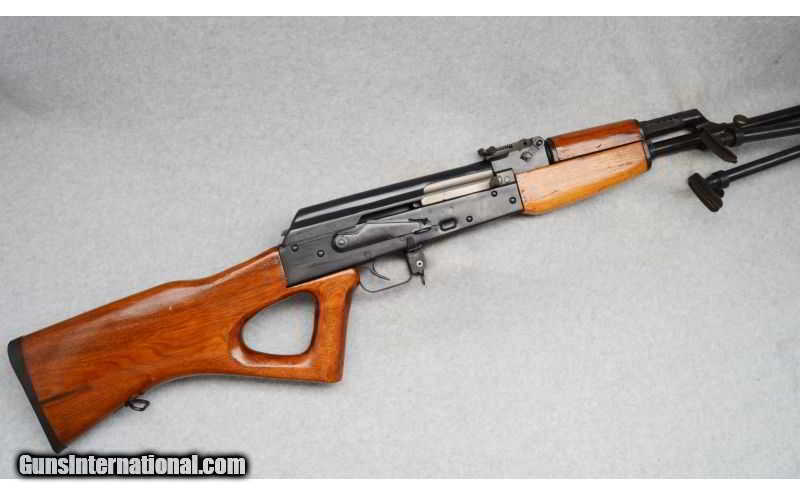 Description: Includes magazine. SOLD Caliber Info: 7.62x39 Metal Condition: Very good. Wood Condition: Very good. Bore Condition: Shiny with strong rifling. Barrels: 20" with bi-pod. Stock: Smooth wood. Fore End: Smooth wood. Butt Pad: Rubber. Weight: 8-lbs., 5-ozs. Sights: Front post, stepped rear blade. Item Location: Fort Worth, TX |
