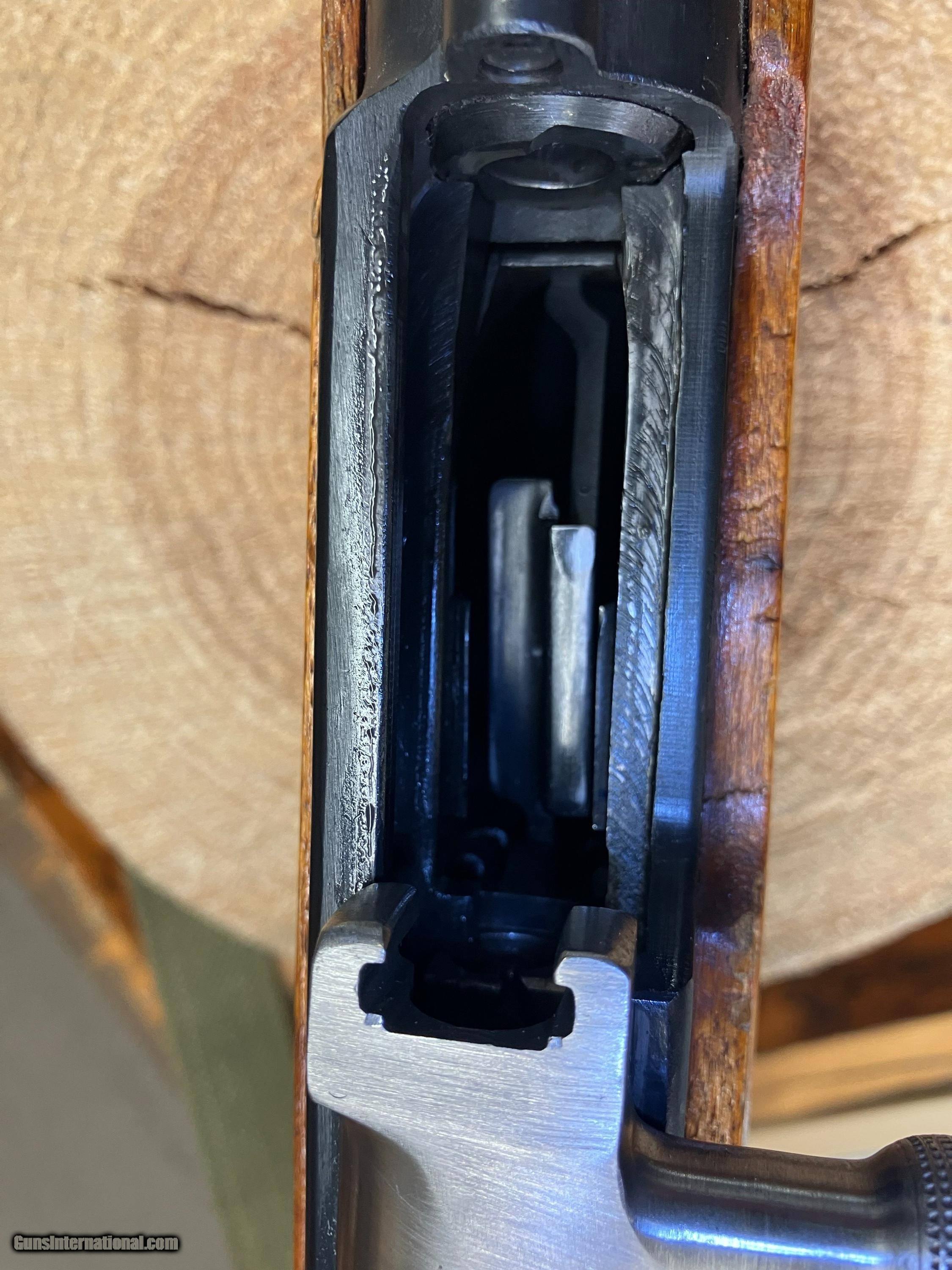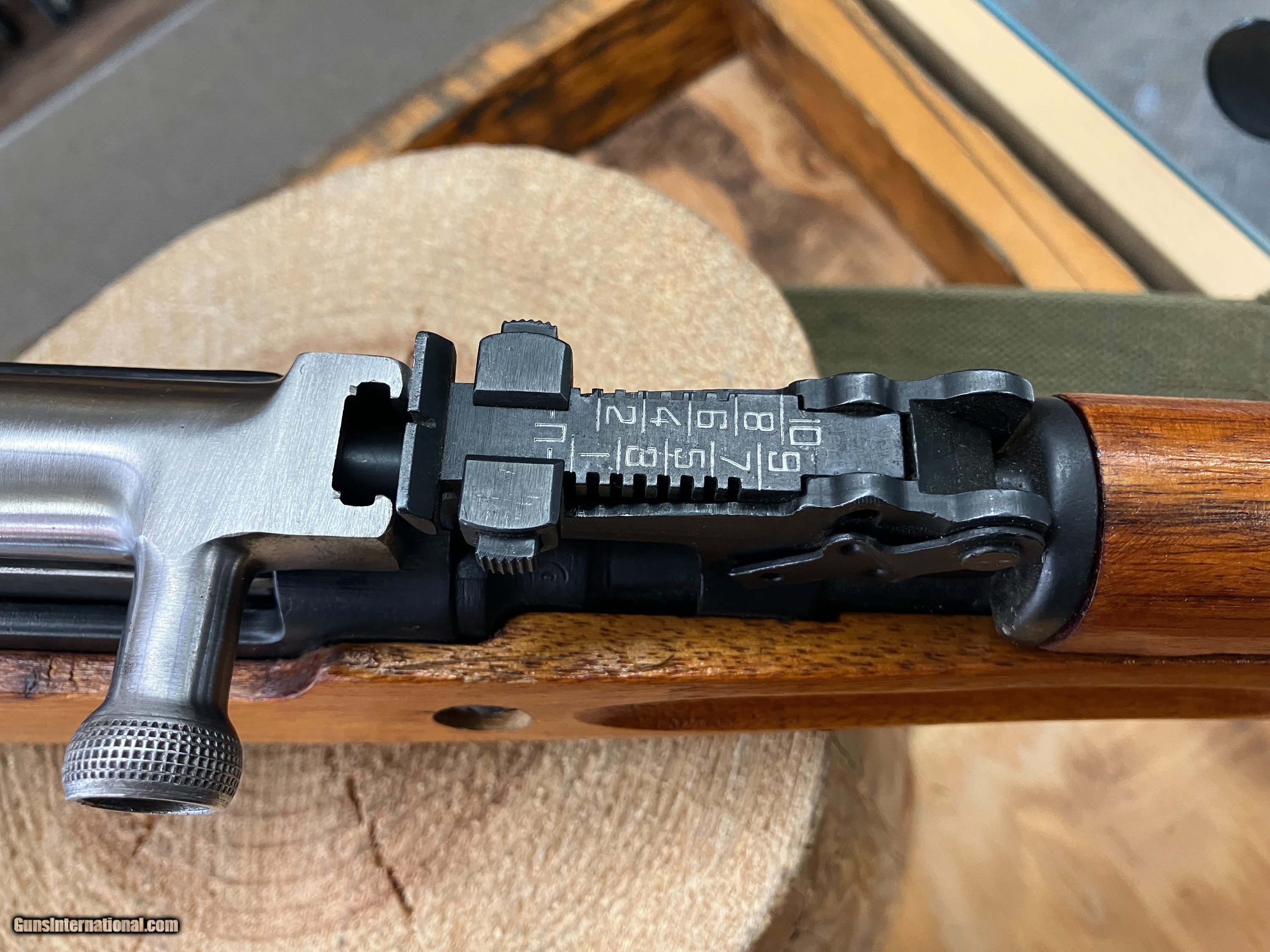 Description: Norinco Paratrooper SKS Rifle - Rifle is in Very Good Condition - Paratrooper Model with 16” Barrel - Comes with Original Spike Bayonet and Sling Chinese Norinco Paratrooper SKS semi-auto rifle. This rifle has original hooded front sight and adjustable open notch rear sight. Very little bluing wear on barrel and receiver. Bolt is smooth and clean. Internally the barrel is very clean and has sharp rifling. Wood stock and forend in very good shape with only a few minor scratches and pressure mark on the top left side above the stock screw. Butt pad replaced with a more substantial recoil reducing model. Comes with green cotton canvas sling with leather ends for attaching to the rifle. Specifications: Manufacturer: Norinco Model: SKS Serial Number: 11241098 Overall Condition: VERY GOOD Caliber: 7.62x39mm Action: Semi-Auto Barrels: 16” Rib: Vent Rib with Center Bead Choke Tube Left: Fixed Full Choke Tube Right: Fixed Modified Stock: Hardwood Stock and Forend Twist: 1:10” LOP: 13.5” Finish: Blued/Hardwood Weight: 8 LBS. 1 OZ. Overall Length: 37” Safety: Lever Magazine: Fixed Internal SOLD Rifle Caliber: 7.62x39mm Serial Number: 11241098 Condition: Very Good |