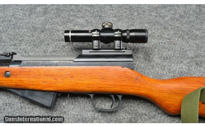 Description: This SKS rifle is in very good condition overall. The wood and the metal both show light wear with slight denting to the wood. The action cycles smoothly and the scope is clear. This rifle does not include the bayonet. 7.62X39mm SOLD Metal Condition: Very good Wood Condition: Very good Bore Condition: Very good Barrels: 20 Triggers: Factory Stock Dimensions: 13.5" LOP Butt Pad: Rubber Weight: 9.05 lbs Sights: "Hooded post front sight, tangent notch rear sight. Red Star 4×20 scope. Item Location: Gainesville, VA |