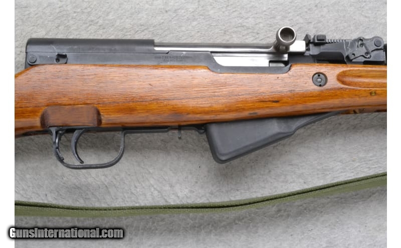 Description: This Norinco Model SKS is a right hand semi-auto rifle in 7.62x39 mm Cal. It has a 20 inch barrel with hooded bead front sight and a numbered sliding adjustable notch middle sight. The butt stock is a smooth grip hardwood pistol grip. The forearm is a smooth grip two piece hardwood with finger grooves. 7.62X39mm SOLD Chambers: 10 round hinge plate magazine Metal Condition: Very good with handling marks. Wood Condition: "Very good, shiny. Bore Condition: Excellent Barrels: 20 inches Stock Dimensions: LOP 13 inches Fore End: Smooth grip two piece hardwood with finger grooves. Butt Pad: Smooth metal with storage and tools. Weight: 7 lbs. 12 oz. Sights: Hooded bead front sight and numbered sliding adjustable notch middle sight. Item Location: Richfield, WI |