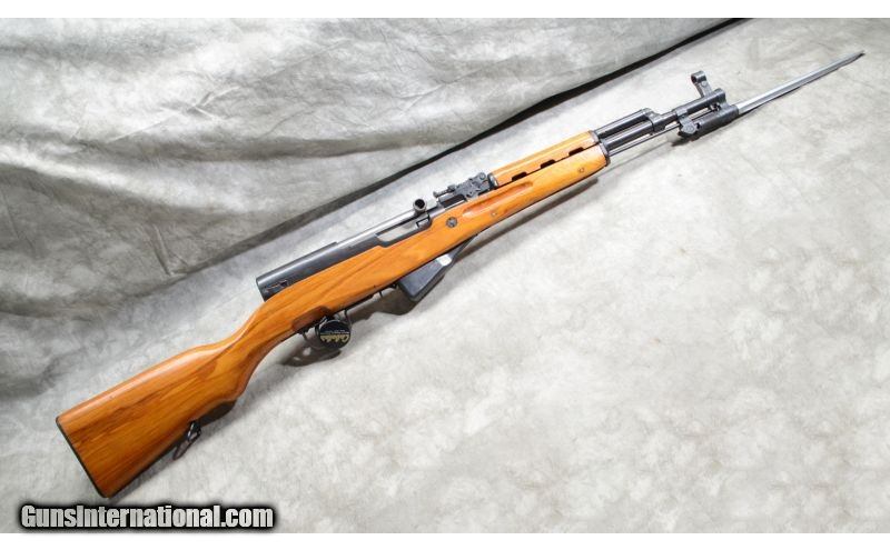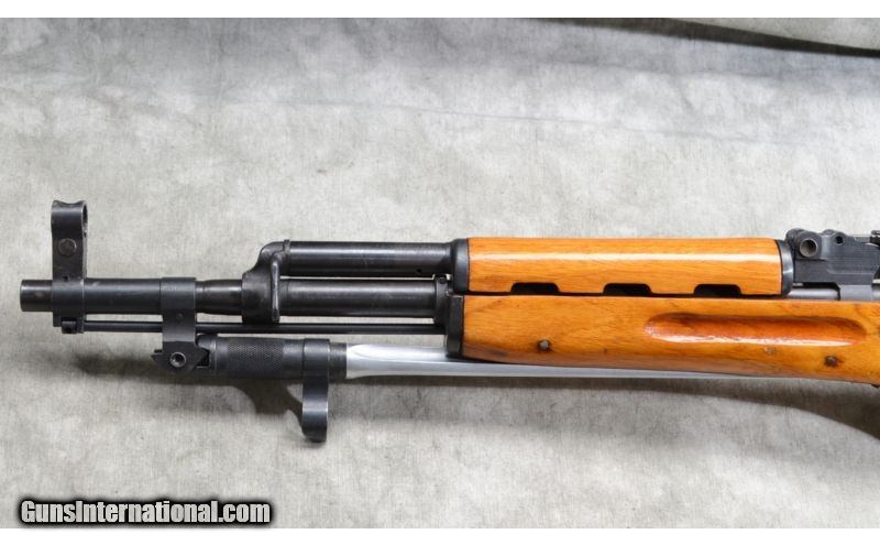 Description: This SKS features matching S/N's, clean wood, integral bayonet and sling. SOLD Caliber Info: 7.62X39MM Chambers: 10-round internal magazine. Metal Condition: Very good. There is some very light surface pitting on the receiver and a small amount of finish wear. Wood Condition: Very good. There are a few nicks and dents. Bore Condition: A little dark but shiny and good rifling. Barrels: 16 1/2 Inch Barrel. Triggers: Factory trigger. Stock: Smooth hardwood military type stock. Stock Dimensions: 12 - 1/2 inch LOP. Fore End: Finger groove and hardwood heat shield. Butt Pad: Steel plate with cleaning kit port, kit included. Weight: 8 lb. - 2 oz. Sights: Combat guarded post and ladder type notch. Extras: Sling Item Location: Fort Worth, TX |