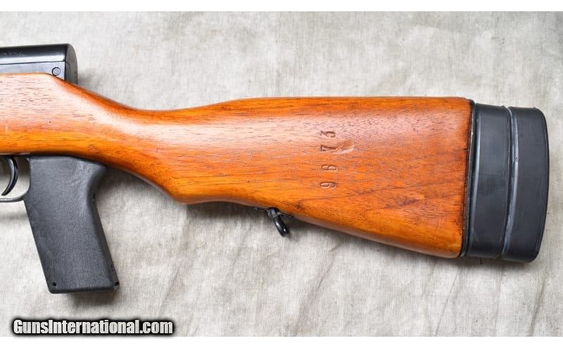 Description: This SKS has been customized with a detachable magazine, stock extensions, and flash hider.The stock is in great shape with only light handling marks. The metal is in very good condition with a few light scratches. The furnished magazine holds 25 rounds. 7.62x39mm SOLD Chambers: 25-round detachable magazine. Metal Condition: Very good. Wood Condition: Very good. Bore Condition: Bright and shiny with good rifling. Barrels: 21 inches inclusive of flash hider Triggers: Factory trigger Stock Dimensions: 14-1/2 inch LOP Fore End: Hardwood with heat shield. Butt Pad: Rubber pad Weight: 8 lb - 9 oz Sights: Hooded bead and notch military sights. Item Location: Rogers |