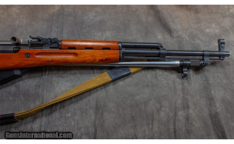 Description: Here is very nice all matching numbers Type 56 Norinco SKS. It features a 10 round fixed magazine, sling and folding spike bayonet. It was imported by POLY USA in Atlanta, GA 7.62X39mm SOLD Chambers: 7.62x39mm Metal Condition: excellent Wood Condition: excellent Bore Condition: excellent Barrels: 20 Butt Pad: Factory metal w/ cleaning kit Weight: 9.1lbs Item Location: Concord, NC |
