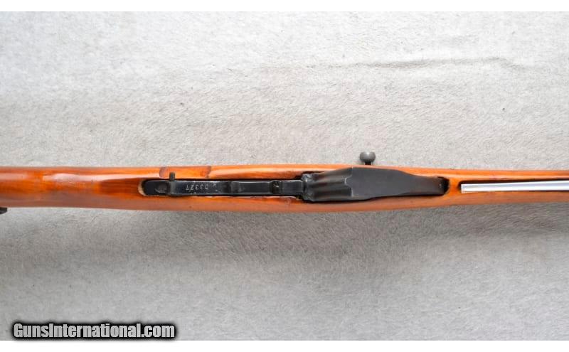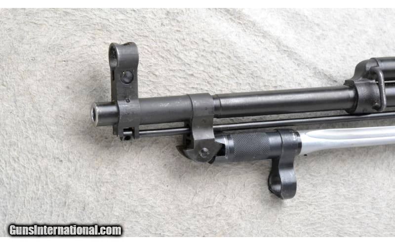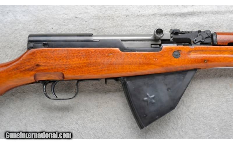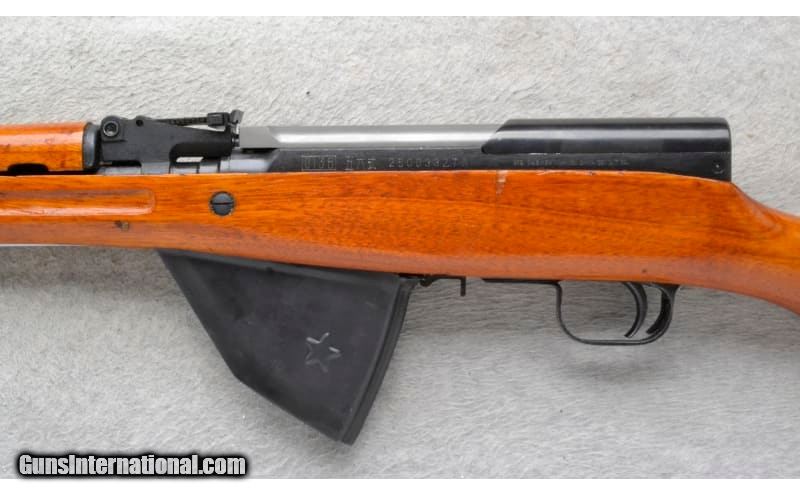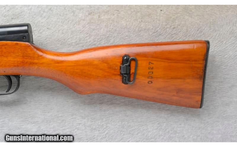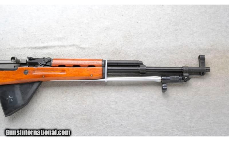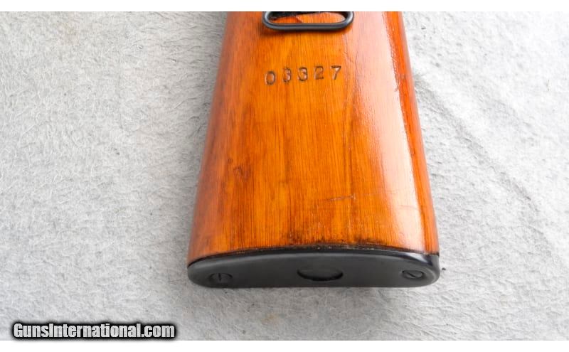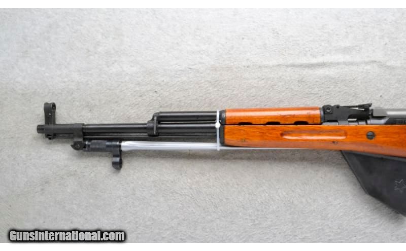 Description: This Norinco Model SKS is a right hand semi-auto rifle in 7.62x39mm Cal. It has a 20 inch barrel. A raised ringed post front sight and a numbered sliding adjustable notch middle sight. The butt stock is a smooth grip hardwood pistol grip. The forearm is a smooth grip two piece hardwood with finger grooves. Serial Number 25003327. 7.62X39mm SOLD Chambers: Hinged Magazine. Metal Condition: Very Good. Wood Condition: Good. Some handling marks. Has been refinished. Bore Condition: Excellent. Barrels: 20 inch. Stock Dimensions: LOP 12 1/2 inches. Fore End: Smooth grip two piece hardwood with finger grooves. Butt Pad: Smooth steel cap with a round trapdoor. Weight: 8 lb. 8 Oz. Sights: Raised ringed post front. Numbered sliding adjustable notch middle. Item Location: Richfield, WI |