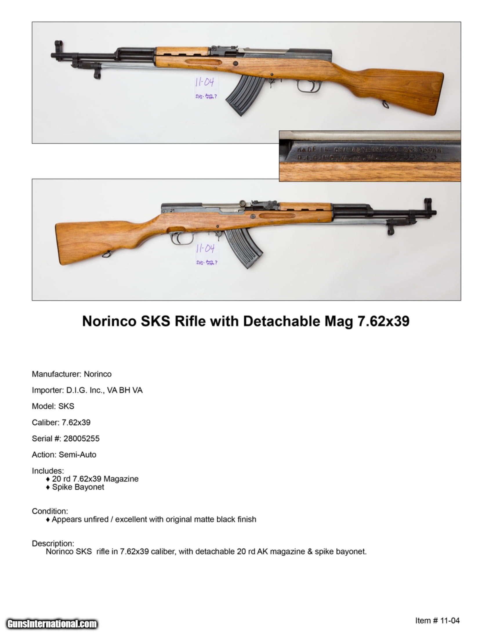 Description: Norinco SKS Rifle with Detachable Mag - Used SOLD |