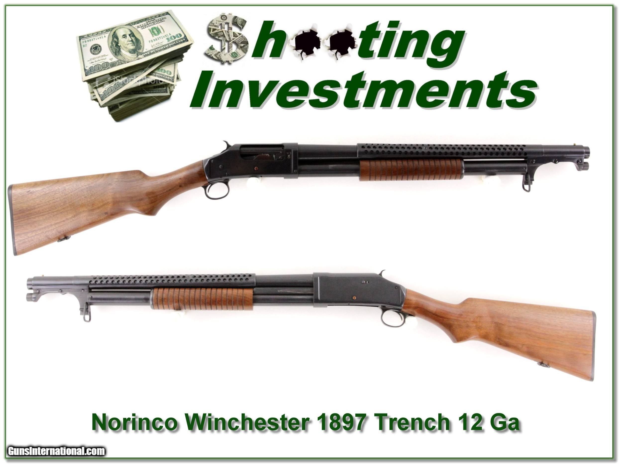 Description: This is a remark of the famous WWI Winchester Model 1897 Trench gun. It is a perfect reproduction down to the bayonet lug and 20in barrel with heat shield. It is in about new condition with no marks I see. If fired, only a couple shells. It is a well made shotgun and will make a nice addition to your collection! Shipping with insurance is $39. Please email me with any questions or larger pictures. (Consign your quality firearms with Shooting Investments for only 12%! Let me know if you have any you would like to sell!) 19-1154 Payment: Payment is by Money Order, Cashiers Check or Personal Check. I can now also accept Credit Cards (MasterCard, Visa, Discover & American Express) with a 3% convenience fee. PayPal can be used for some items but never for firearms. Shipping: The shipping charge will be listed in each description. It is $39 for most firearms. Some heavy guns or those insured for over $2000 will be higher. Shipments to Alaska and Hawaii are higher because air shipment is required. Most firearms are shipped on Tuesday and Thursday and usually in 5 days of receipt of payment. We package all shipments carefully and insure them. Optics are shipped Priority Mail and most other non-firearm shipments are shipped First Class. Returns: Our return policy is simple. If for any reason you are not pleased with your purchase, you may return your item for a full refund of purchase price. Ammunition cannot be returned. It is important to us that you are happy. Guns cannot be fired or dissembled before returning them and they must be returned in the same condition as received. Notification of a return must occur with-in 3 days of receipt at your dealer. Shipping, convenience and dealer fees are not refundable and are the responsibility of the buyer. Lay-a-way: If needed, we offer a 60 day lay-a-way option on most firearms. It is 1/3 now, 1/3 in 30 days and 1/3 in 60 days. Lay-a-way firearm sales are final and if not completed the first payment cannot be returned. Consigning your firearms with Shooting Investments: We will help you get top dollar for your firearms. While most local guns shops charge 20% or more, our fee is only 12% with a minimum of $75. At your local gun shop it might take months to sell. Selling on-line provides instant access to thousands of interested buyers. You won’t find any other on-line dealer willing to sell your firearms for only 12% or listing every gun on 3 separate s. Selling through an House typically costs the seller 15% and the buyer an addition 15% (so 30%) and you have to wait several months to sell and longer to receive funds. If properly priced, we will sell your firearms in a few weeks. Send us an email or give us a call and we’ll explain how easy it is for you to get top dollar. Trading: Trading for use is really just buying your gun to re-sell. If you have a gun you want to trade, please email a picture and we will let you know what we can give or it. You will always get more if we sell it for you on consignment. Help for California Buyers: We are happy to ship to California. It is the buyer’s responsibility to make sure any item you buy is legal in your state. We are also happy to help with your purchase of a firearm from someone other than us. If you see a gun you would like to buy but the seller can’t or won’t ship to California they can ship to use and we’ll then ship it to your California dealer. The cost for this service is only $30 + shipping. Let us know if we can help! SOLD |