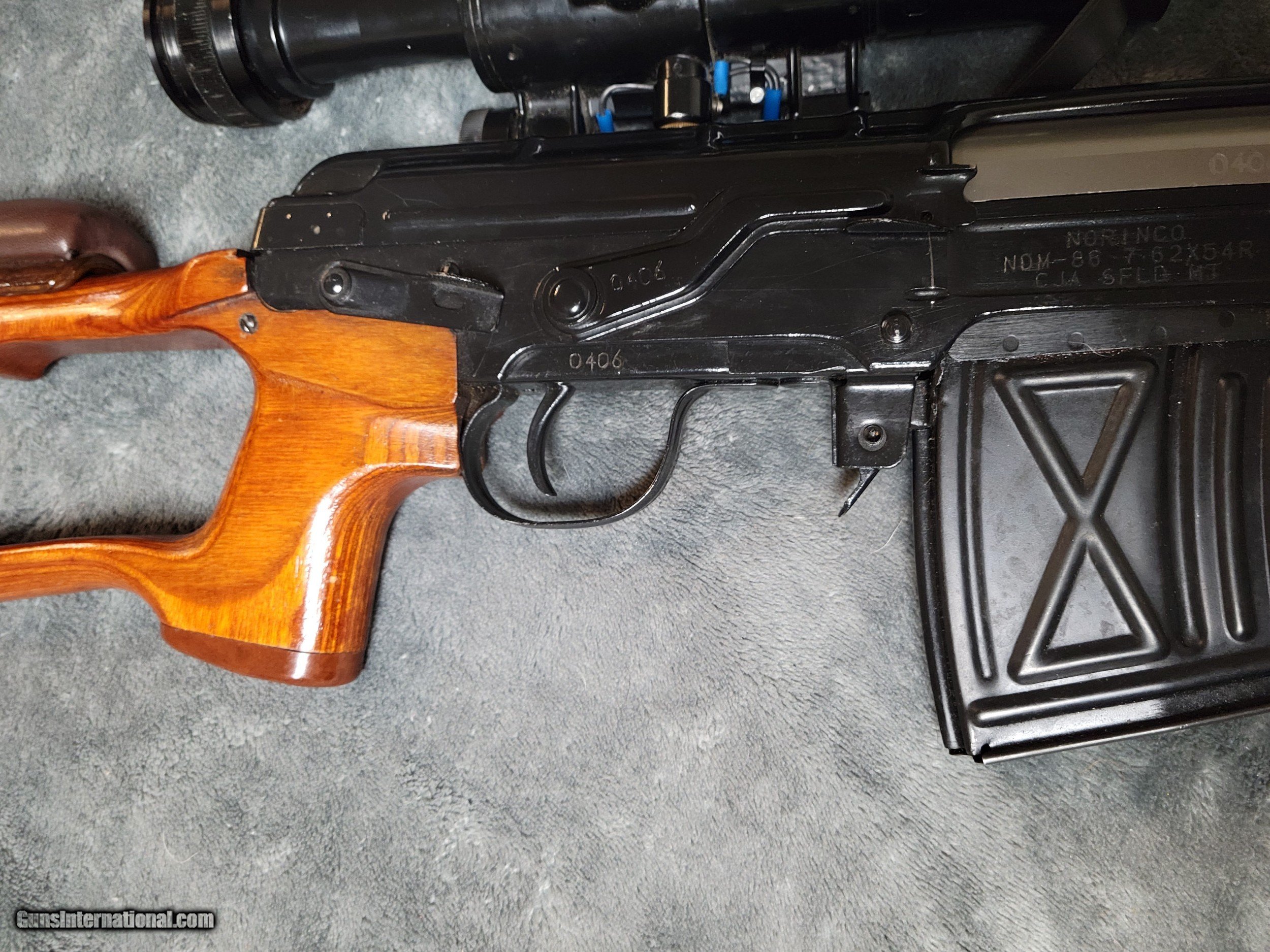 Description: ON HOLD PENDING RECEIPT OF FFL AND PAYMENT. Consigned. THIS PRE BAN NORINCO NDM-86 DRAGUNOV IN 7.62X54R IS IN EXCELLENT CONDITION, retaining 98 percent of its finish possibly unfired, T if fired it has not been fired much. It was imported by CJA SFLD M.T. It includes 4x / ir scope serial number 900575( matches number on buttstock), the carryingcase for the scope has 900053 on it for its serial number. Also included is a bayonet. For more Info Call after 6 pm eastern, I am not available to receive calls before then, due to my day job or when I am manufacturing custom guns and gunstocks. I have been in the collectible firearm business for almost 15 years, was the Gun Library Manager at the Dundee Cabelas prior to the bass pro merger, I currently work at another local shop where I trade in fine guns as well. I incorporated 2 years ago to manufacture gunstocks, as well as trade in fine guns. 517 306 7859 Or email will.bohmmanitoucustomguns. com Leave off the space on the dot com SOLD Rifle Caliber: 7.62x54mmR Manufacturer: Norinco Model: NDM-86 Dragunov Serial Number: 0406 Condition: Excellent Possibly unfired Metal Condition: Excellent Wood Condition: Excellent Bore Condition: Excellent Barrels: 24.4 Action: Semi auto Stock: Dragunov type thumbhole Item Location: 49253 |