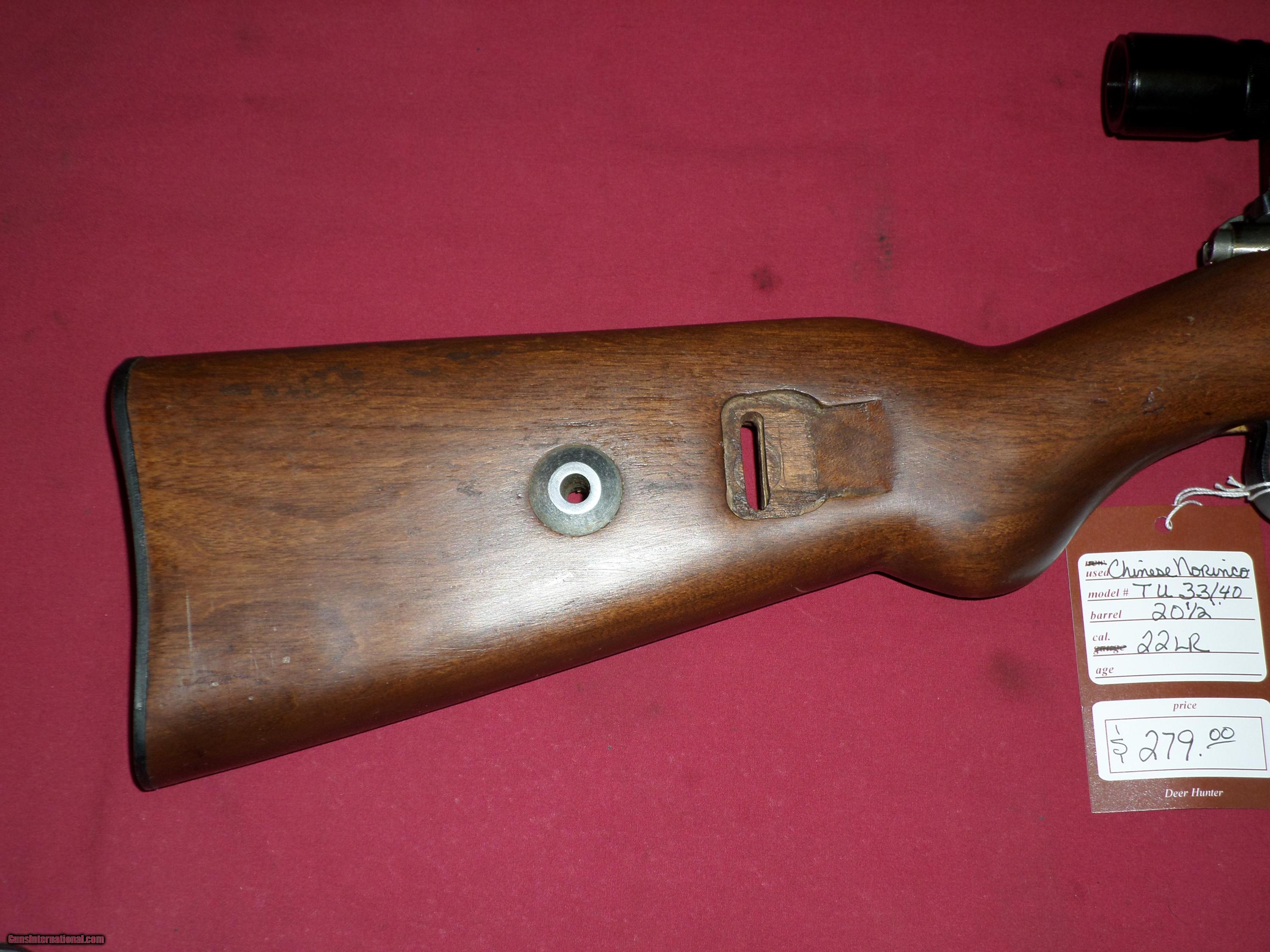 Description: SOLD For sale, Norinco 33/40 rifle with 4x side mounted scope. Excellent condition. To see more of our inventory, visit deerhunterguns,com We accept MC, Visa and Discover, no AmEx. No Sales to California. Like us on Facebook: Deer Hunter Guns SOLD |