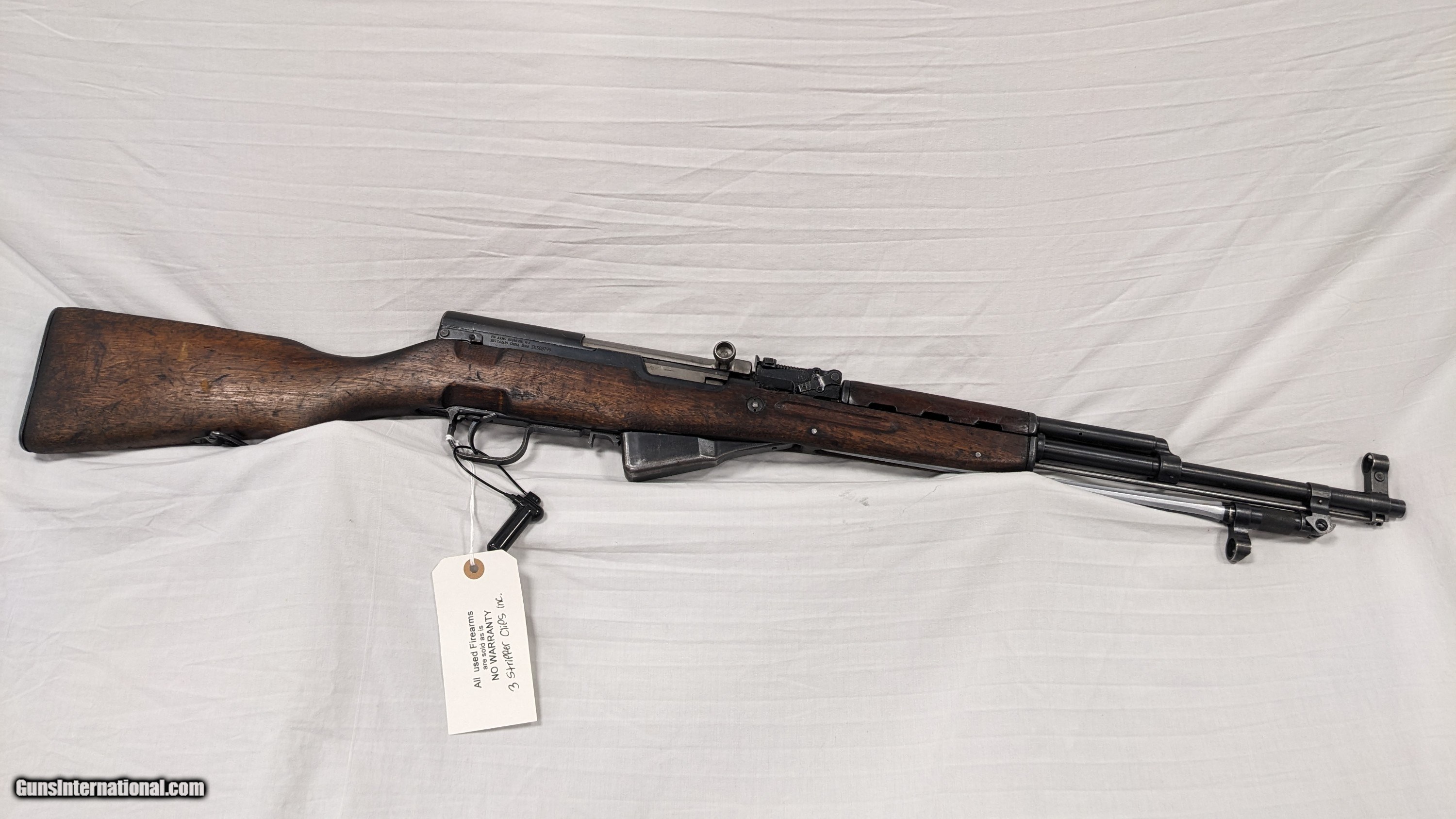 Description: This is a used item. While we do not test fire our used firearms, we perform an inspection and function check to determine the firearm is fully functional to the best of our ability. Please call with any questions. If you are interested in purchasing this item, please give us a call. Please have the "Seller #" and/or "Guns International #" ready along with the contact information for the FFL you'd like the item shipped to. For Sale from First State Firearms of Delaware AKA "The Gun Shop" in New Castle, DE. Shipping is $40.00. Includes $100.00 in shipping insurance. Additional insurance available at buyer's expense and request. SOLD Rifle Caliber: 7.62x39mm Manufacturer: NORINCO Model: SKS Serial Number: SKS08799 Condition: USED Action: SEMI-AUTO Extras: INC. X3 STIPPER CLIPS Case: NO BOX/CASE |