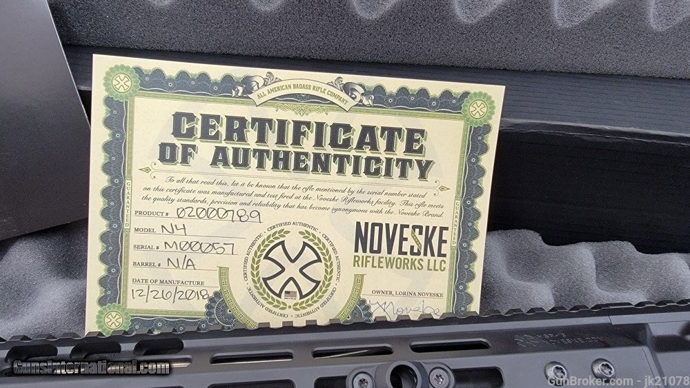 Description: Guns Listing ID: 499922 The Noveske \"N4\" Gen 4 infidel Rifle is a premium quality AR-15 with a wide variety of upgrades. This is a fantastic general-purpose rifle, perfectly suited for self-defense, duty use, and competition shooting. The barrel is 16\" overall with a pinned and welded brake. 1-30 round magazine and the original box are included. Product Number 02000789 SOLD Manufacturer: NOVESKE RIFLEWORKS LLC Model: Infidel Gen 4 NSR-15 Caliber Info: 5.56 NATO Condition: Used - Non-Certified Barrels: 13.7 BARREL Finish: BLACK |