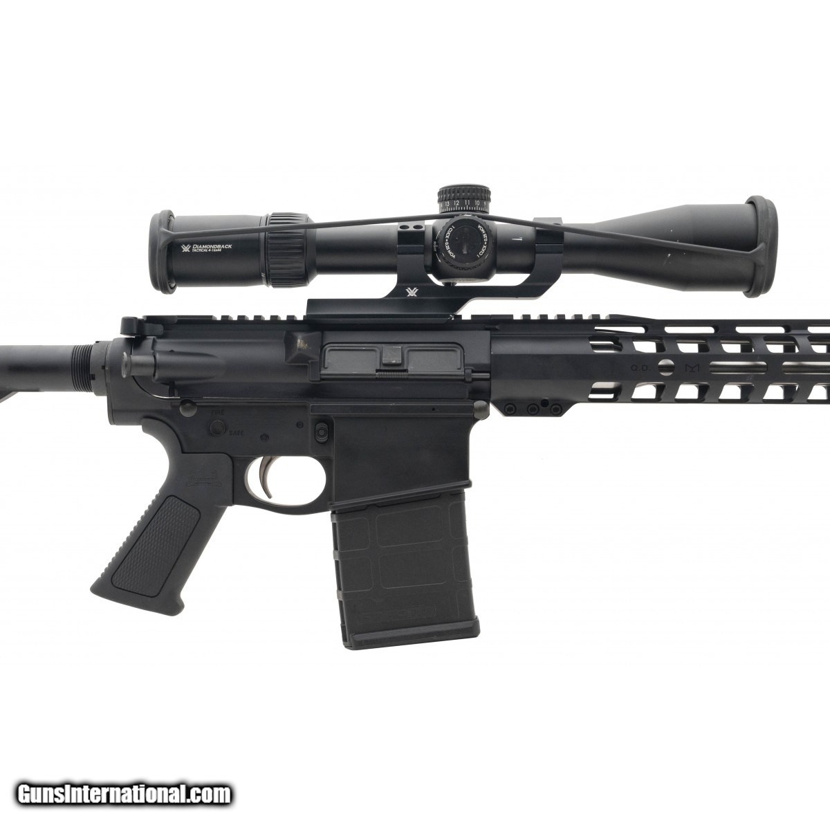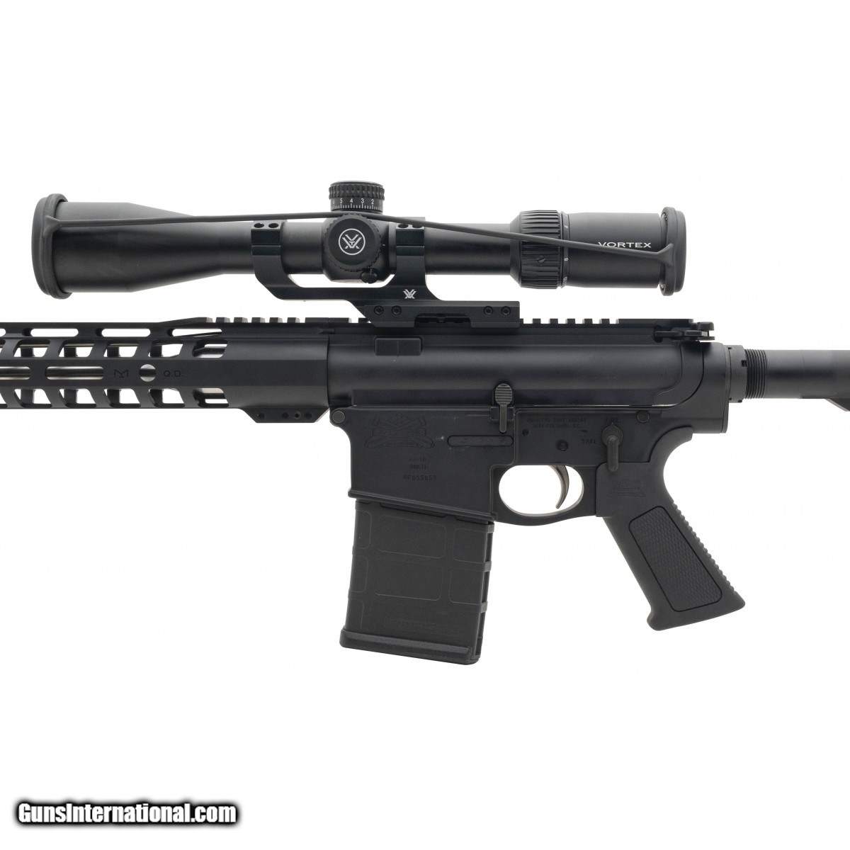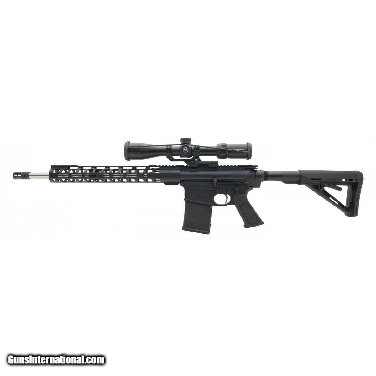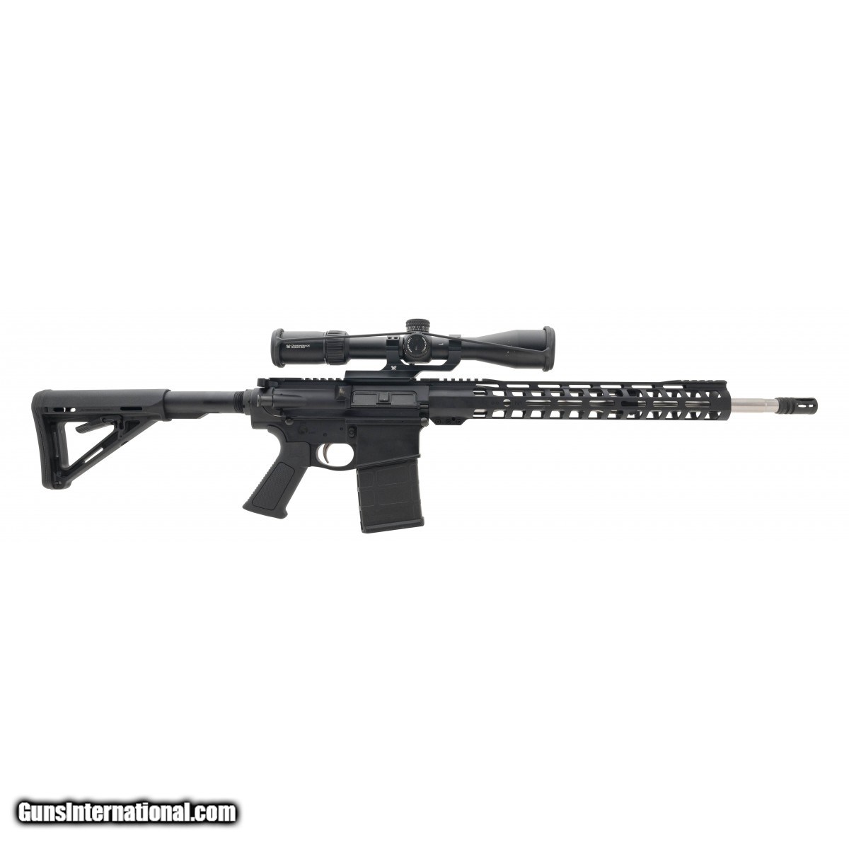 Description: " SN:PF055859. Semi auto 18"" rifle with an MLOK hanguard, Vortex Diamondback Tactical 4-16X44 Scope, cantilever scope mount and SS bull barrel. In excellent condition. SOLD |