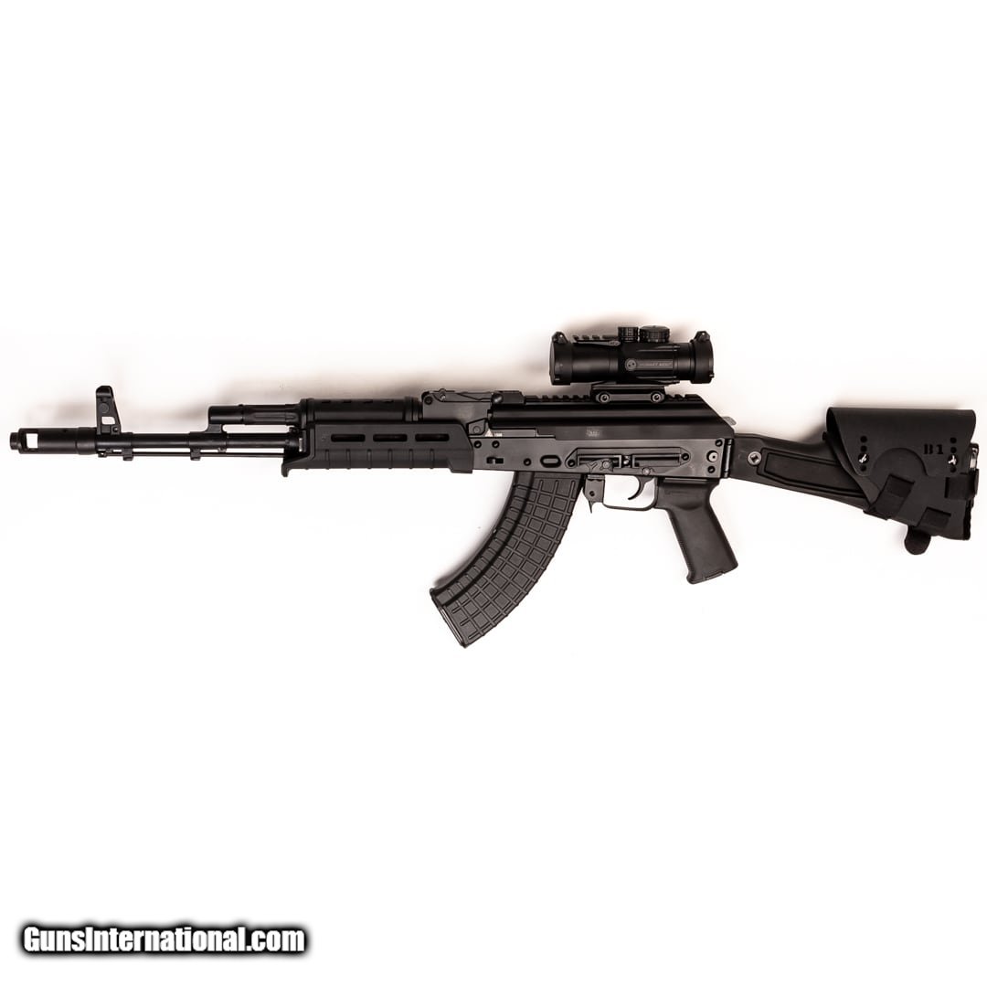 Description: Guns Listing ID: 482728 Palmetto State Armory has established themselves as one of the top American firearms manufacturers and they have mastered the AK design with their domestic models. The AK-103S is the modern rendition of the AK47, which features all of the designs found on the AK-74, while retaining the 7.62X39MM cartridge. The S stands for ‚‚Skladnoy‚‚ in Russian, which translates to ‚‚folding‚‚. This rifle features a Primary Arms ACSS 3X red dot with an illuminated etched 7.62X39 reticle, a B1 AK cheek rest, Magpul furniture, a folding stock, a Texas Weapon Systems Dogleg rail dustcover, original furniture included, and the original box with the man SOLD Manufacturer: PALMETTO STATE ARMORY Model: AK-103S Caliber Info: 7.62X39MM Condition: Used - Certified Barrels: 16 BARREL Finish: BLACK |