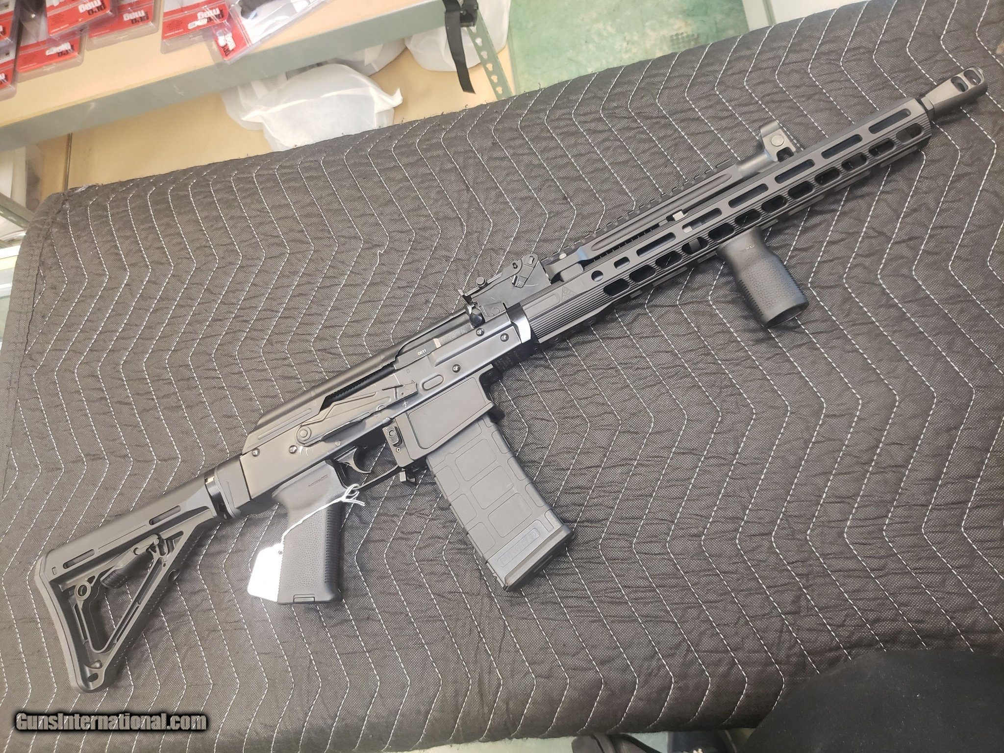 Description: Guns Listing ID: 1298524 VERY GOOD CONDITION. COMES WITH ONE THIRTY ROUND PMAG. NOTHING ELSE INCLUDED Caliber: 5.56x45MM Model: AK-556 Barrel Length: 16\" Thread Pitch: 1/2x28mm Barrel Twist Rate: 1:7\" Barrel Material: Gas Nitride 4150 steel treated barrel Barrel Finish: Nitride Front Trunnion: Toolcraft Bulged Hammer Forged 4340AQ Bolt: Toolcraft Hammer Forged Carrier: Toolcraft Hammer Forged Handguard Type: PSA-SLR 13.5\" SOLO PSAK-556 Handguard Grip: Magpul MOE Grip Stock: Magpul M4 Stock with PSA M4 Stock Adapter Fire Control Group: Single Stage, Single Hook Sights: Standard 1000 Yard Rear Sight Leaf & Fixed Front Sight Side Scope Mount: Yes Dust Cover: Ribbed Dust Cover Mag Release: AR-15 Style Button and Paddle Last Round Bolt Hold Open: Yes Magazine: Includes (1) 30rd Magazine; Where Allowed by Law Cleaning Rod: Not Included The PSA AK-556 was designed from the ground up to be the standard in AK-47 rifles, utilizing all new precision manufactured parts. The 4150 barrel is nitride treated for accuracy and durability and is pressed into a new hammer forged front trunnion to ensure the longevity AK-47s are known for. The hardened steel 1mm receiver features a mil-spec style single hook trigger, and side rail mount. SOLD Manufacturer: PALMETTO STATE ARMORY Model: AK-556 Caliber Info: 5.56X45MM NATO Condition: Used - Non-Certified Barrels: 16 BARREL Finish: BLACK |