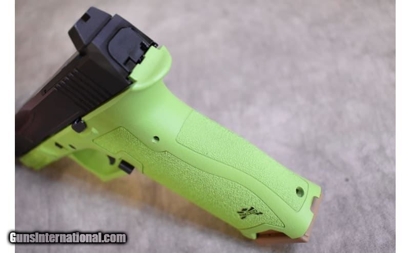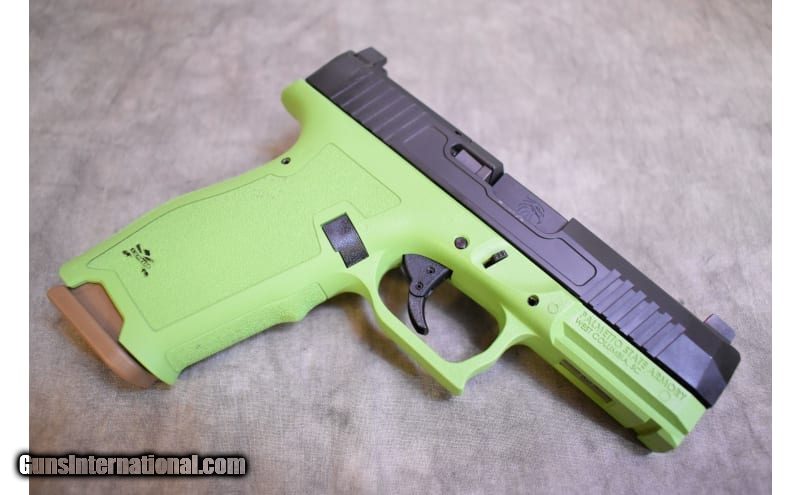 Description: Palmetto State Armory Dagger chambered in 9mm features, serrated slide with raised front and rear sights, lime green colored PSA frame with magazine release, curved trigger, and 1 tan Glock magazine. 9mm Luger SOLD Metal Condition: Very Good Bore Condition: Bright Barrels: 4 Weight: 2 lbs Item Location: Bolingbrook, IL |
