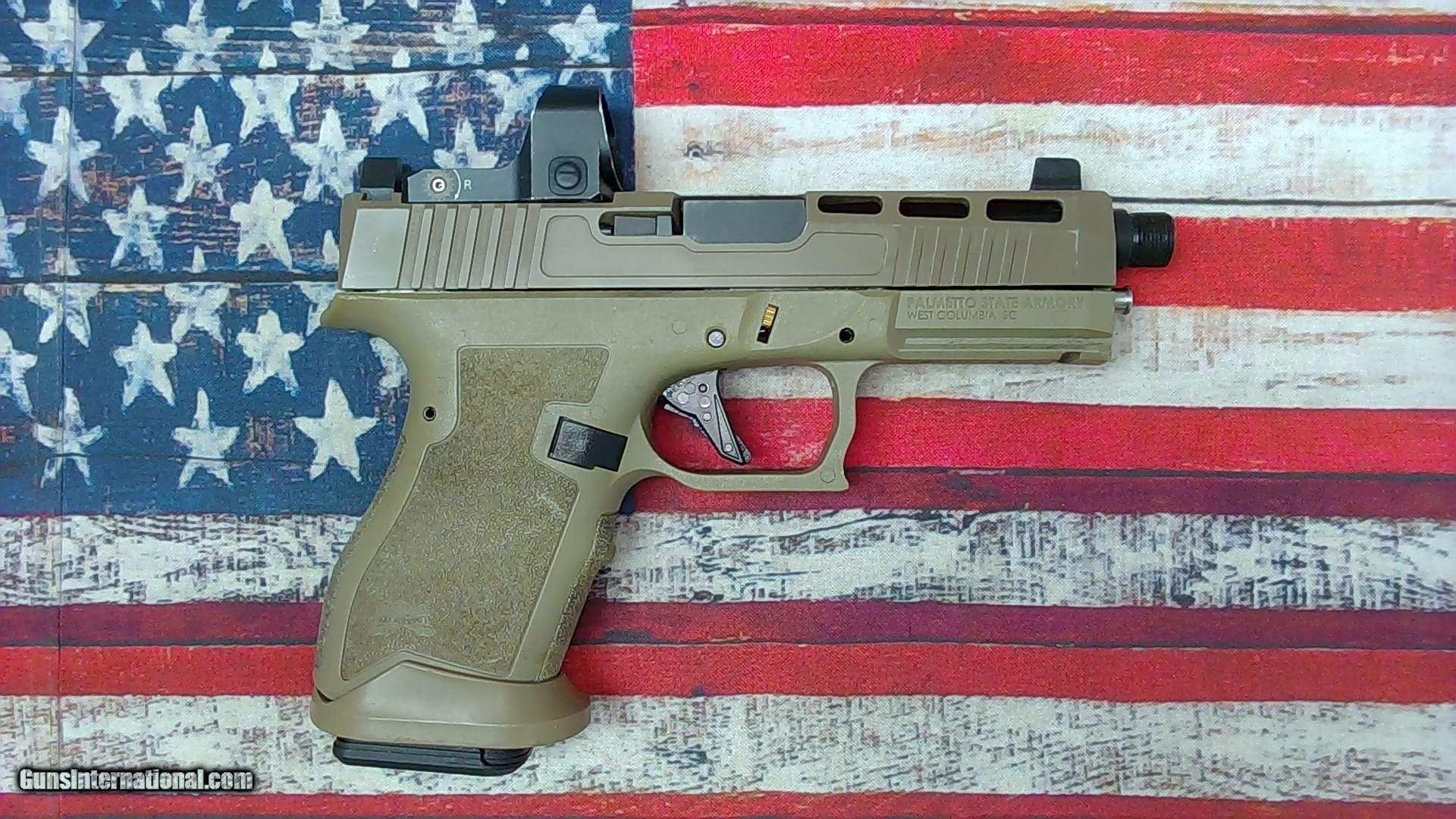 Description: Guns Listing ID: 581219 This pistol has some issues, but there are some good points. It is a Palmetto State Armory Dagger chambered in 9mm. It is in working condition. The slide and Vector Optic red dot have a lot of wear, possibly from a holster. The red dot works great. The slide is ported. The threaded barrel is missing a thread cap. The guide rod extends past the slide. The frame is in good shape but has discoloration in the grip. There are black splotches as if handled with dirty or gun powder hands. If you‚re looking for a project pistol, or one that shoots but doesn‚t need to look pretty, you just found it! They say a picture is worth a thousand words. These photos are the best statement of condition; please review them carefully before purchasing. Manufacturer: PALMETTO STATE ARMORY Model: DAGGER COMPACT Caliber Info: 9MM LUGER (9x19 PARA) Condition: Used - Non-Certified Barrels: 4.25" BARREL Action: SEMI AUTOMATIC Finish: fde Price: $399.99 Contact Seller |