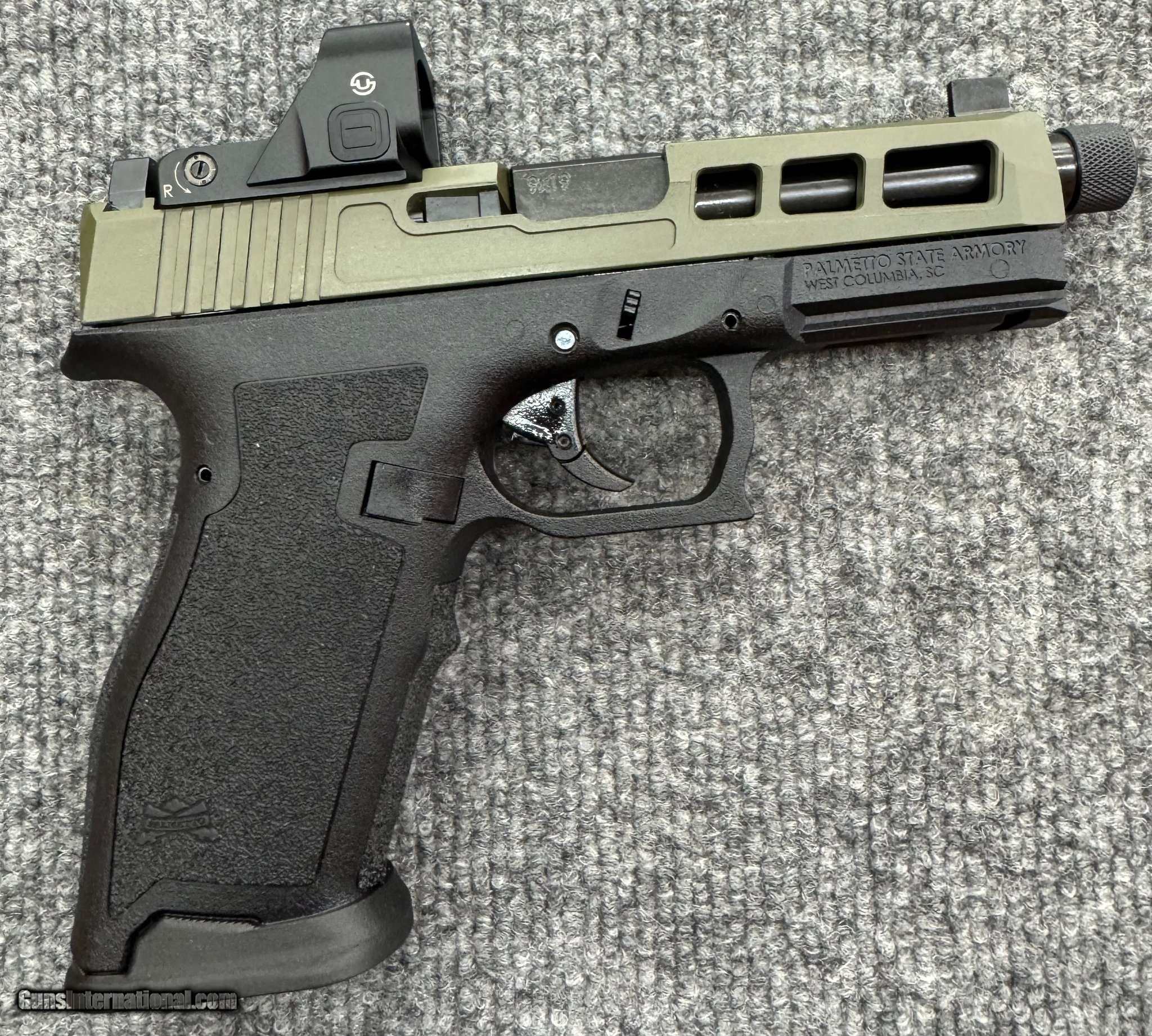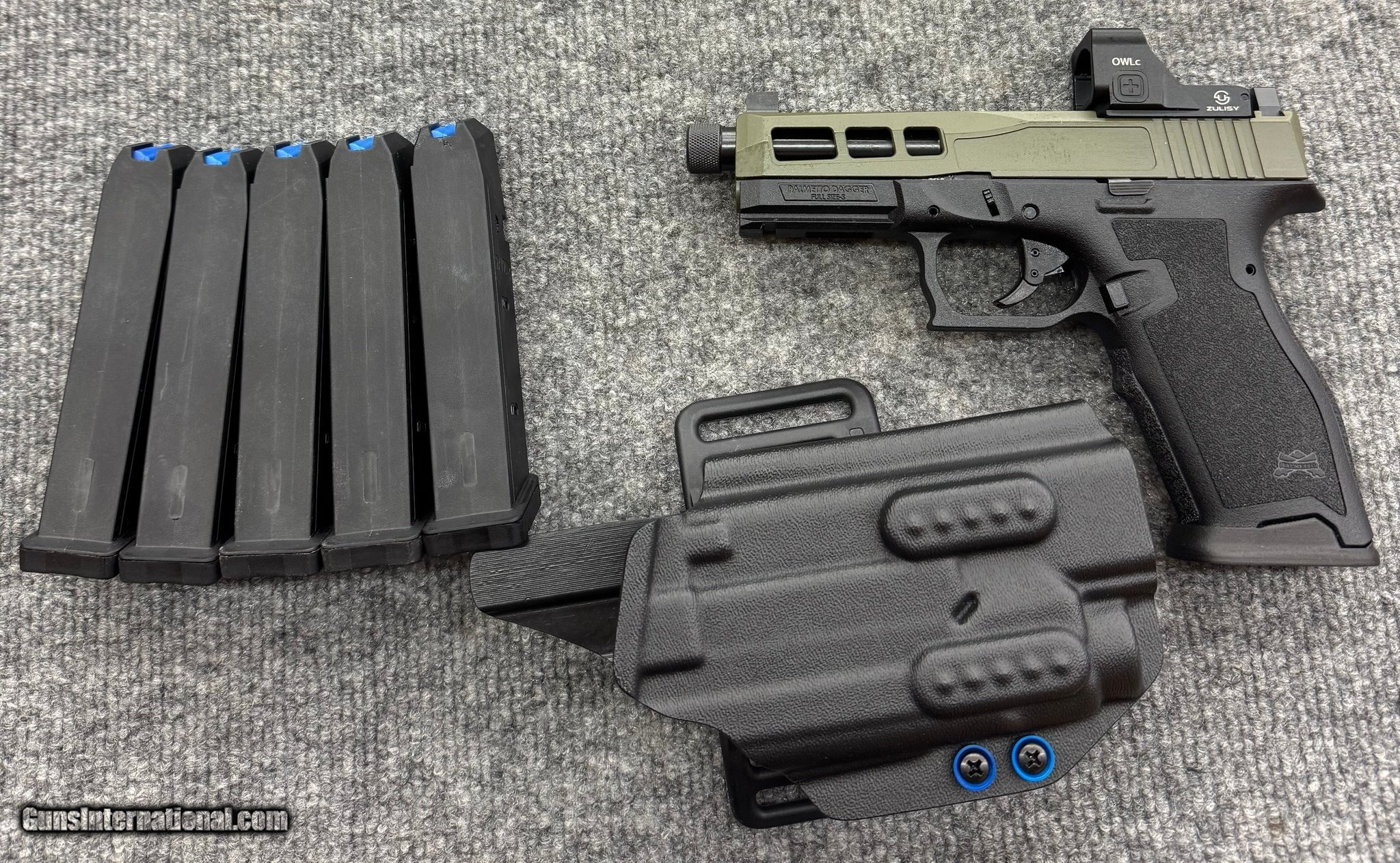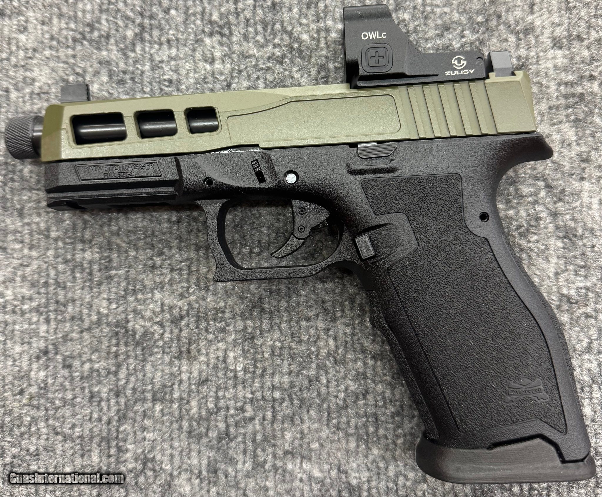 Description: Guns Listing ID: 547428 Palmetto State Armory Dagger Full Size-S Purchase with confidence today!! This firearm is in excellent condition. It does show signs of very light usage with very light scratches on the slide. Included with the purchase of this firearm is a Holster, Zulisy Owl green reticle sight, and a total of 5 seventeen round 9 MM magazines. It also has a threaded barrel and suppressor heightened sights. See photographs for more detailed views!! SOLD Manufacturer: PALMETTO STATE ARMORY Model: Dagger Full Size-S Caliber Info: 9MM LUGER (9x19 PARA) Condition: Used - Non-Certified Barrels: 4.625 BARREL Action: SEMI AUTOMATIC Finish: BLACK & GREEN |