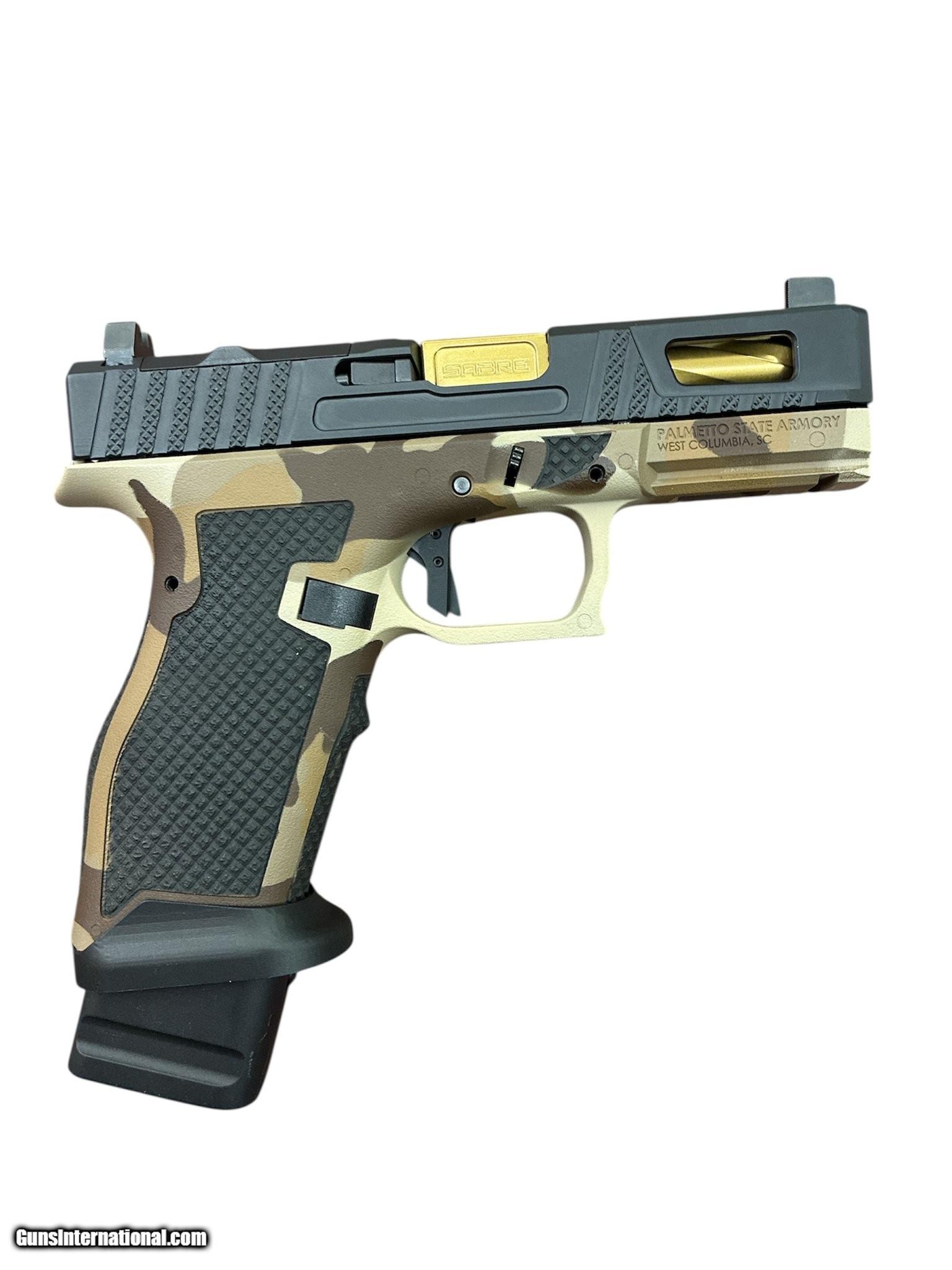 Description: Guns Listing ID: 586701 Great shape overall Gold twisted barrel Cutout slide Red dot ready 2-17rnd mags Camo grip Soft case SOLD Manufacturer: PALMETTO STATE ARMORY Model: dagger sabre Caliber Info: 9MM LUGER (9x19 PARA) Condition: Used - Non-Certified Barrels: 4" BARREL Action: SEMI AUTOMATIC Finish: BLACK CAMO |