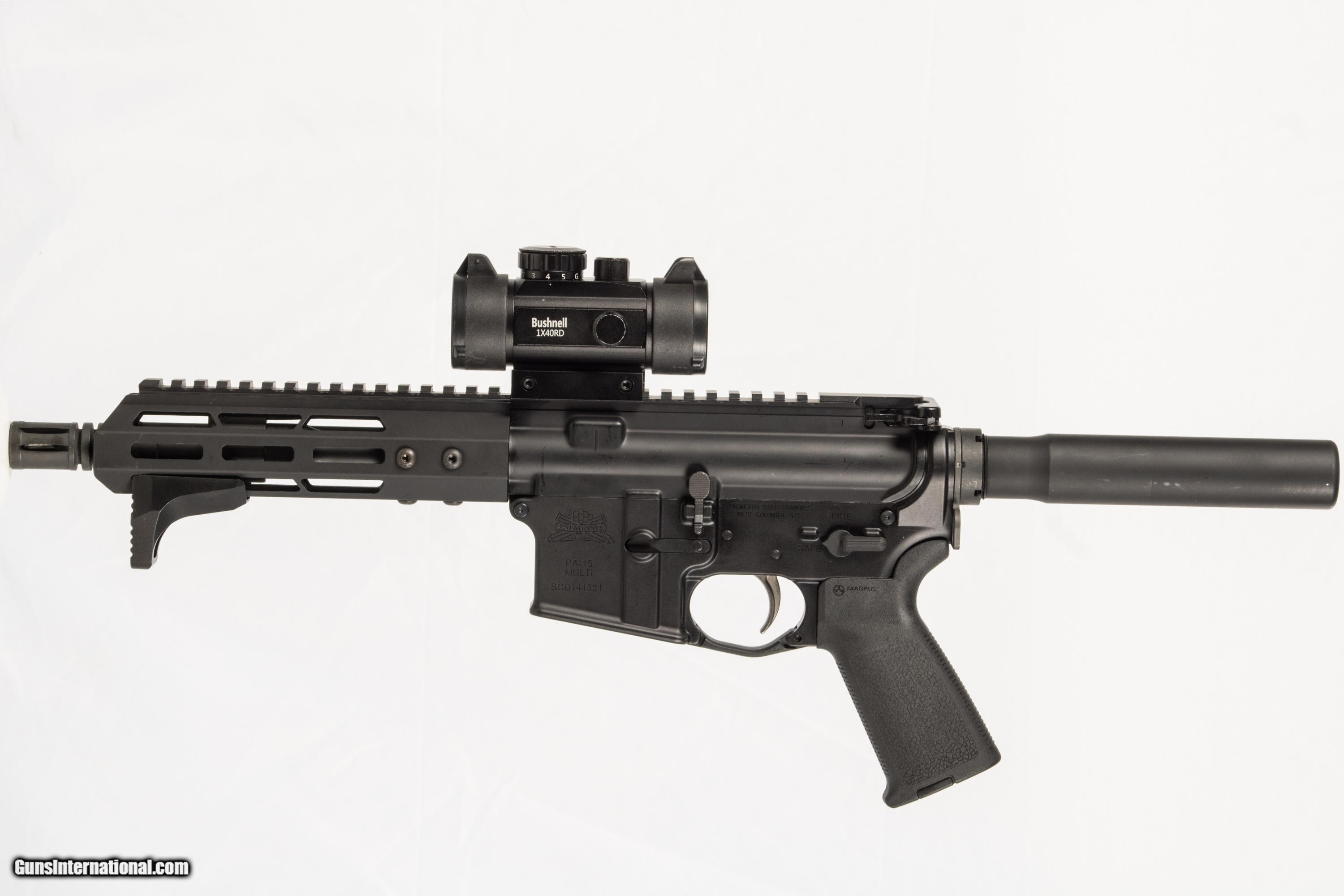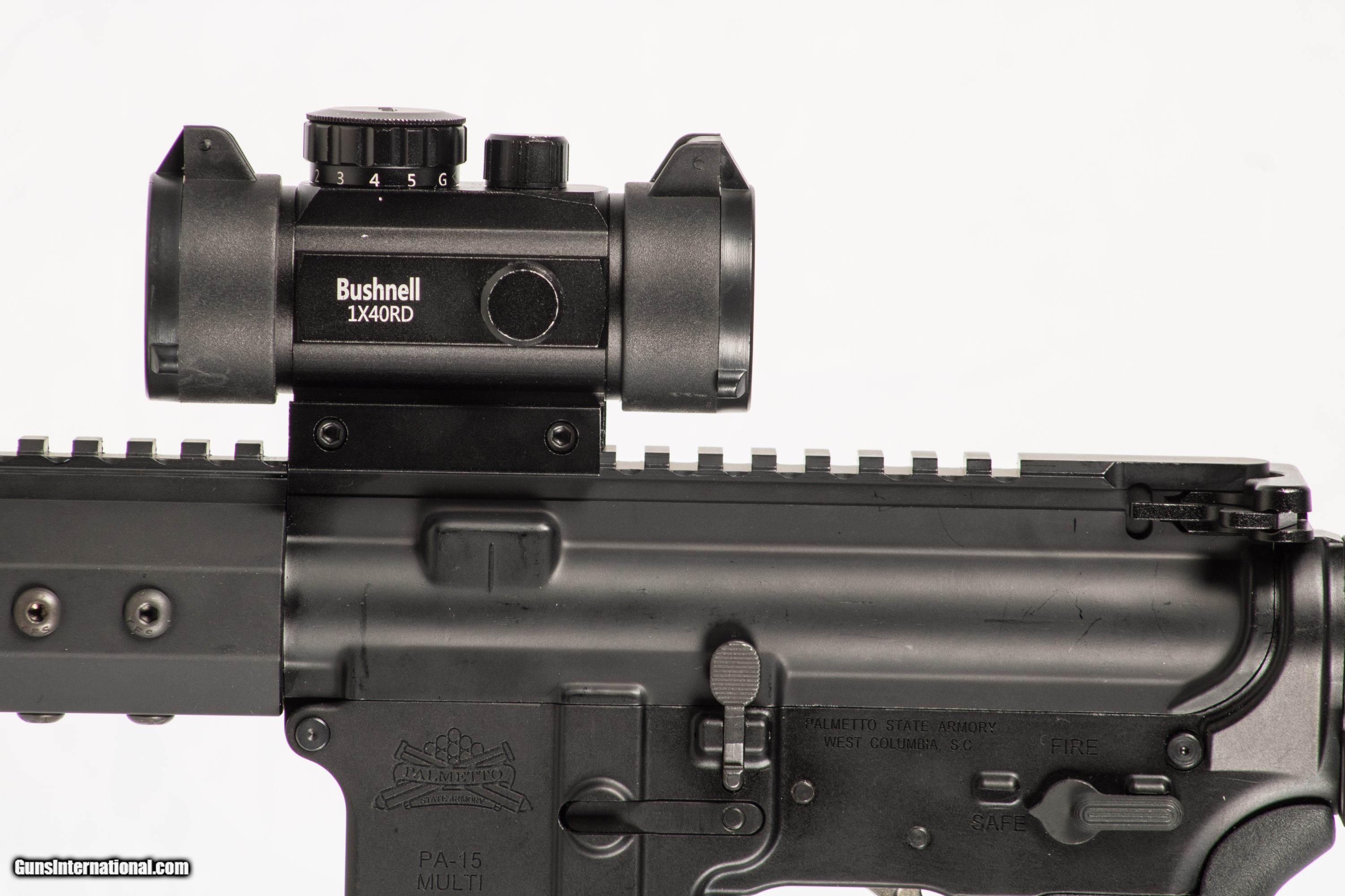 Palmetto State Armory PA-15 chambered in 5.56 mm with a 7 1/2 inch barrel bright & shiny bore case 2 extra magazines bushnell red dot sight. This gun is in excellent condition and is covered by Dury's Lifetime Warranty.