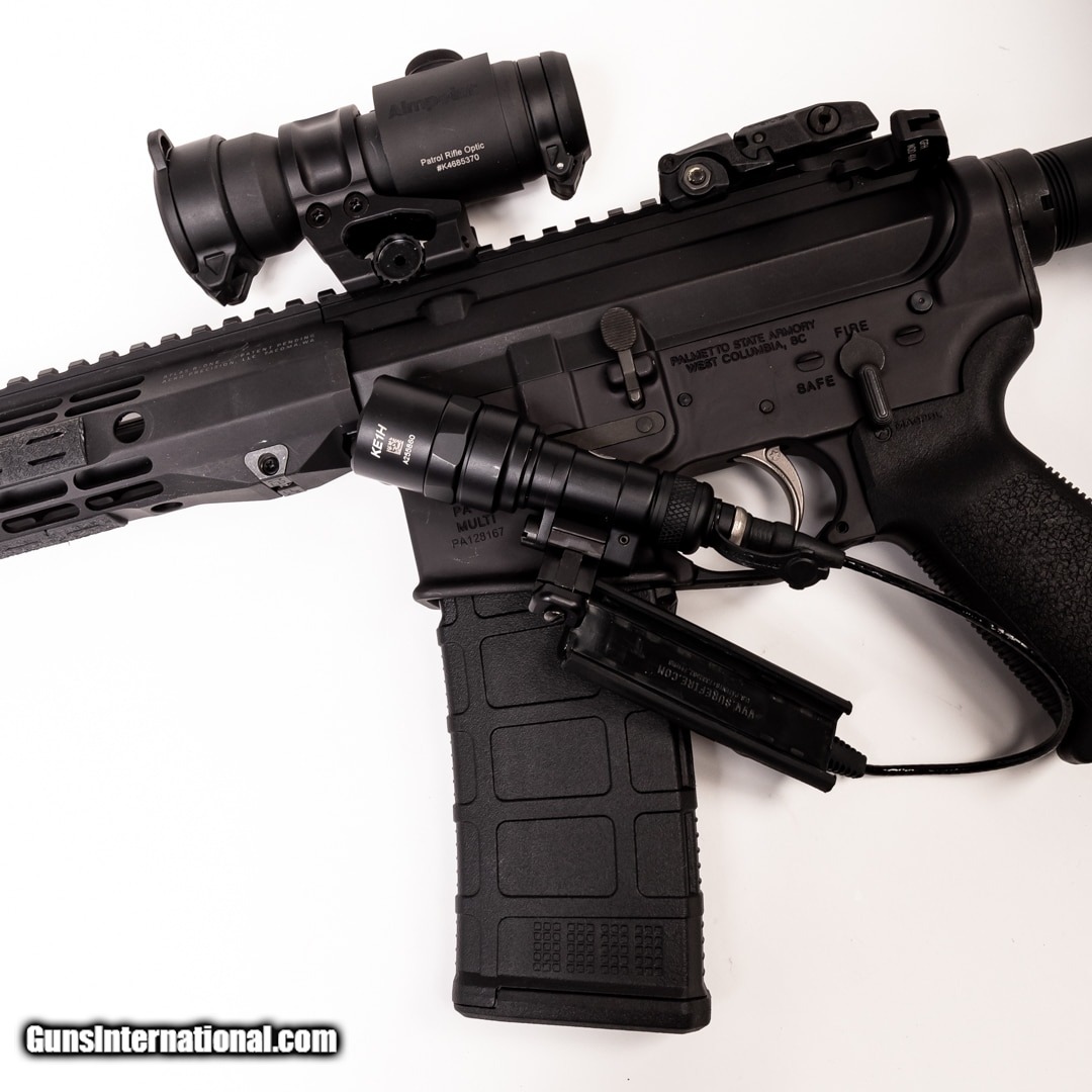 Description: Guns Listing ID: 482967 The AR-15 is one of the most popular firearm designs in the United States. The ease of use and versatility of the design makes it a great target shooter, self-defense option, or even hunting tool for people of all different experience levels. Palmetto State Armory has established themselves as one of the top American firearms manufacturers and they have mastered the AR design. This handgun features a carbine length gas system upper with a 1.7 twist rate barrel along with one 30-round magazine, an Aimpoint Pro optic on a lower 1/3 Scalarworks LEAP/PRO 30mm Aimpoint mount, Magpul flip up sights, SureFire M340C Mini Scout Light Pro 500 Lumen w/ pressure pad, and an Aero Precision MLok handguard with an angled foregrip. SOLD Manufacturer: PALMETTO STATE ARMORY Model: PA-15 Caliber Info: 5.56X45MM NATO Condition: Used - Certified Barrels: 12 BARREL Finish: BLACK |