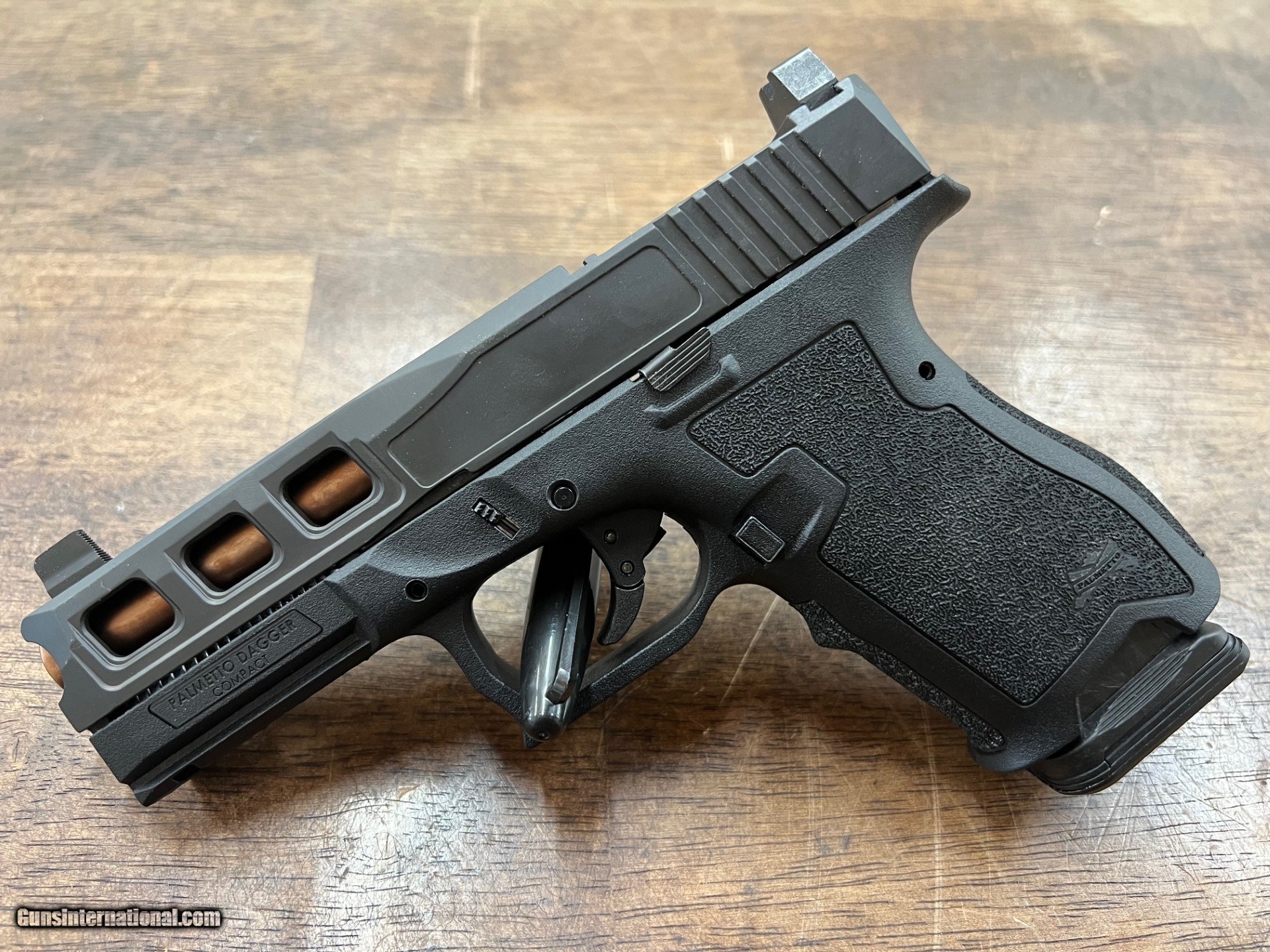 Description: Guns Listing ID: 485490 PSA DAGGER COMPACT 9MM PISTOL WITH SW3 RMR SLIDE & BRONZE BARREL, SERIAL NUMBER JJE88385, BLACK, 3.75\" BARREL, 9MM, SEMI - AUTOMATIC. OVERALL LENGTH: 7 INCHES. WEIGHT: 1.3 LBS W/ MAG. SOLD Manufacturer: PALMETTO STATE ARMORY Model: PALMETTO DAGGER COMPACT BRONZE BARREL Condition: Used - Non-Certified Barrels: 3.75 Gauge Info: 9MM LUGER (9x19 PARA Finish: black |