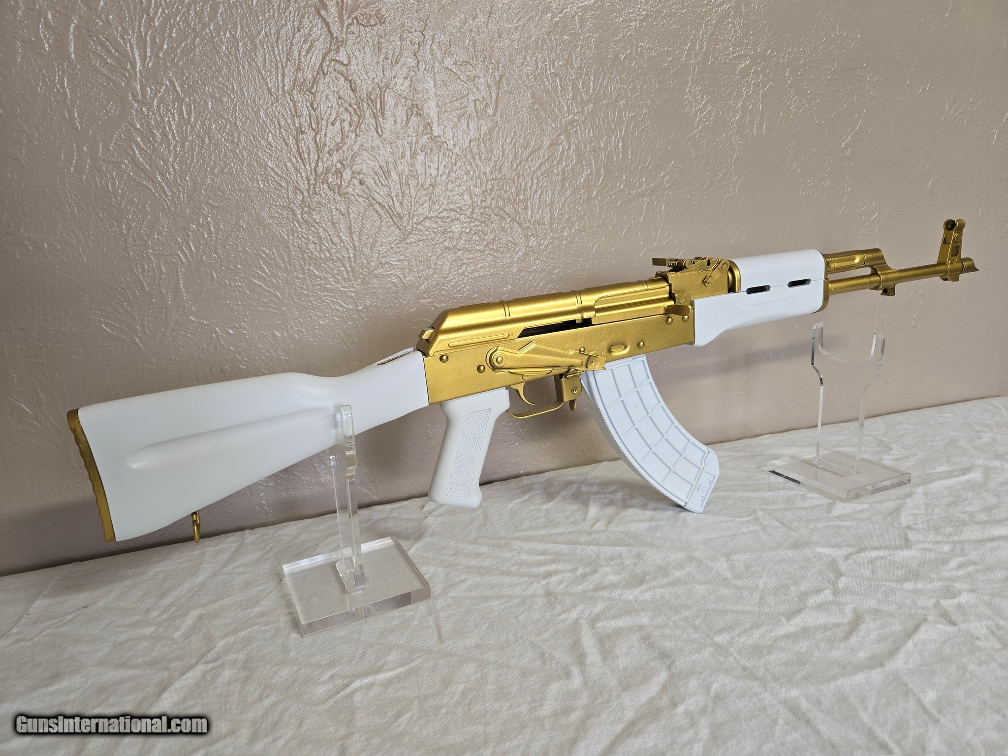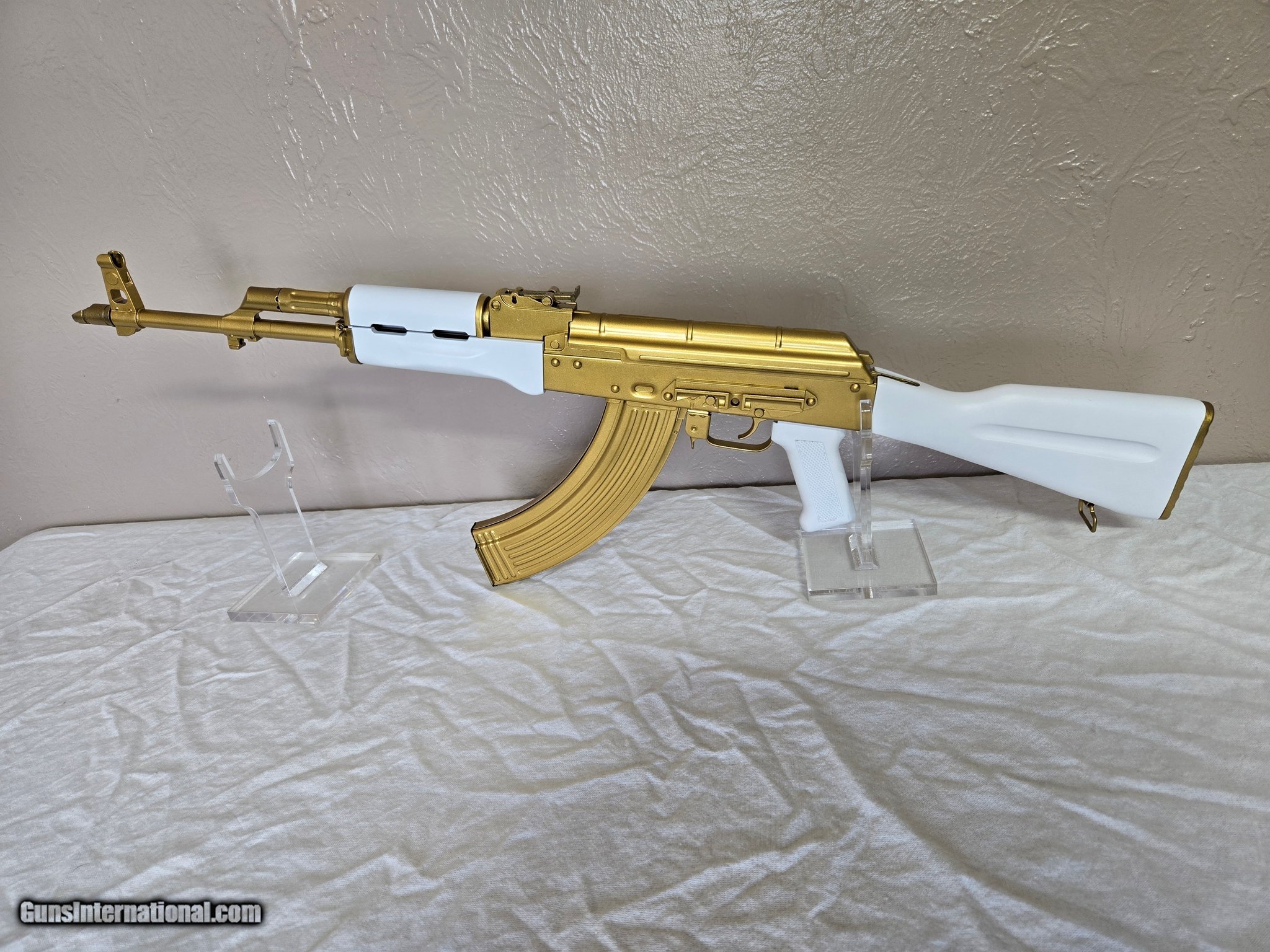 Description: Guns Listing ID: 505519 We have a custom cerakoted PSA AK47 chambered in 7.62x39 for sale. This is a customized rifle that has been professionally cerakoted white and gold. This rifle has been function tested and is confirmed to be in operating condition. The rifle comes with two magazines one 30 rounder in white and one 40 rounder in gold. This is the perfect gun for the person who wants to further their collection without having the same thing on every firing line at every public range. No original box. The rifle has no major blemishes, the furniture set has very small imperfections shown which is mainly due to the color choice but no excessive issues. This is a range ready rifle. SOLD Manufacturer: PALMETTO STATE ARMORY Model: PSAK-47 Caliber Info: 7.62X39MM Condition: Used - Non-Certified Barrels: 16 Action: SEMI AUTOMATIC Finish: gold |