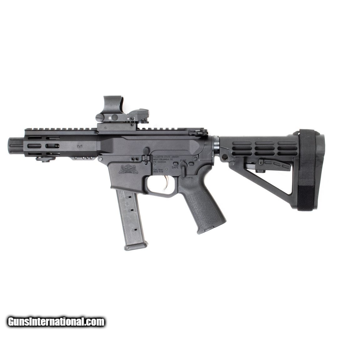 Description: Guns Listing ID: 579902 This Palmetto State Armory PX9 features an SB Tactical 4 pistol brace, flash hider, and an Ozark optics TRS-1 red dot optic. Three 27-round magazines are included. Get the best bang for your buck when you get a Certified Used Firearm . When you see the Certified Used stamp on any of our firearms, you can be confident that you‚re getting exactly what you want – a gun only in very good to excellent condition and held to the highest quality standard. All Certified Used Guns come with a ‚no questions asked‚ return policy . SOLD Manufacturer: PALMETTO STATE ARMORY Model: PX9 Caliber Info: 9MM LUGER (9X19 PARA) Condition: Used - Certified Barrels: 4.00" BARREL Action: SEMI AUTOMATIC Finish: black Weight: 5.6 |