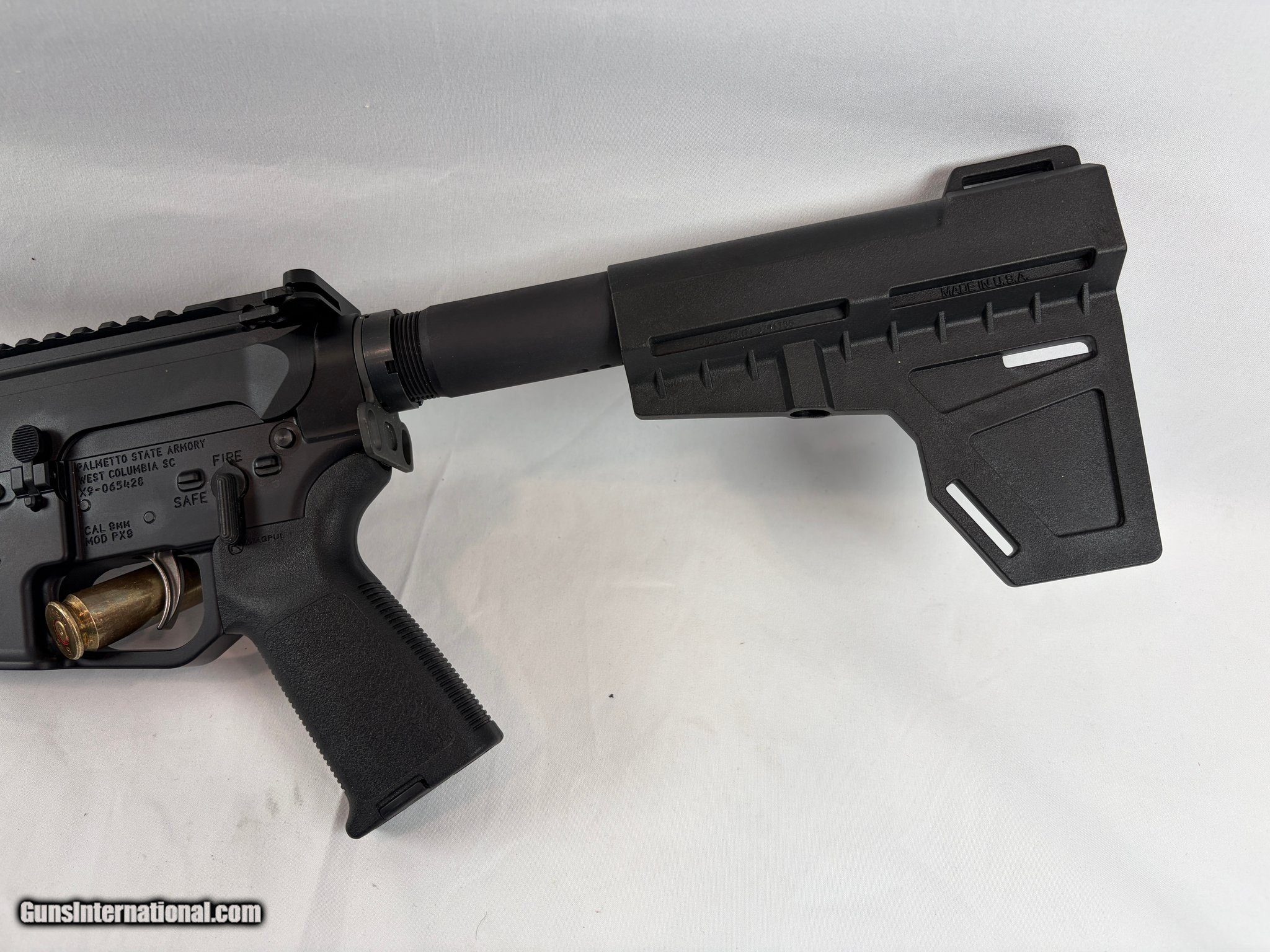 Description: Guns Listing ID: 600084 Palmetto State Armory PX9 – 9mm – Blade Pistol Brace – Very Good Condition Description: Offered here is a Palmetto State Armory PX9 chambered in 9mm. This reliable semi-automatic pistol-style firearm features a 4\" barrel, a durable black polymer frame, and comes equipped with a Blade pistol brace for added stability and control. Its compact, rugged design makes it an excellent choice for range use or home defense. Features: Chambered in 9mm 4\" barrel Black polymer frame Blade pistol brace Ergonomic, lightweight platform Reliable semi-automatic operation Includes: (1) Factory magazine SOLD Manufacturer: PALMETTO STATE ARMORY Model: PX9 Caliber Info: 9MM LUGER (9x19 PARA) Condition: Used - Non-Certified Barrels: 4" BARREL Action: SEMI AUTOMATIC |