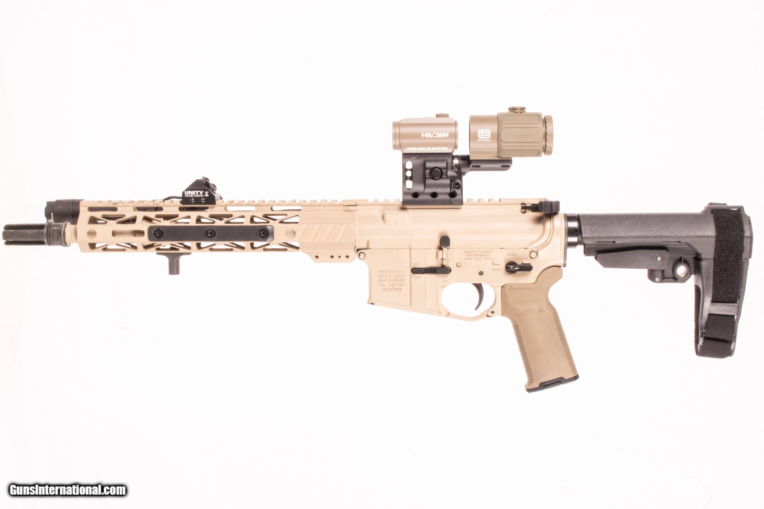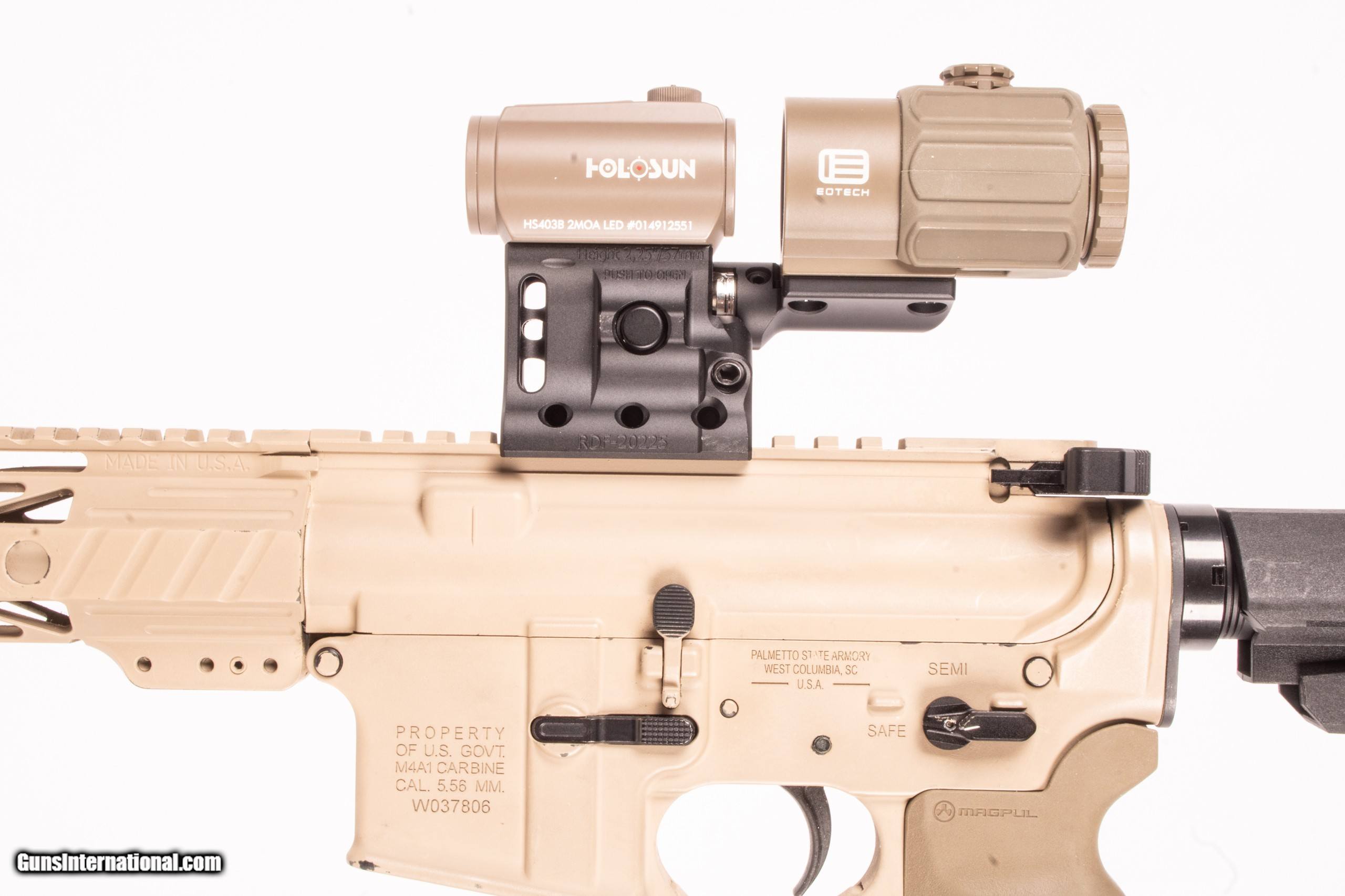 Description: Palmetto State Armory M4A1 pistol chambered in 5.56 mm with an 11.5 inch barrel, Surefire 4 prong flash hider, Holosun HS403B, EoTech magnifier, Spuhr flip-to-center mount, unity switch, Surefire scout light, H3 buffer, and SB brace. The NRA grading condition for this USED firearm is Very Good. We ship domestically in the United States. Additional shipping rates apply to Alaska and Hawaii. Dury's Lifetime Warranty: All firearms purchased from Dury’s Gun Shop, NEW or USED, are covered by a lifetime warranty. We will repair or replace, at our discretion, any firearm purchased from Dury’s Gun Shop, Inc. for as long as it is owned by the purchaser. This warranty is not transferable. WE BUY GUNS! NO COLLECTION TOO BIG OR SMALL FOR OUR GUNS INTERNATIONAL CUSTOMERS ALL OF OUR FIREARMS CAN BE PURCHASED DIRECTLY FROM OUR DURY'S GUNS SITE ! SOLD Manufacturer: Palmetto State Armory Model: M4A1 Caliber Info: 5.56x45MM Barrels: 11inches |