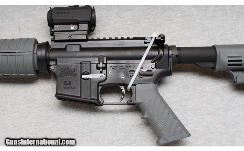 Description: Excellent, light wear and handling marks. Comes with one mag. Value priced AR style semi auto rifle, grey furniture, adjustable stock, Vortex red dot installed. 5.56x45mm NATO SOLD Chambers: Semi auto Metal Condition: Excellent Bore Condition: Bright Barrels: 16 Triggers: Standart military type trigger Stock Dimensions: Adjustable Fore End: M4 style hand guard Butt Pad: PSA adjustable M4 style stock Sights: Vortex Sparc red dot sight Item Location: La Vista, NE |