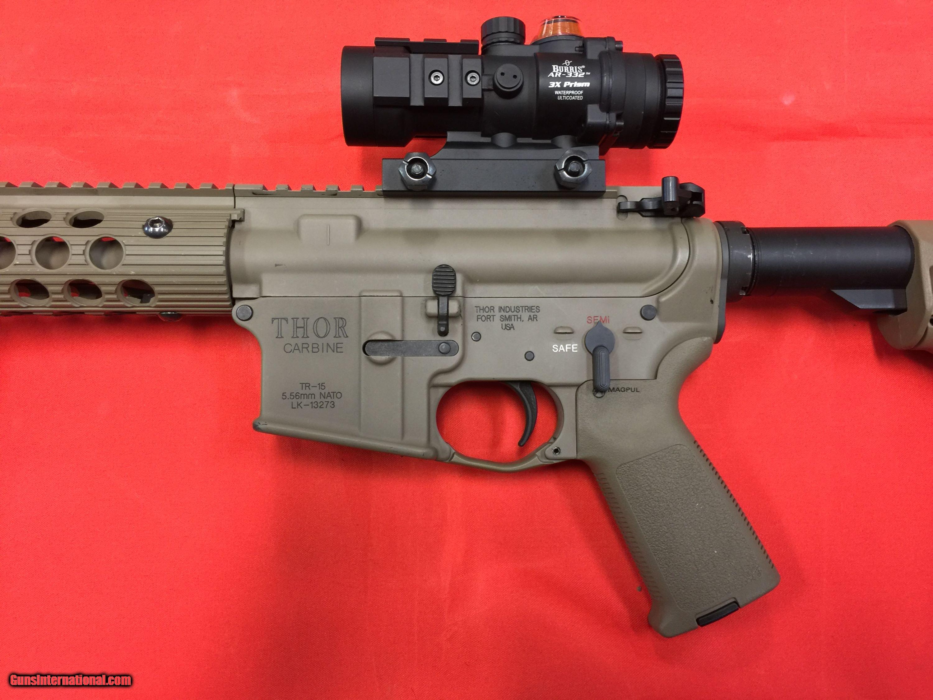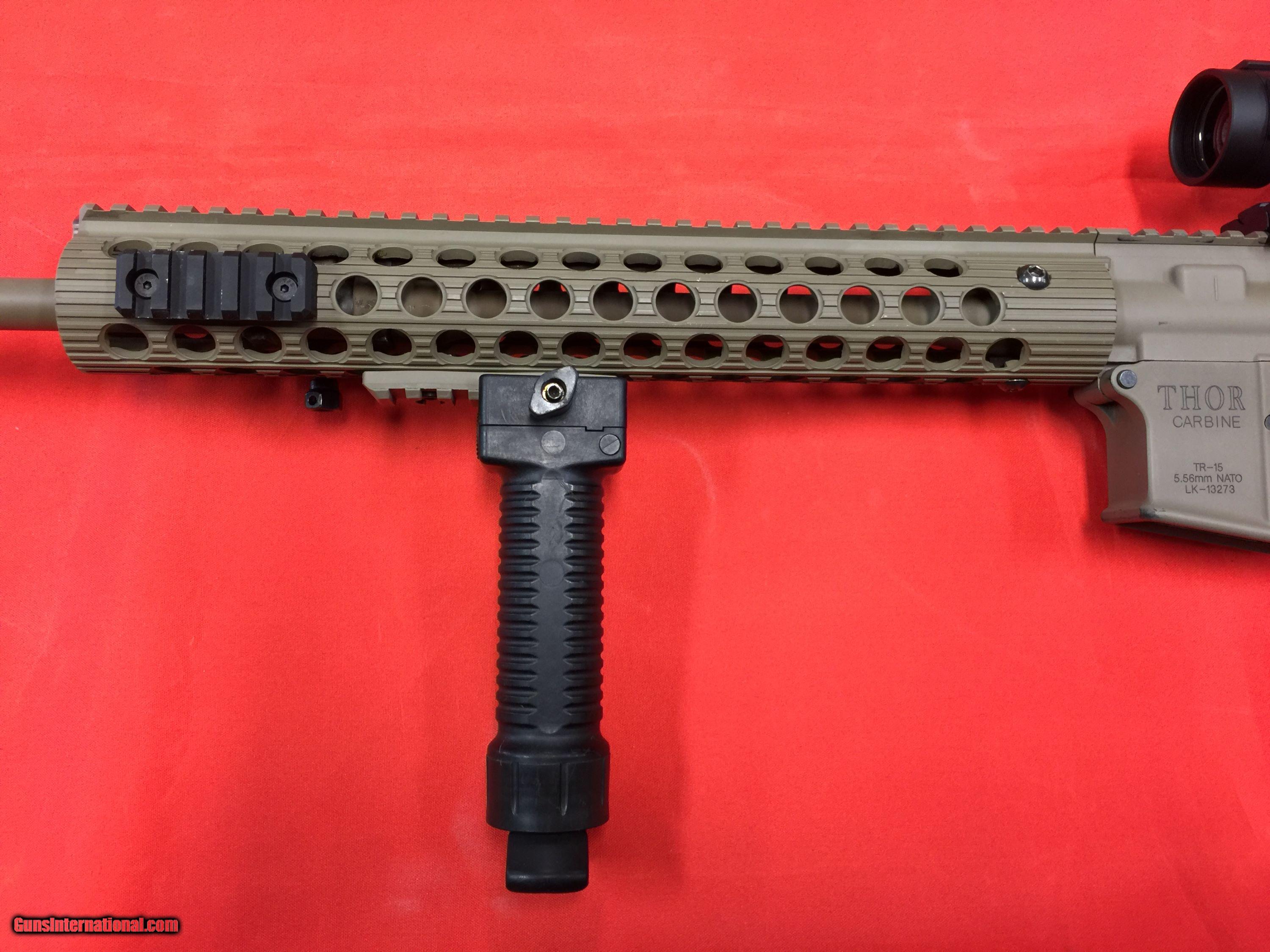 Description: Thor TR-15 5.56 Nato. The gun has been shot only a handful of times with no signs of handling or rust. The gun has a Thor lower with a magpul grip and sliding stock. The gun has a Troy rail guard with a palmetto state armory barrel. The length of the barrel is 18" and the LOP is anywhere from 11 1/4" to 14 1/2". The gun has a Burris AR-322 3x Prism waterproof ulticoated scope and a Maelstrom MMX-360 900 lumens flashlight. The gun also comes with a military issued GPS foregrip. If you are interested or have any questions please call Jerry at 479-806-8269. Thanks for looking. SOLD Manufacturer: Thor Model: TR-15 Serial Number: LK-13273 Caliber Info: 5.56 Nato |